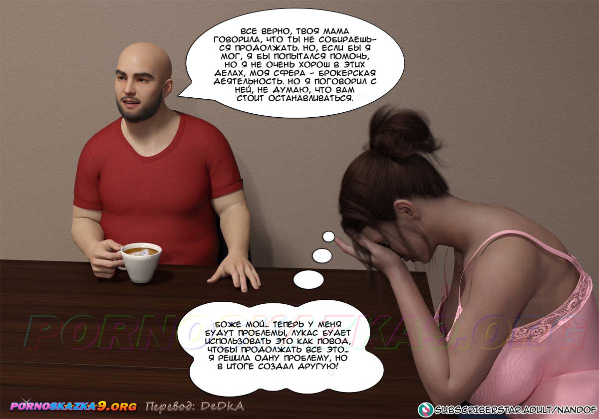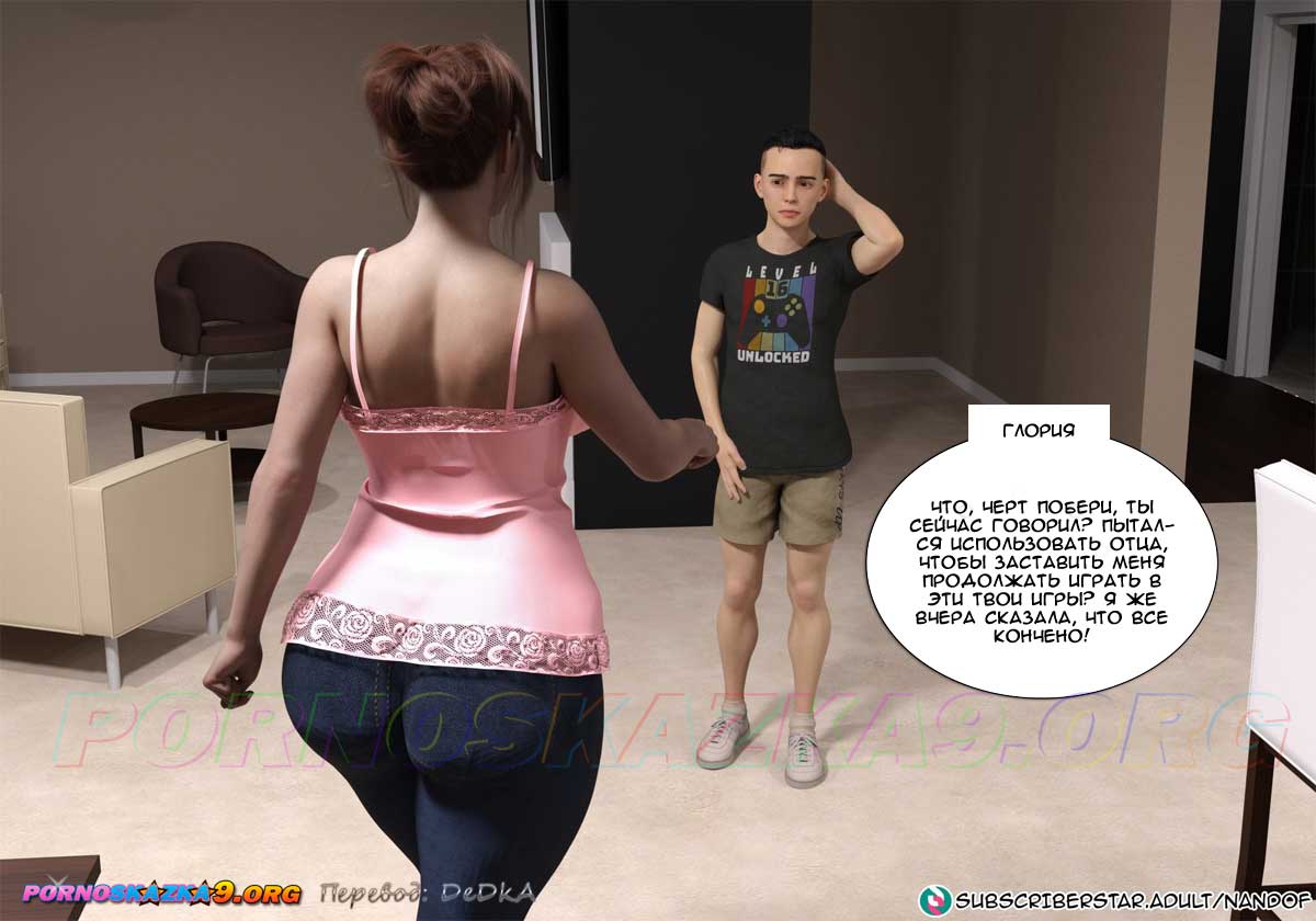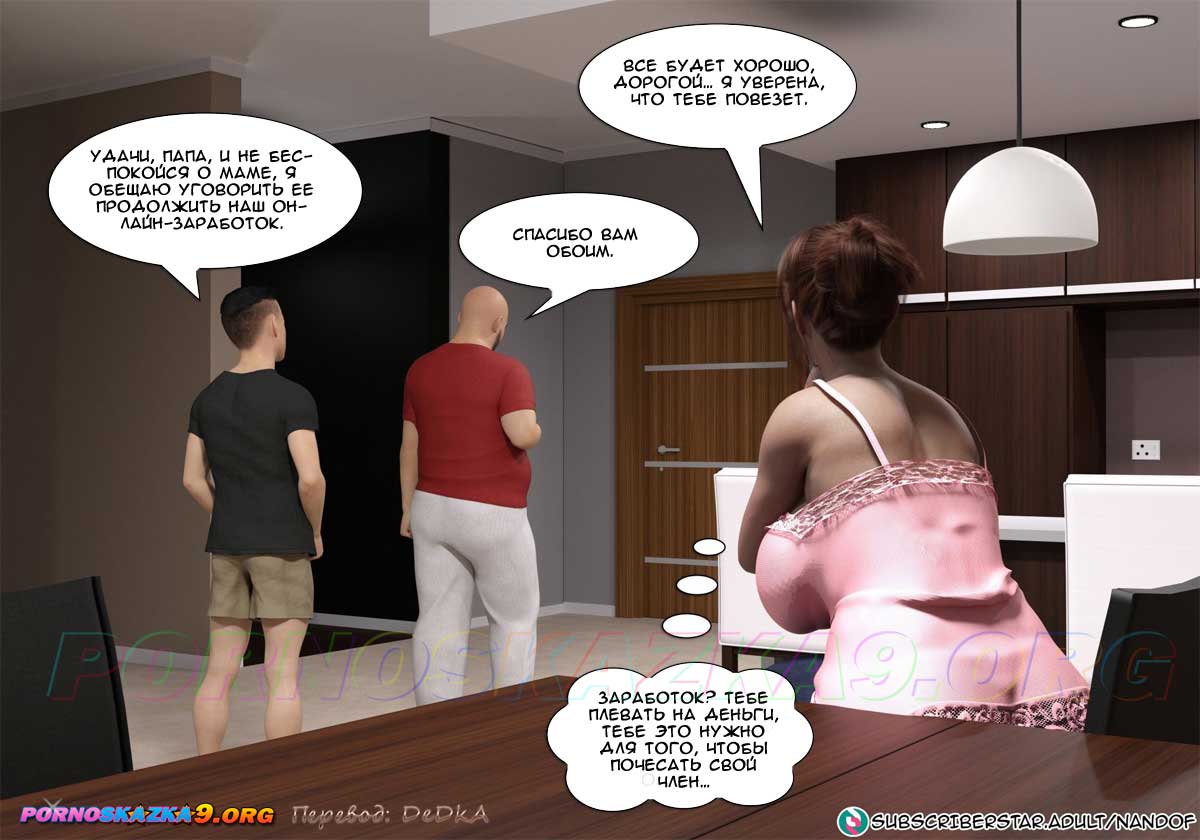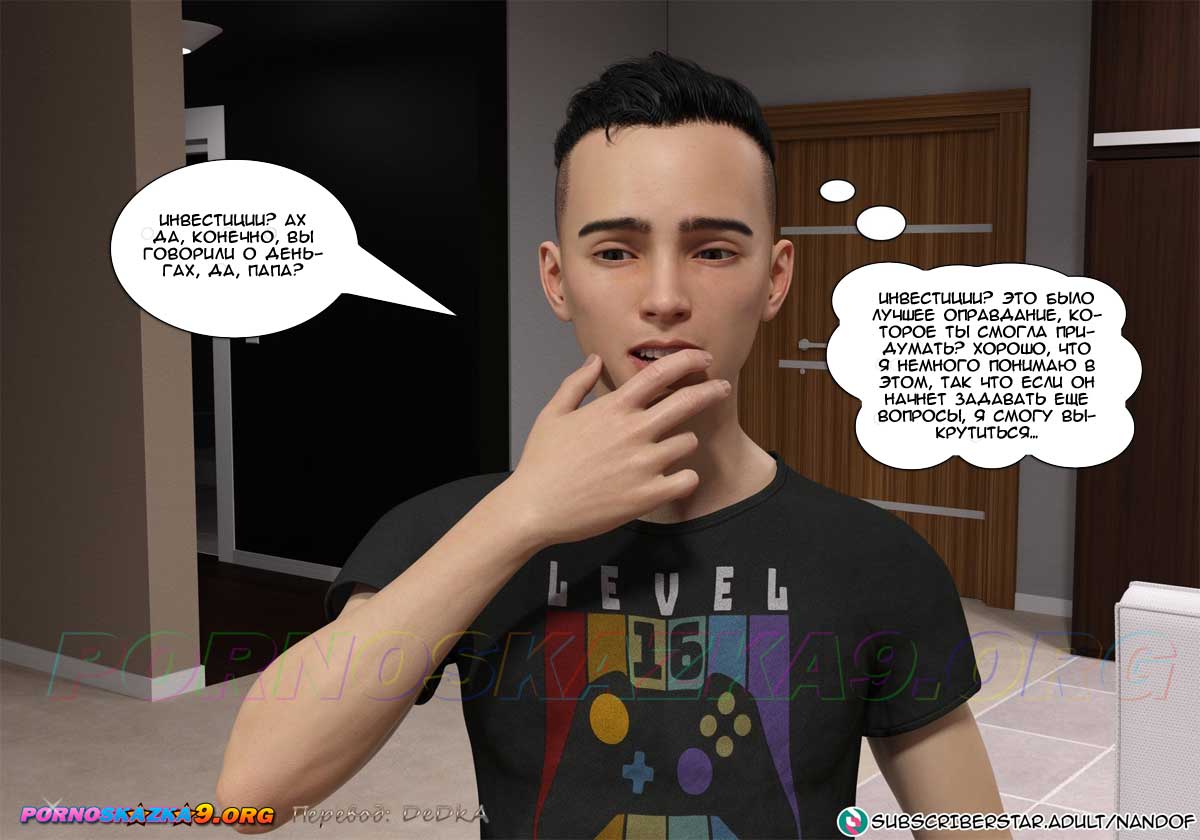 Порно комикс Моя мама порнозвезда. Часть 6. Глория сказала мужу, что с помощью Лукаса ей яко бы удалось сделать онлайн-инвестицию и получить доход, достаточный для того, чтобы оплатить долги по ипотеке, но так как это рискованный бизнес, она не намерена продолжать. Но муж, который сейчас не имеет работы, попросил ее подумать о том, чтобы продолжить это дело… Знал бы он в чем заключается эта совместная работа его жены и сына…