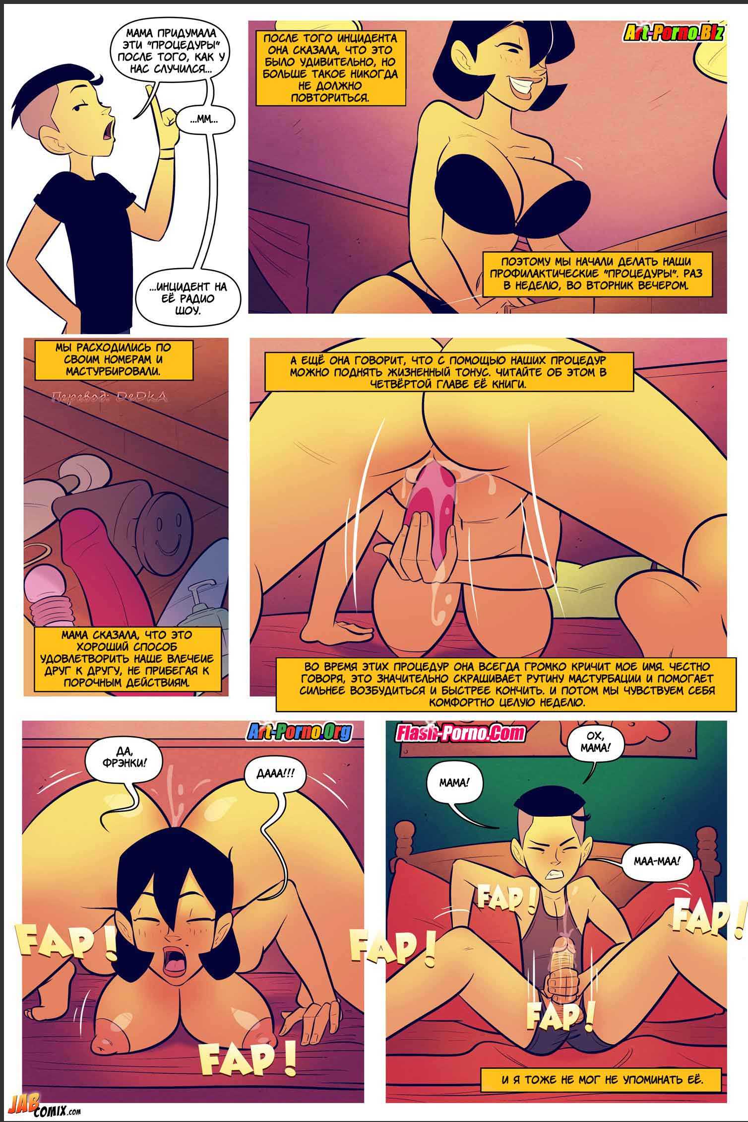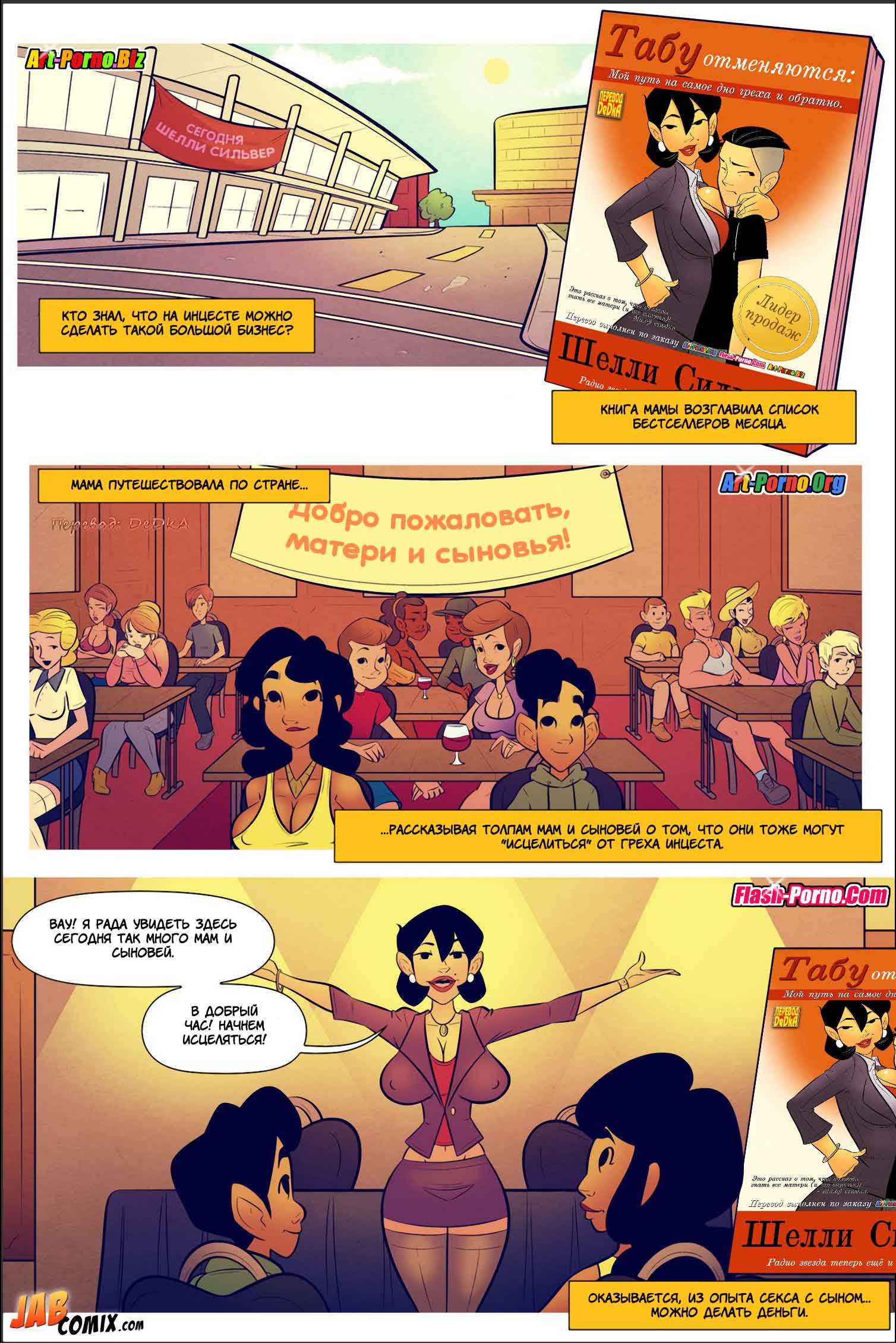 Представляем откровенные порно комиксы, где мать, известная нам по прошлой истории под именем Шелли Сильвер будет главной героиней. Как вы помните эта женщина была успешной радио звездой. Но на сей раз, зрелая леди захотела расширить сферу своей своеобразной деятельности. Шелли опубликовала свою авторскую книгу, название которой звучало так: «Табу отменяются: Мой путь на самое дно греха и обратно». Данное произведение было снабжено большим количеством подробных картинок. Книга сразу стала самым популярным бестселлером месяца. Заработав такой успех Шелли Сильвер, берет своего выросшего сына, и едет в турне по стране, чтобы поиметь еще больше бабла, читая свои лекции, ведь публика готова была платить любые деньги за такое шоу!