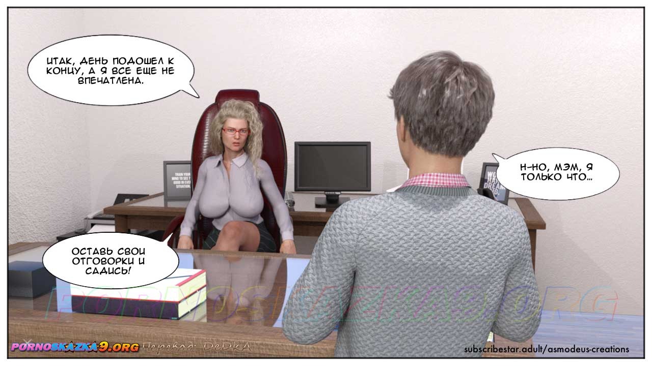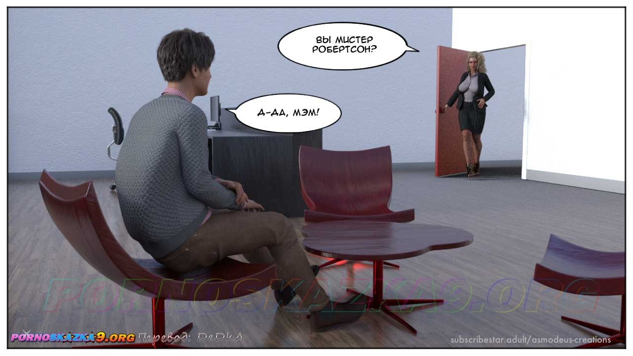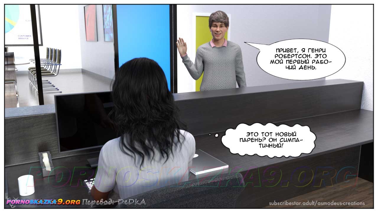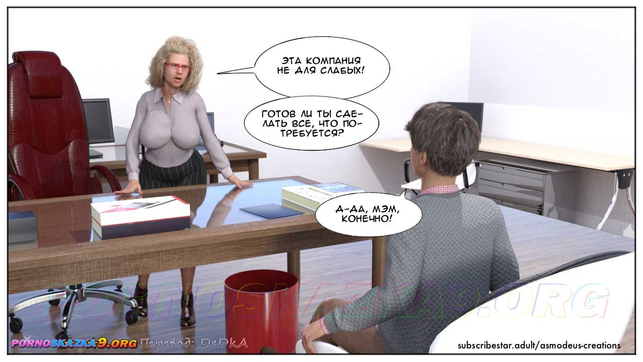 Порно комикс Моя новая работа. Часть 1. Генри Робертсона приняли на работу, и в первый же рабочий день его вызвала к себе начальница, которая без острой необходимости никогда не вызывает подчиненных к себе в кабинет…