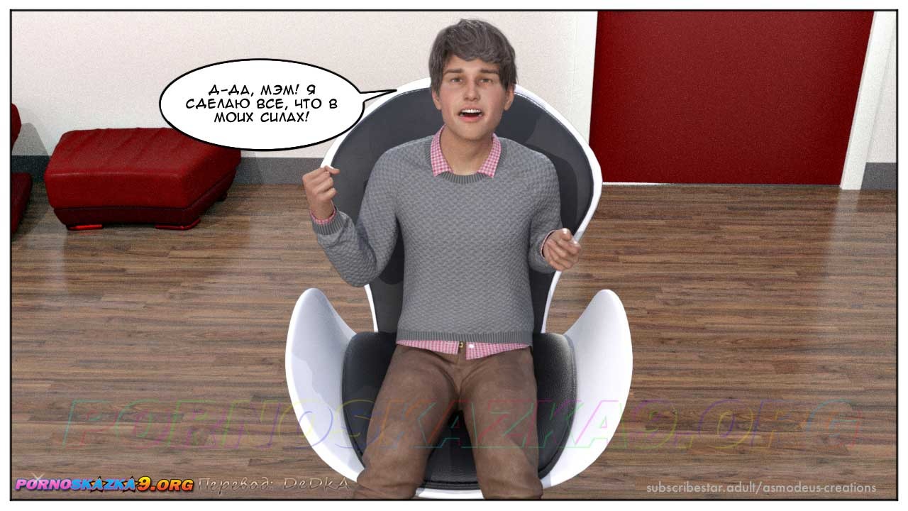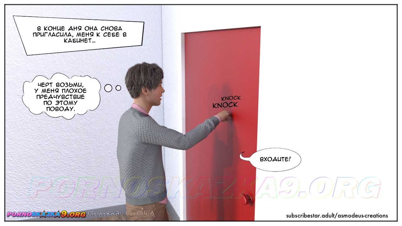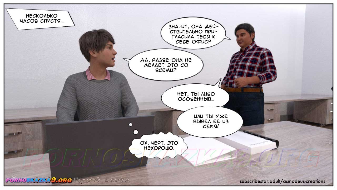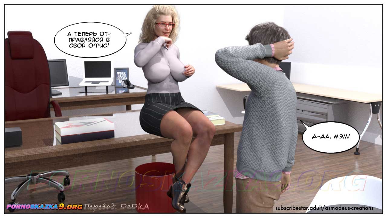 Порно комикс Моя новая работа. Часть 1. Генри Робертсона приняли на работу, и в первый же рабочий день его вызвала к себе начальница, которая без острой необходимости никогда не вызывает подчиненных к себе в кабинет…