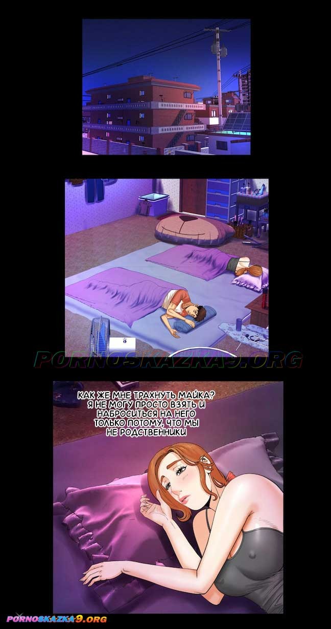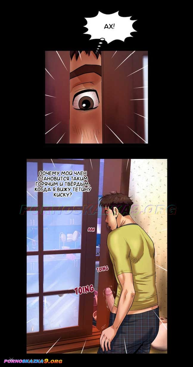 Порно комикс Моя тетя. Часть 5. Без Цензуры!!! Сара и Майк уже абсолютно друг друга не стесняются и постоянно демонстрируют свои обнажённые тела. Сару это дико возбуждает, и она решает наконец-то совратить бестолкового Майка на секс. Когда Майк уже готов вставить в киску Сары свой член, им вновь мешают непредвиденные обстоятельства…