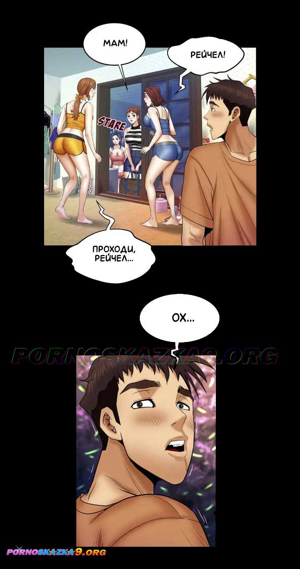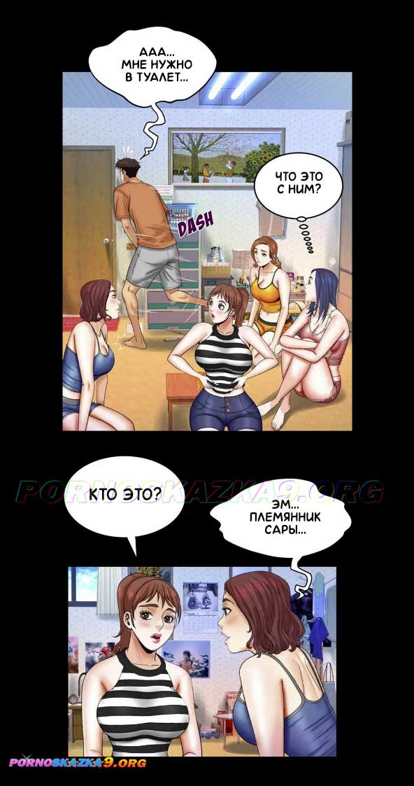Порно комикс Моя тётя. Часть 24. Без цензуры!!! Внезапно появившаяся девушка, прерывает разговор Сары, Лауры и Майка. Это Рейчел, дочь Лауры, которая сбежала из дома, так как её бил отец. Увидев Рейчел, Майк возбудился и побежал дрочить в туалет. Сара и Лаура уходят на работу, и Отэм болтает с Рейчел, которая захотела в туалет, но там всё ещё дрочит Майк. Девушки начинают беспокоиться за парня, который так долго находится в туалете…