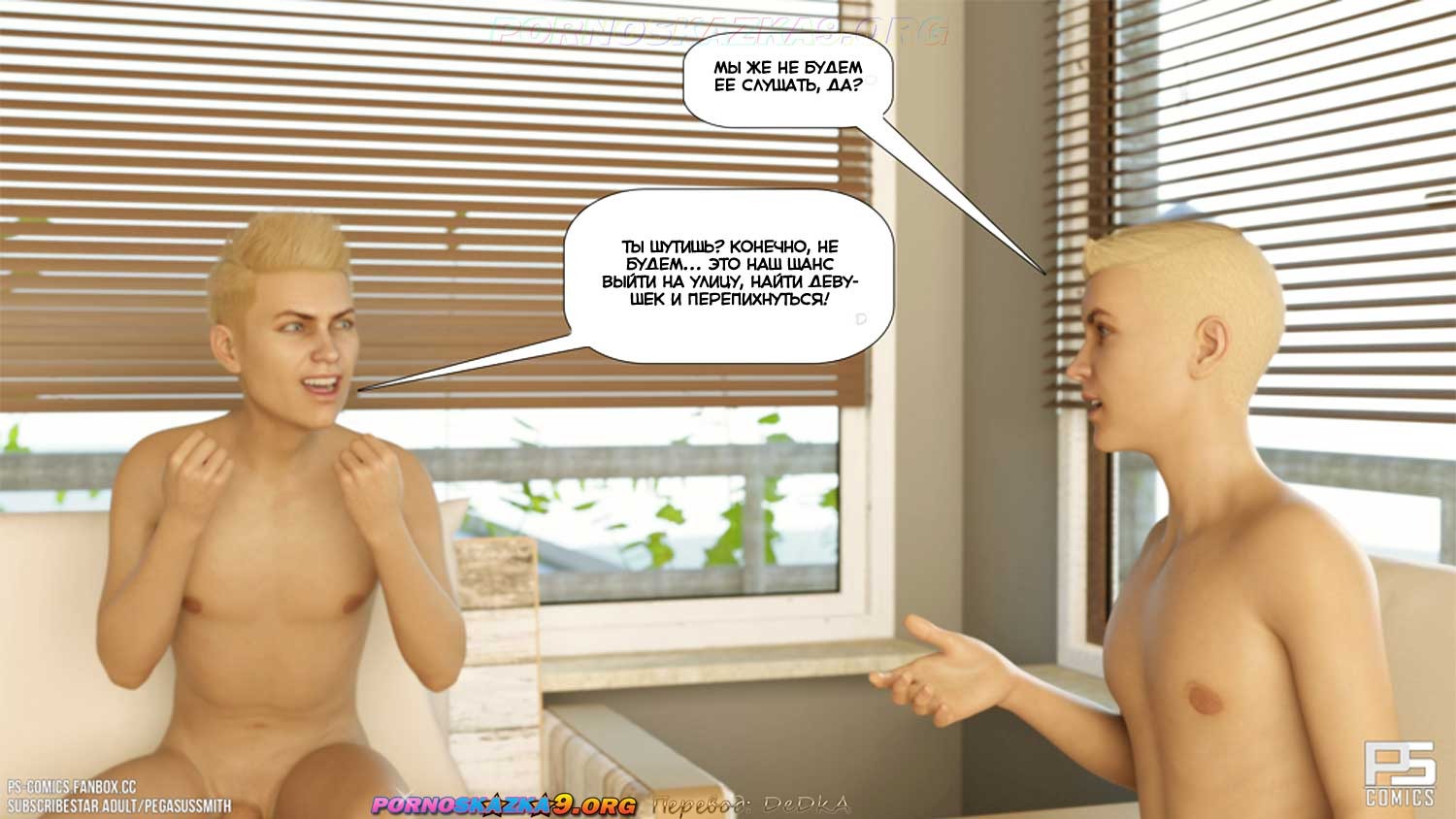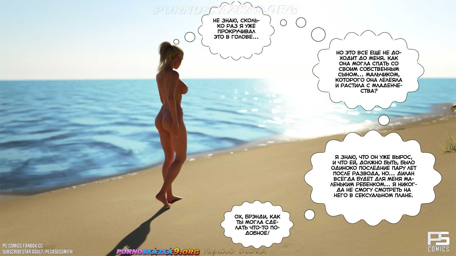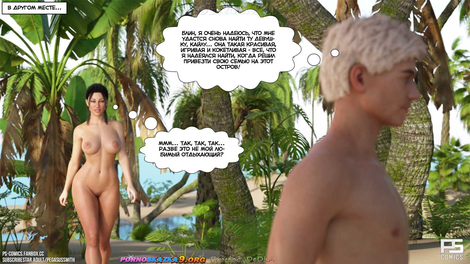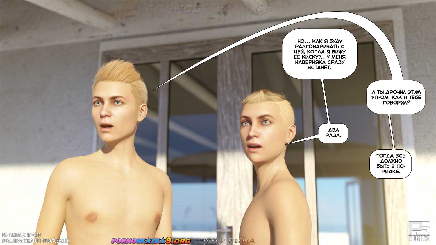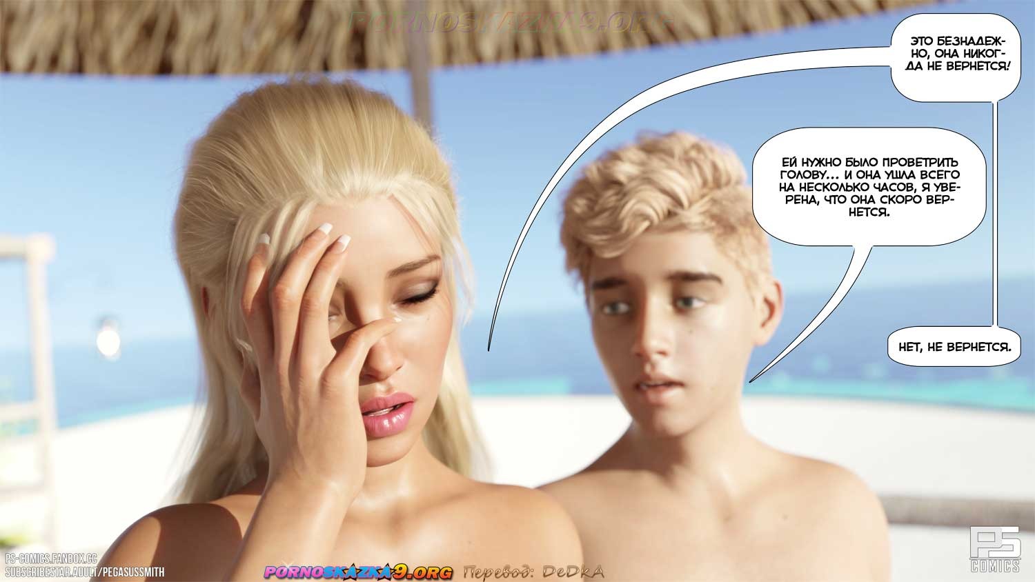 Порно комикс Нагишом. Нудистский курорт. Часть 16. Au Naturel. Pegasus Smith. Келли все еще шокирована от того, как увидела свою сестру за еблей с собственным сыном. Девушка пришла на пляж, где встретила знакомых ей девушек. Они готовы посвятить Келли в жизнь на острове…
