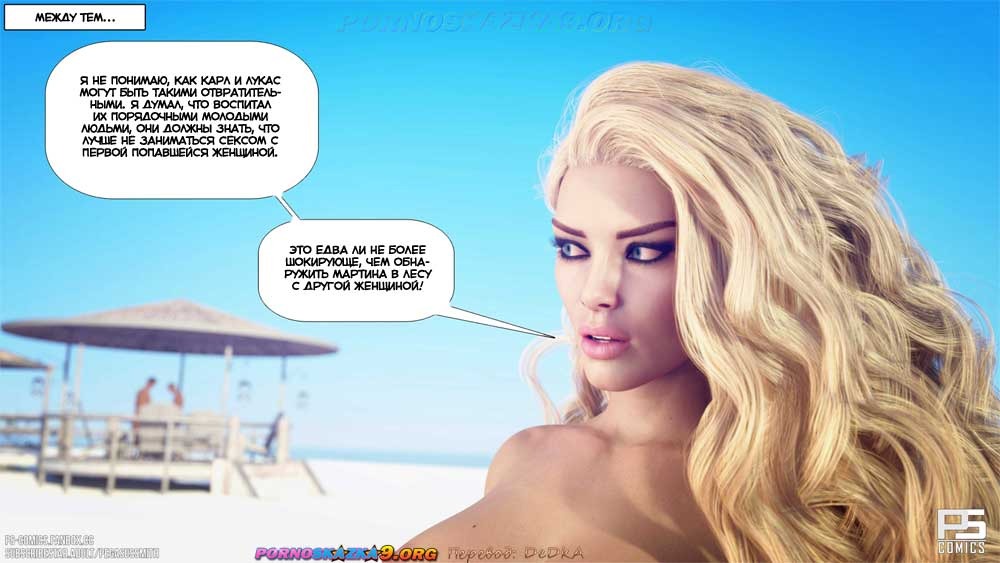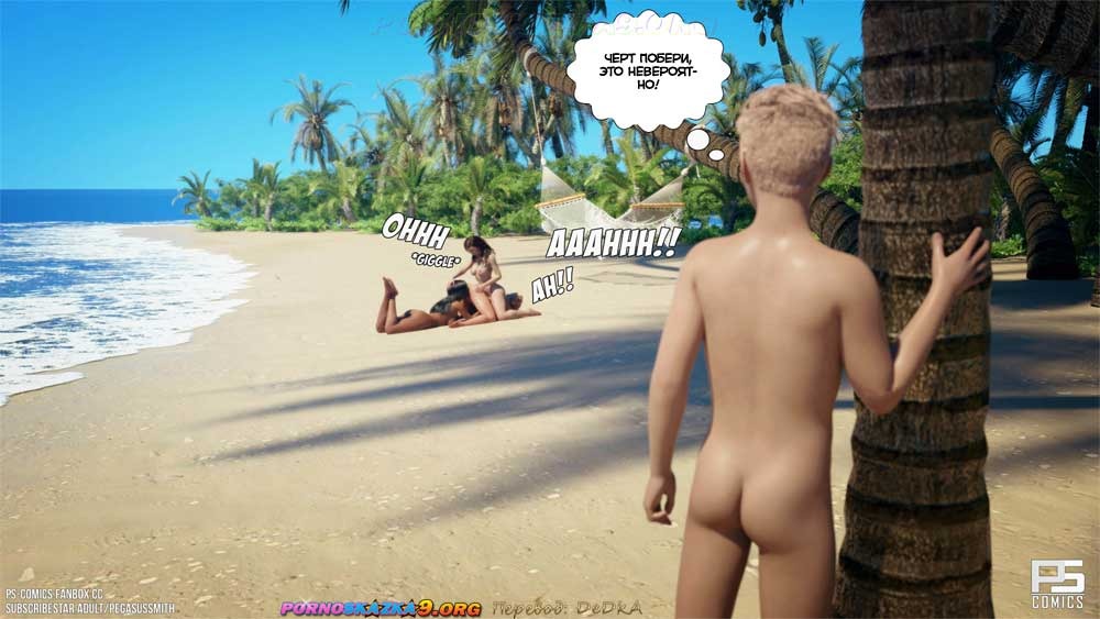 Порно комикс Нагишом. Нудистский курорт. Часть 17. Рассмотрев оргию в Джунглях, Келли была просто поражена. В таком состоянии две островитянки и вывели ее из густых джунглей к берегу океана…