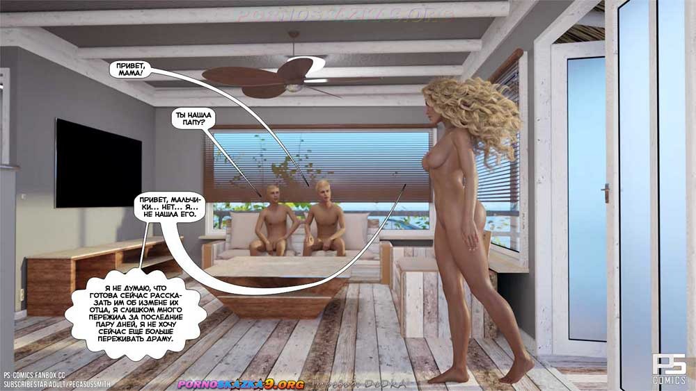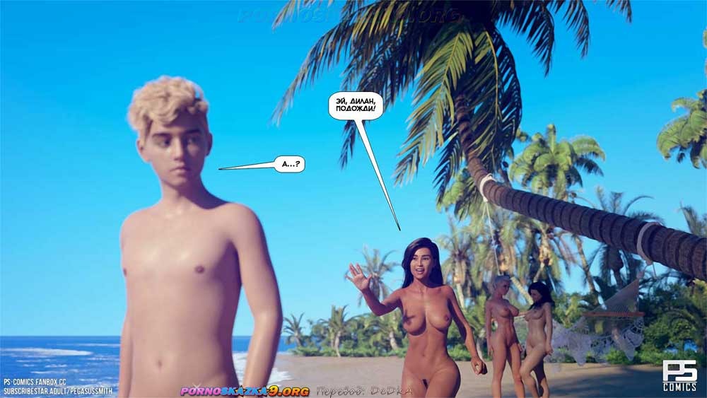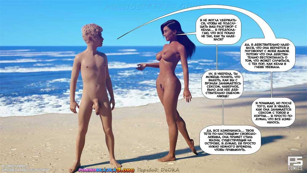 Порно комикс Нагишом. Нудистский курорт. Часть 18. Дилан по-прежнему пытается свести вместе совою мать и тетушку Келли, чтобы они, наконец, смогли поговорить и объясниться, но у него пока ничего не получается. Между тем, одна из симпатичных островитянок предлагает ему помощь в этом деле…