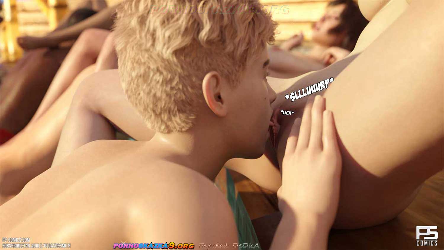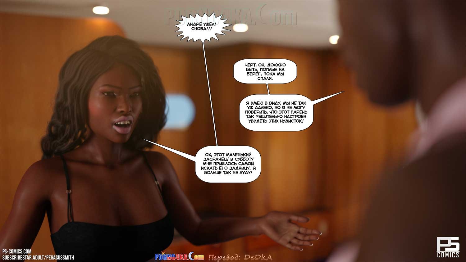 Порно комикс Нагишом. Нудистский курорт. Часть 21. Дарнелл и Шонда проснулись на яхте и обнаружили, что Андре снова улизнул на остров. Между тем к Брэнди, Келли и Дилану приходят местные островитянки и приглашают их на вечеринку…