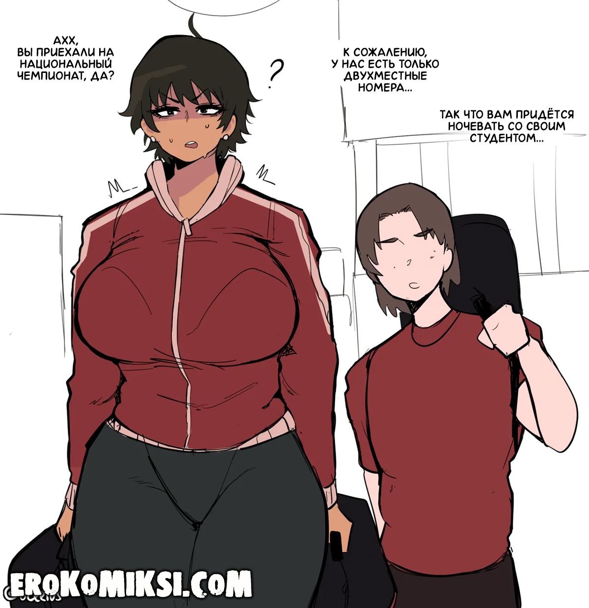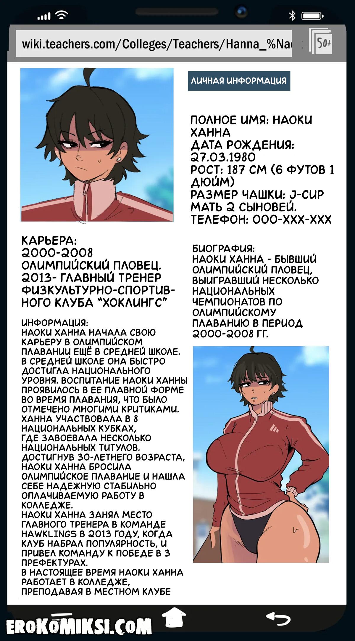 Порно комикс Наоки Ханна – учитель года. Ханна бывшая пловчиха, которая теперь преподаёт в университете, и с появлением Ханны, спрос на занятия плаванием резко вырос, ведь Ханна довольно горячая милфа с огромными сиськами и задницей, и все парни мечтают побольше времени проводить рядом с аппетитной мамочкой…