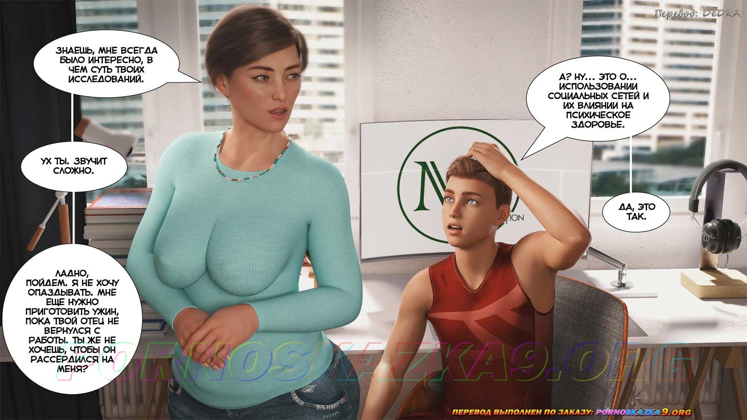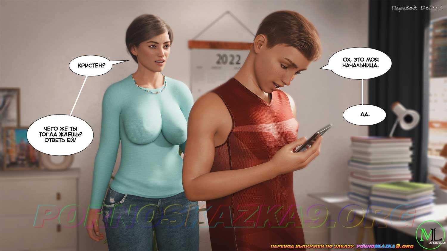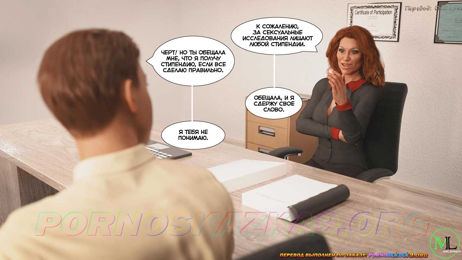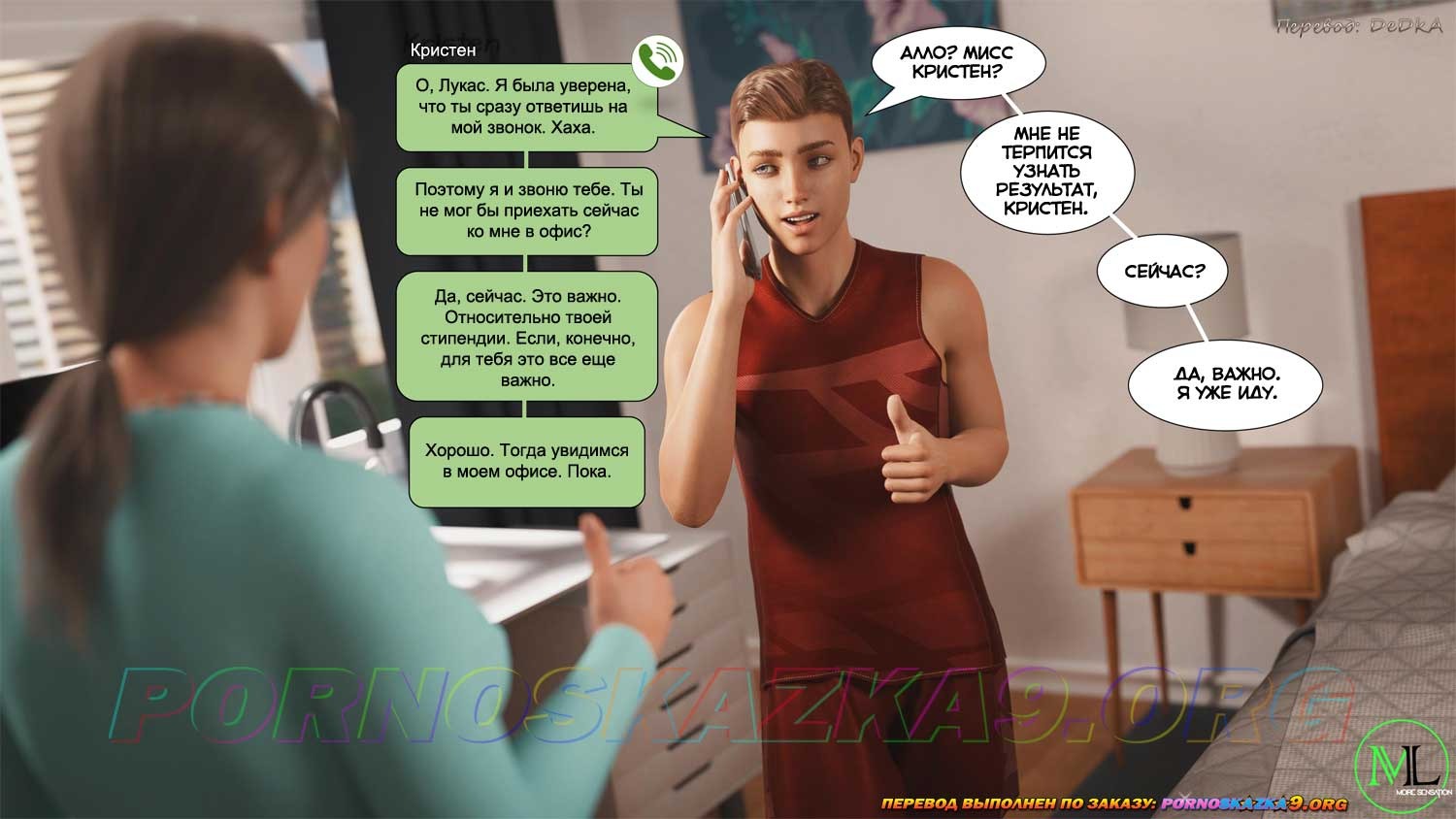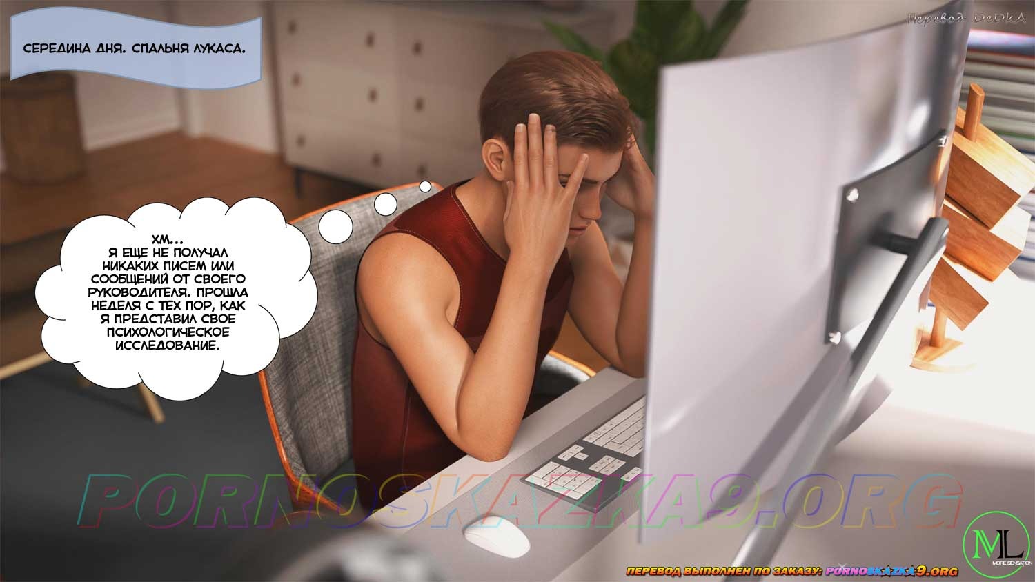 Порно комикс Нарушая границы. Часть 1. Лукас напряженно работал над психологическим исследованием от которого зависит не только его поступление в колледж, но и стипендия. Вскоре ему звонит его куратор, мисс Кристен, и говорит, что он должен срочно приехать к ней, чтобы поговорить по поводу его исследования.