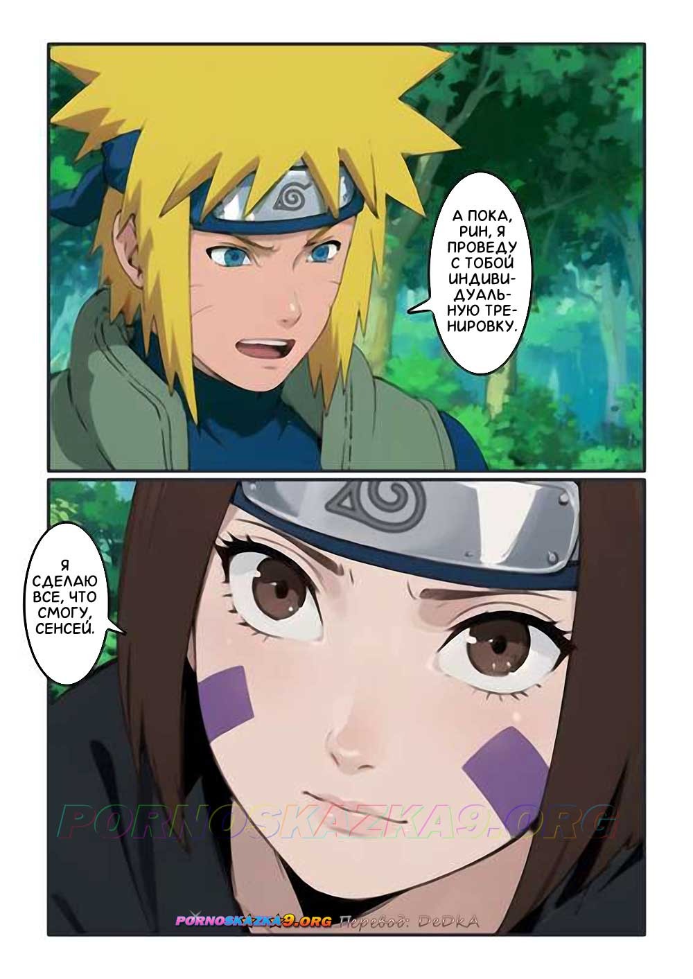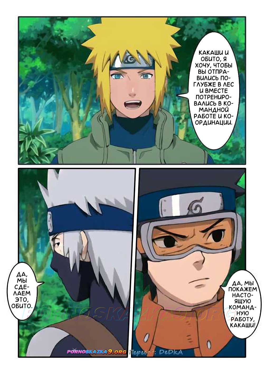 Порно комикс Наруто. Частные уроки Минато. Сенсей приказал Какаши и Обито отправиться поглубже в лес и вместе потренироваться в командной работе и координации. А сам со всей серьезностью и ответственностью, пользуясь тем, что Какаши уже далеко, занялся с Рин индивидуальной… анальной тренировкой…