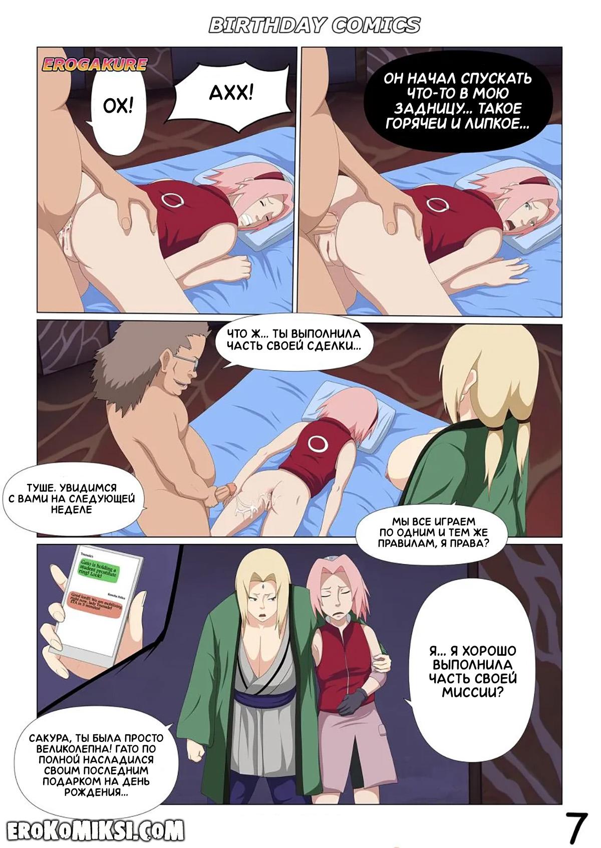 Порно комикс Наруто. День рождение Гато. Цунаде задолжала Гато кругленькую сумму, поэтому он захотел, чтобы в качестве расплаты Цунаде привела ему свою ученицу Сакуру, которую он в итоге оттрахал во все её тугие дырочки…