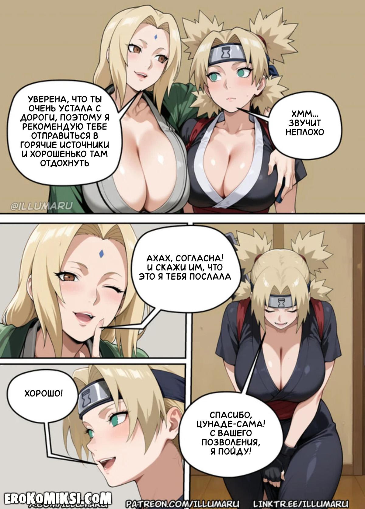 Порно комикс Наруто. Горячие Источники Конохи. Часть 9. Темари прибывает в Коноху, и Цунаде отправляет её в Горячие Источники, чтобы она могла отдохнуть с дороги. Туда же отправляется и Шикамару, который только что прибыл с очередной миссии и тоже хочет немного расслабиться…