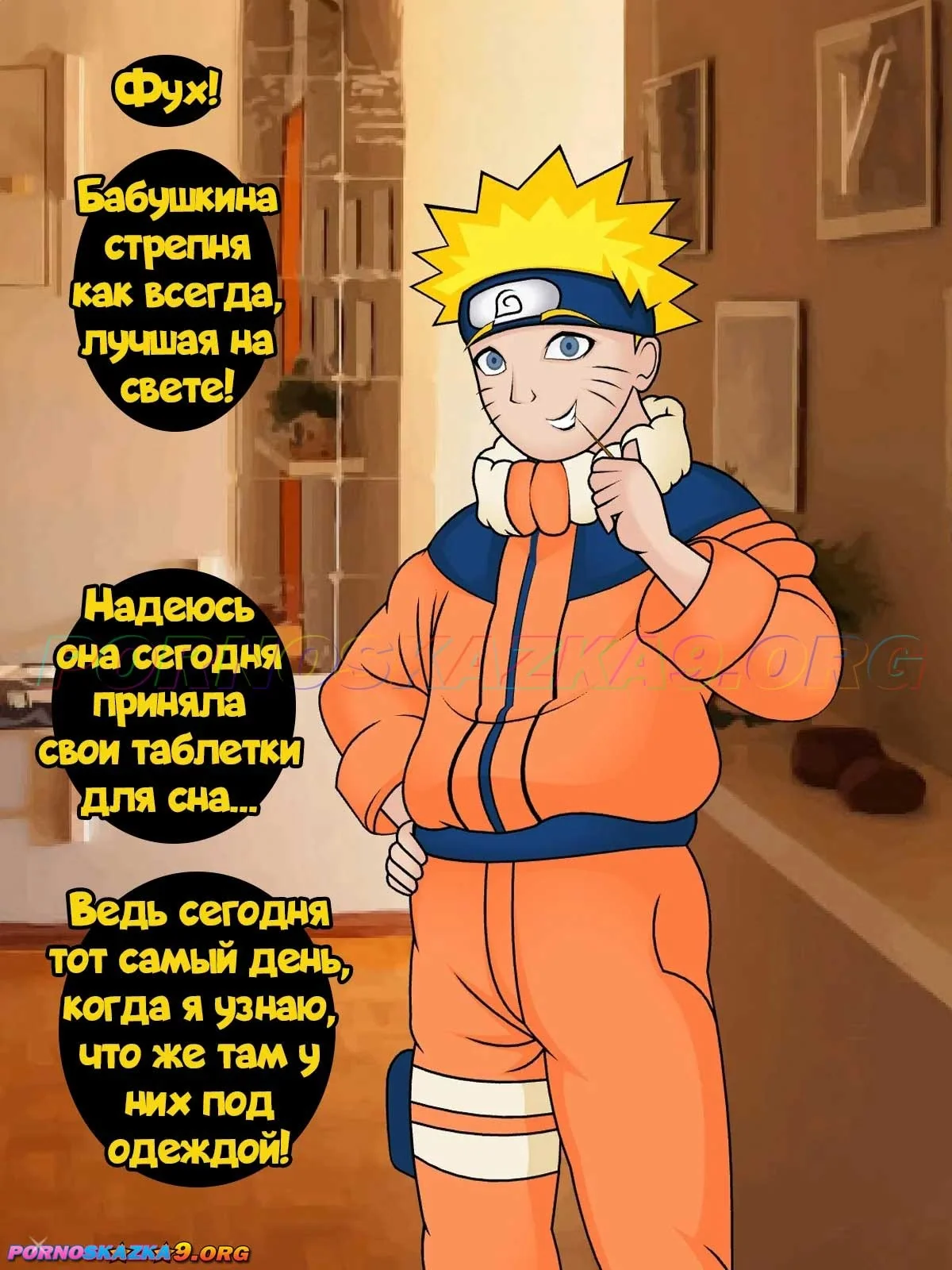 Порно комикс Наруто и спящая Цунадэ. Наруто хотел узнать, что же такого скрывают девчонки под юбкой и воспользовался для этого своей бабушкой, которая после приема снотворного спала как убитая. Парень не стеснялся и пользовался всеми дырками Цунаде…