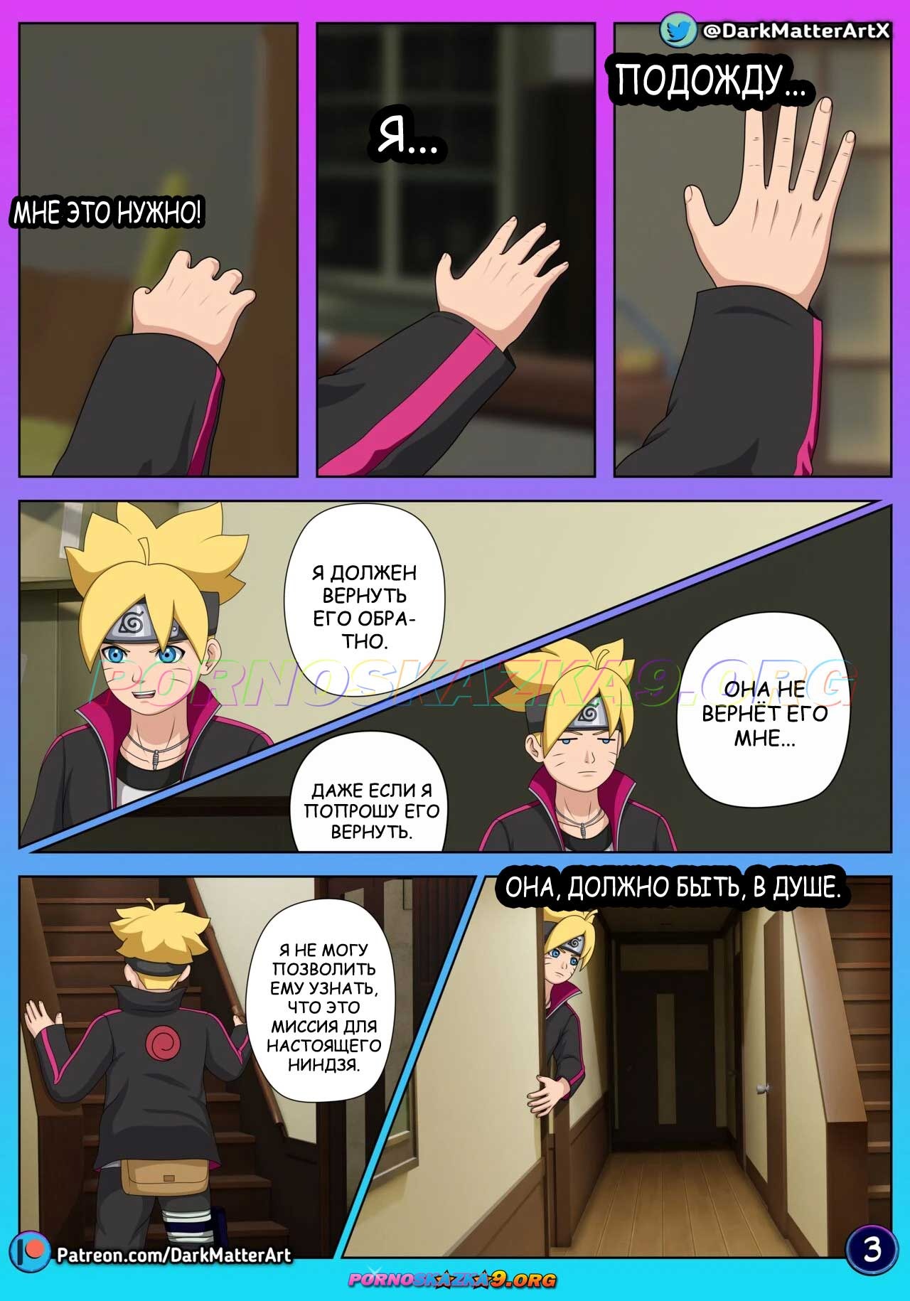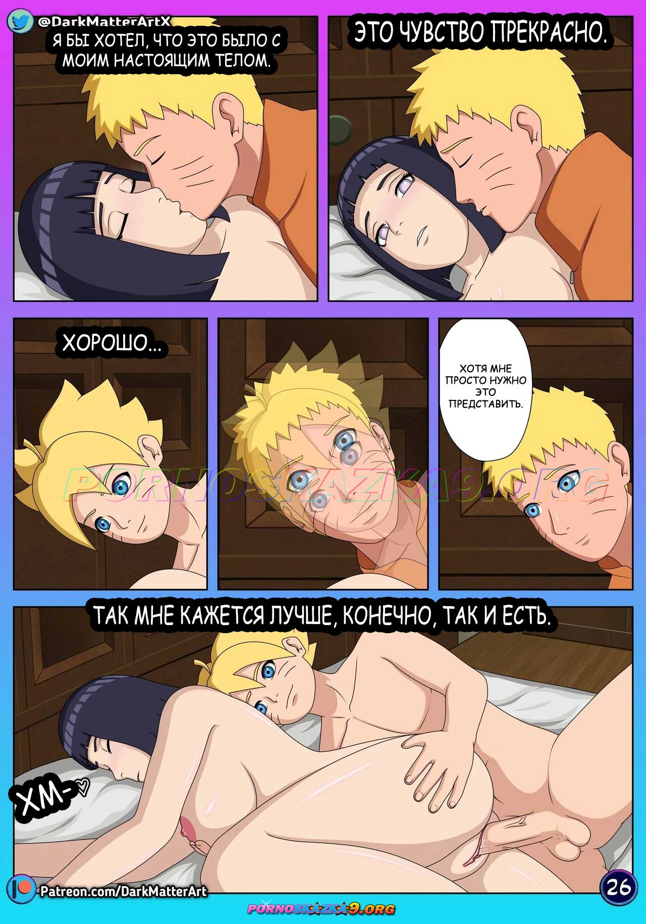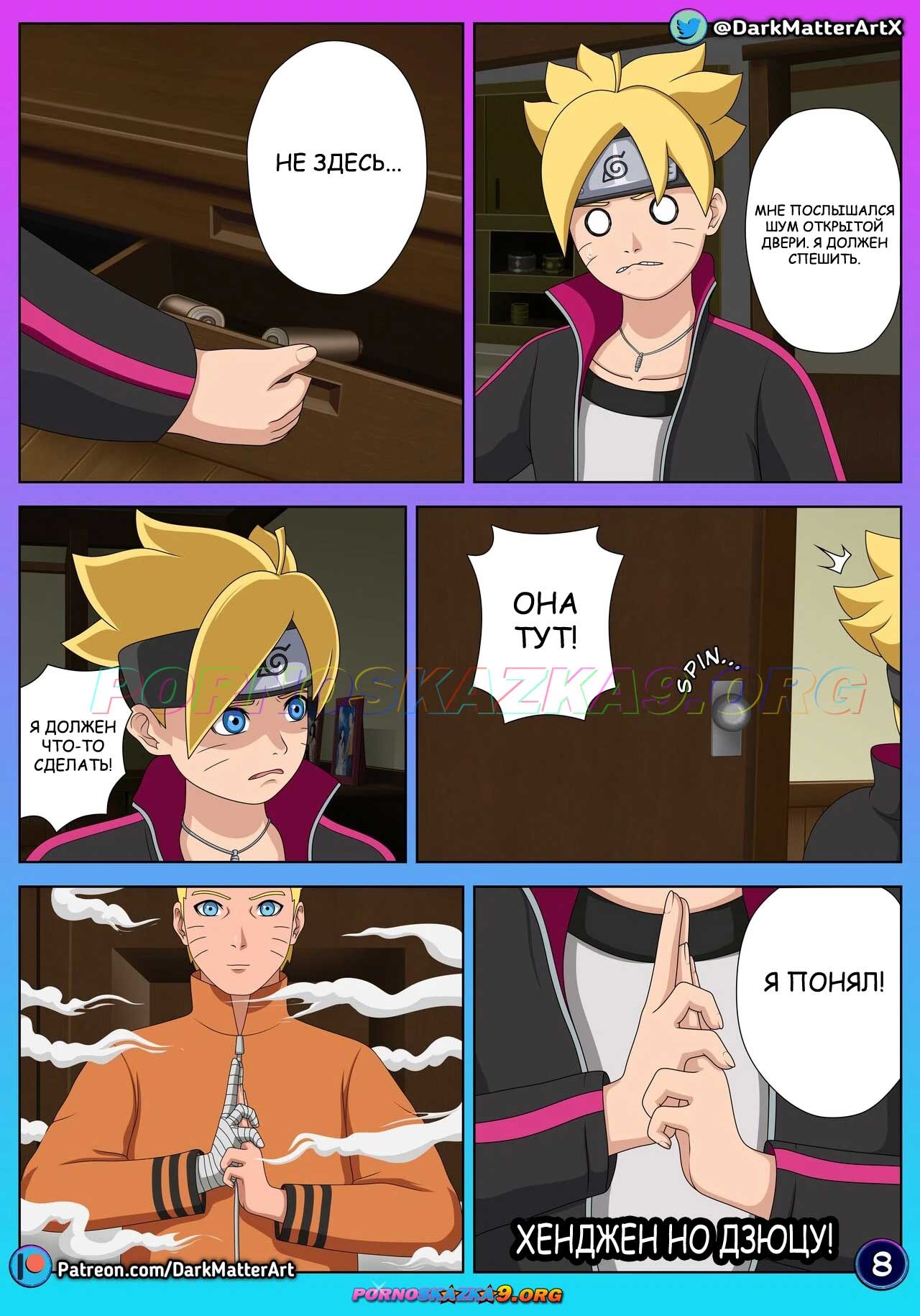Порно комикс Наруто. Конфуз в постели. Боруто захотел вернуть его защитник, который забрала у него его мама Хината, поэтому он пробрался в спальню к родителем. Но резко открылась дверь и он придумал трансформироваться в Наруто. Хината очень обрадовалась мужу и начала снимать с него штаны…