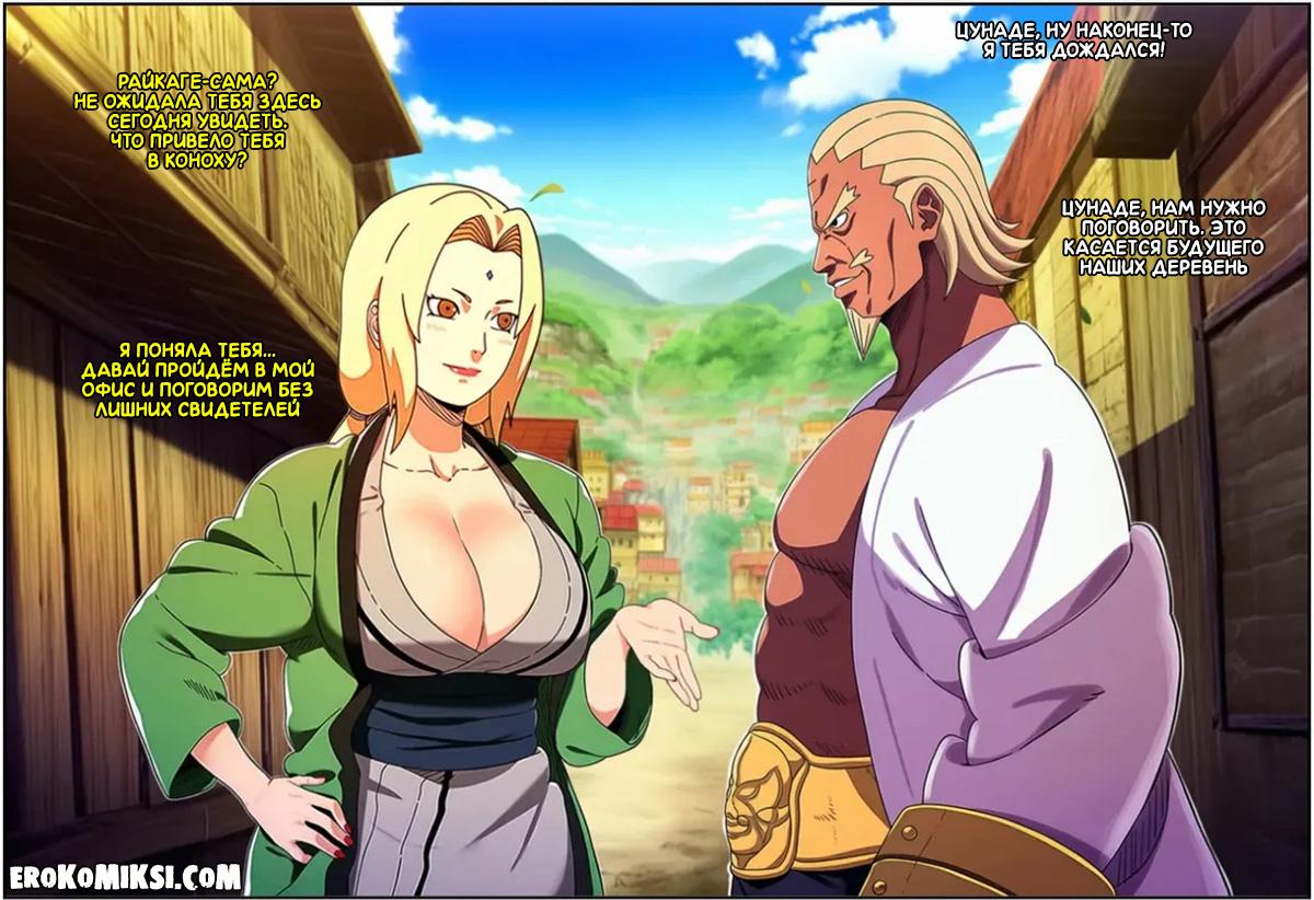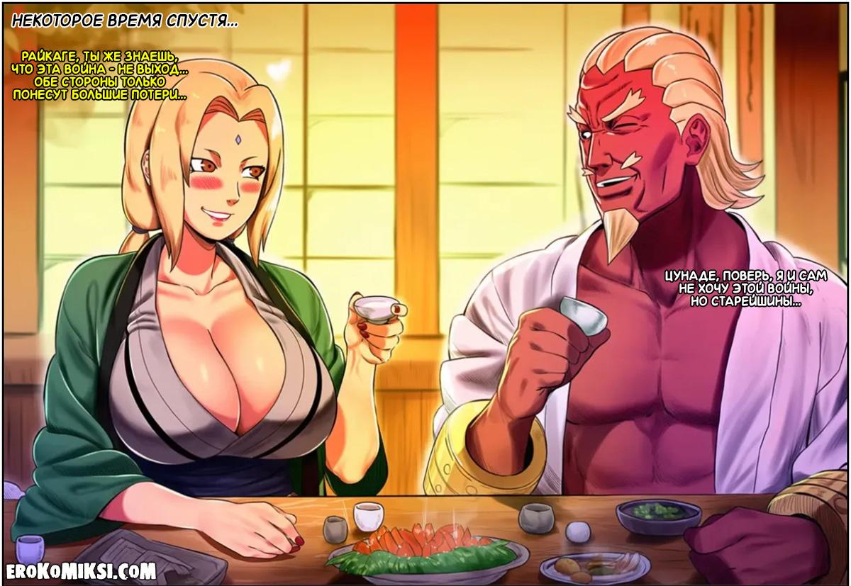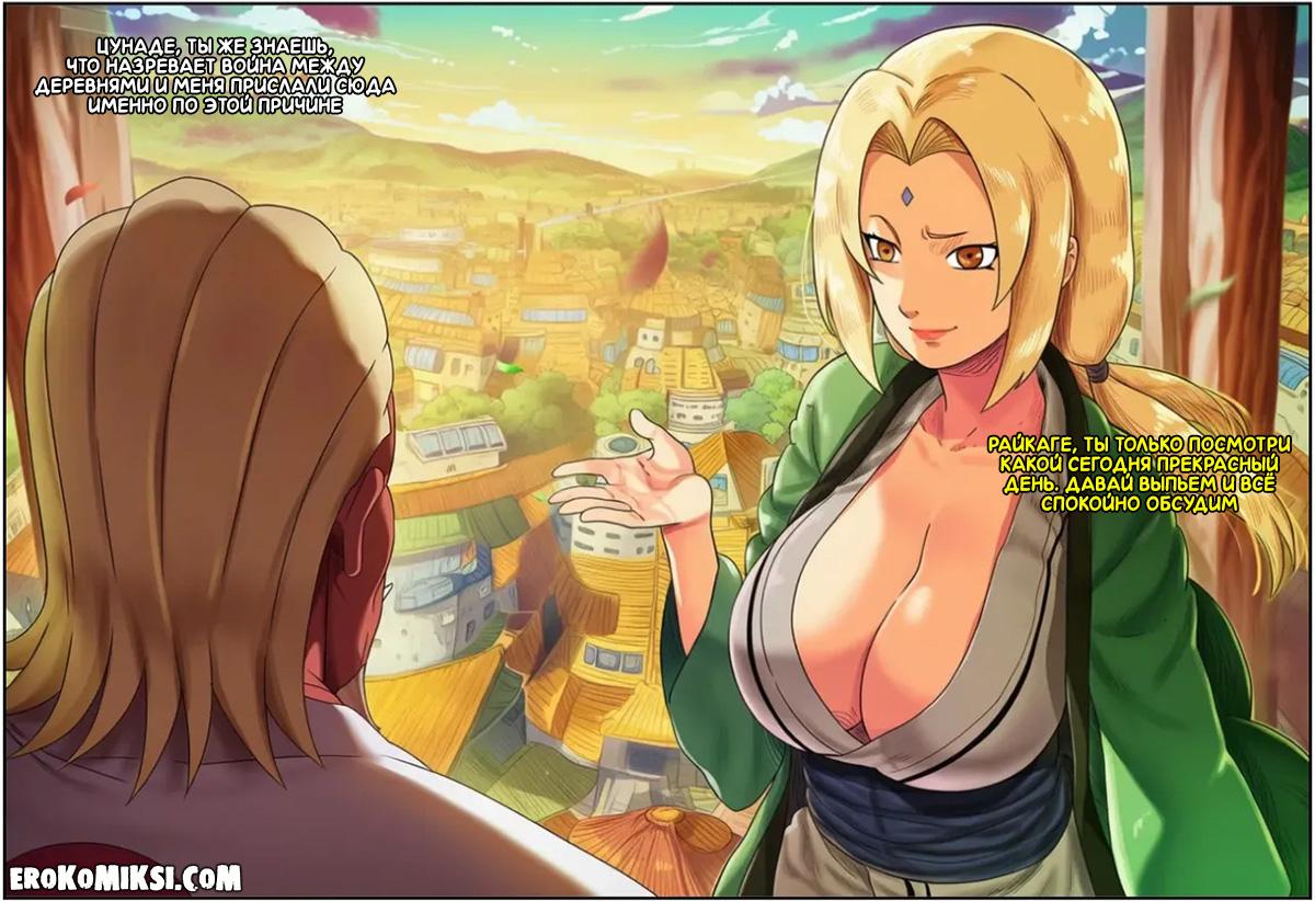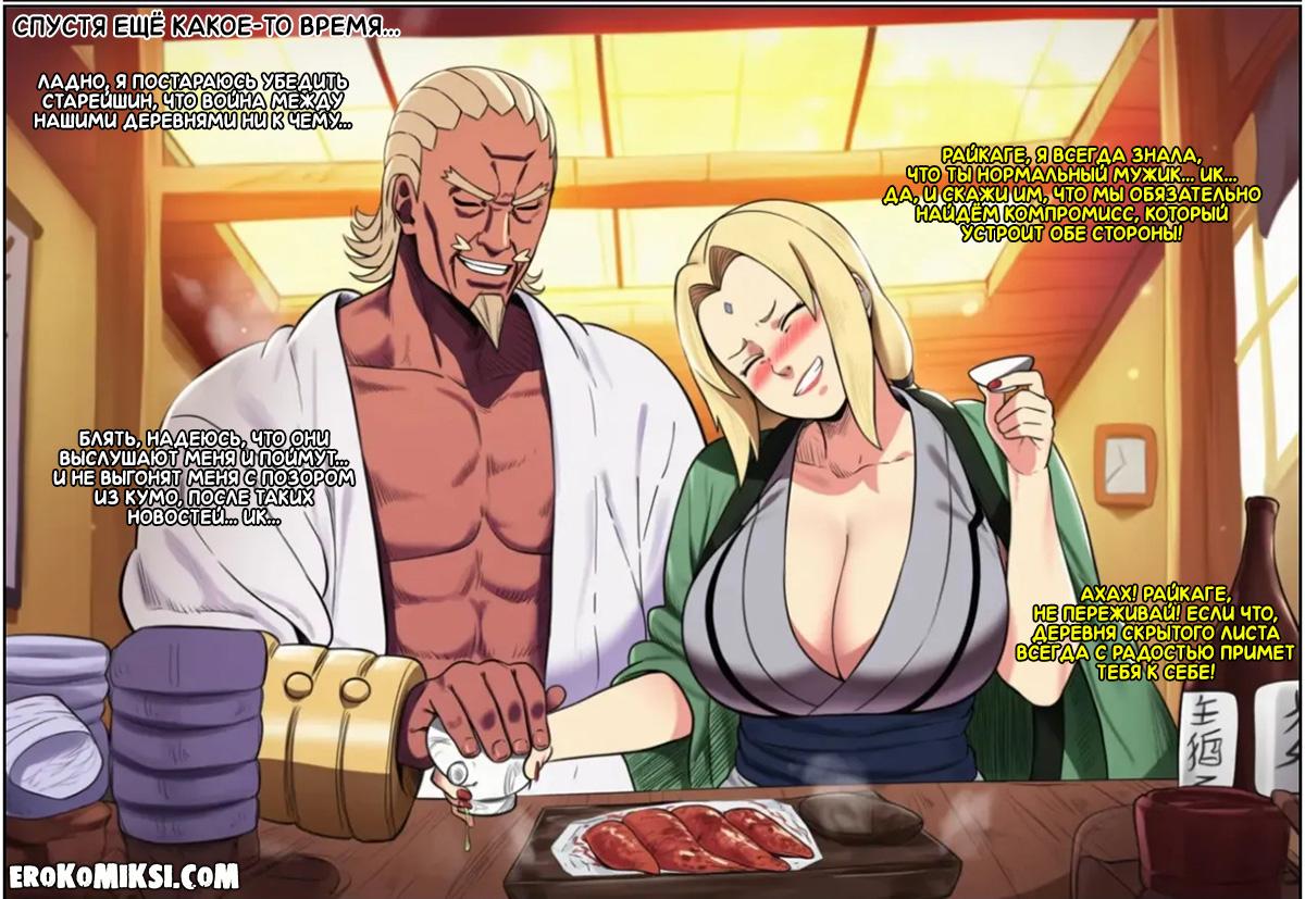 Порно комикс Наруто. Невероятные приключения Райкаге в Конохе. Часть 1. Райкаге прибывает в Коноху, чтобы обсудить с Цунаде предстоящую войну деревень. Но изрядно напившись, Райкаге и Цунаде пришли к выводу, что война никому не нужна, и закрепили своё решение потрясным сексом…