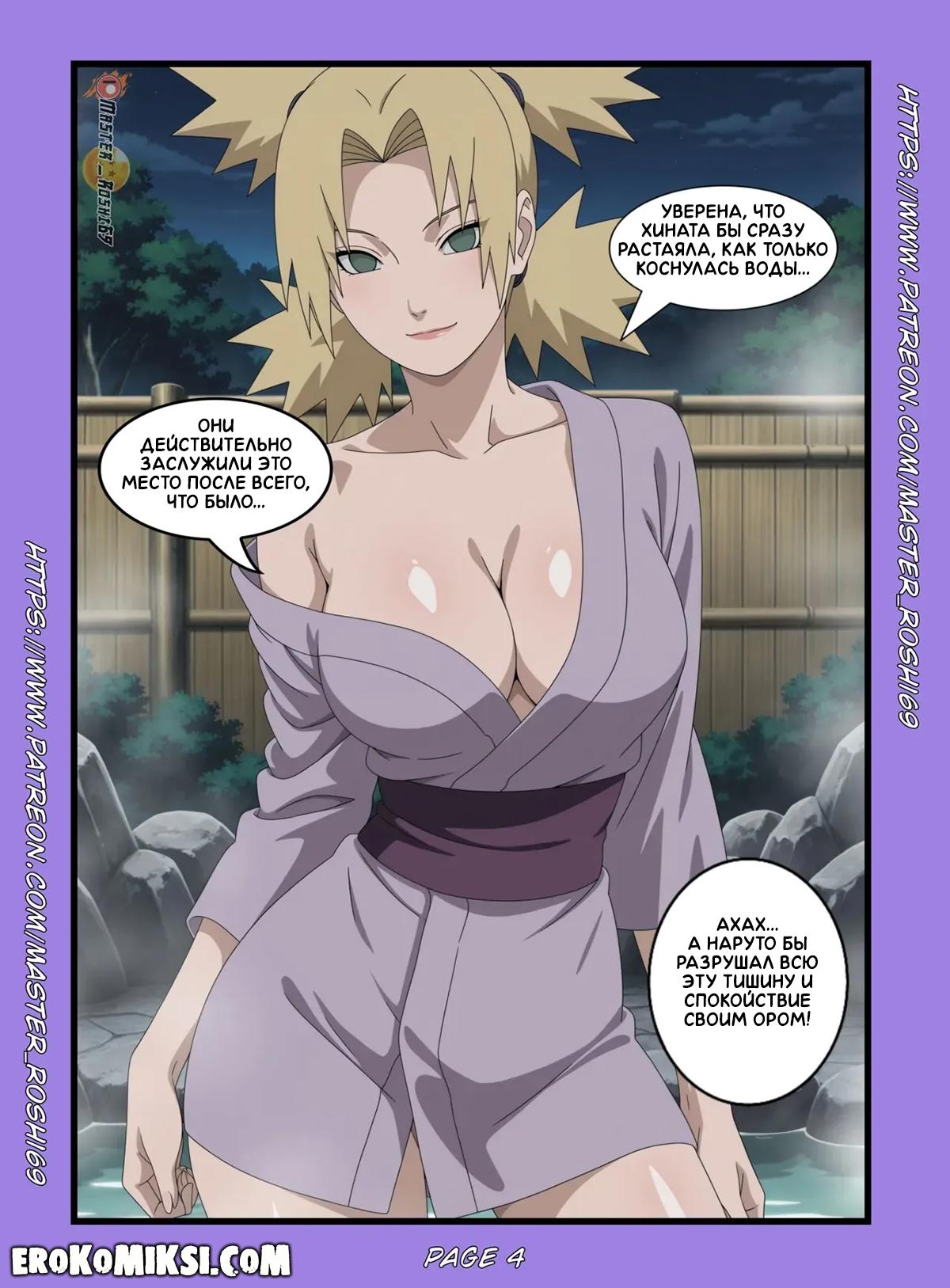 Порно комикс Наруто. Незапланированный медовый месяц. Темари и Шикамару решили подарить Нуруто и Хинате путёвку на горячие источники на их медовый месяц. Однако, оказавшись на источниках, Темари очень возбудилась и решила немного повеселиться с муженьком и принялась отсасывать его огромный член…
