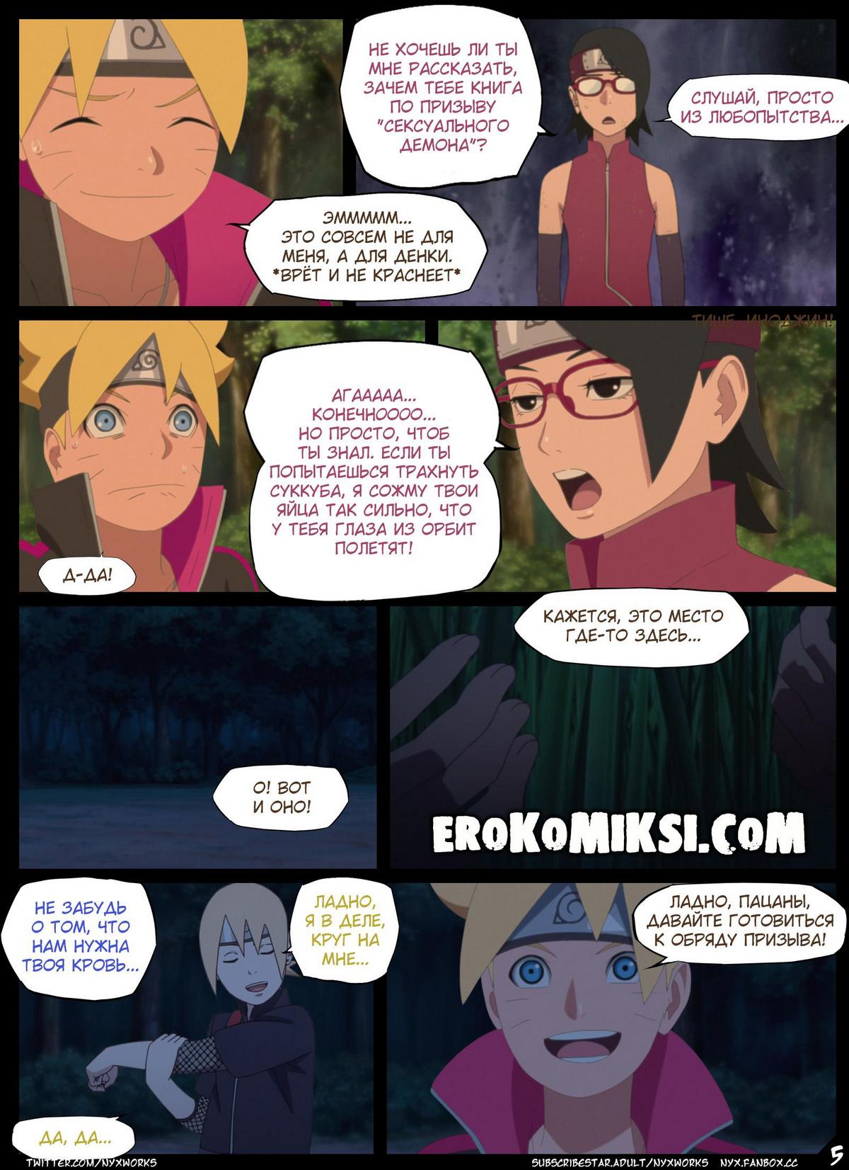 Порно комикс Наруто. Ночь Ритуала. Боруто украл из запретных архивов книгу, которая позволяет призвать суккуба. Однако во время призыва всё пошло не по плану…