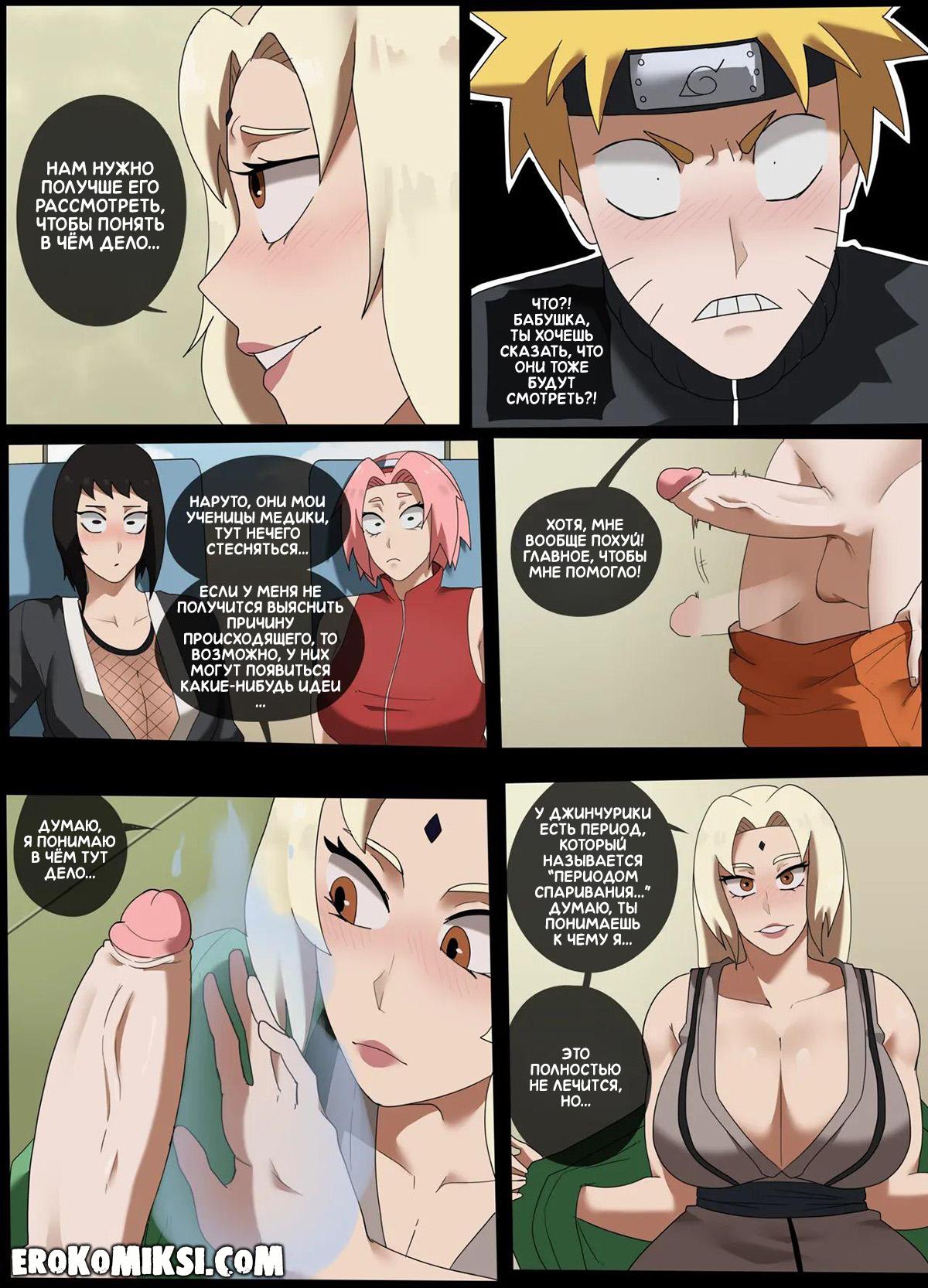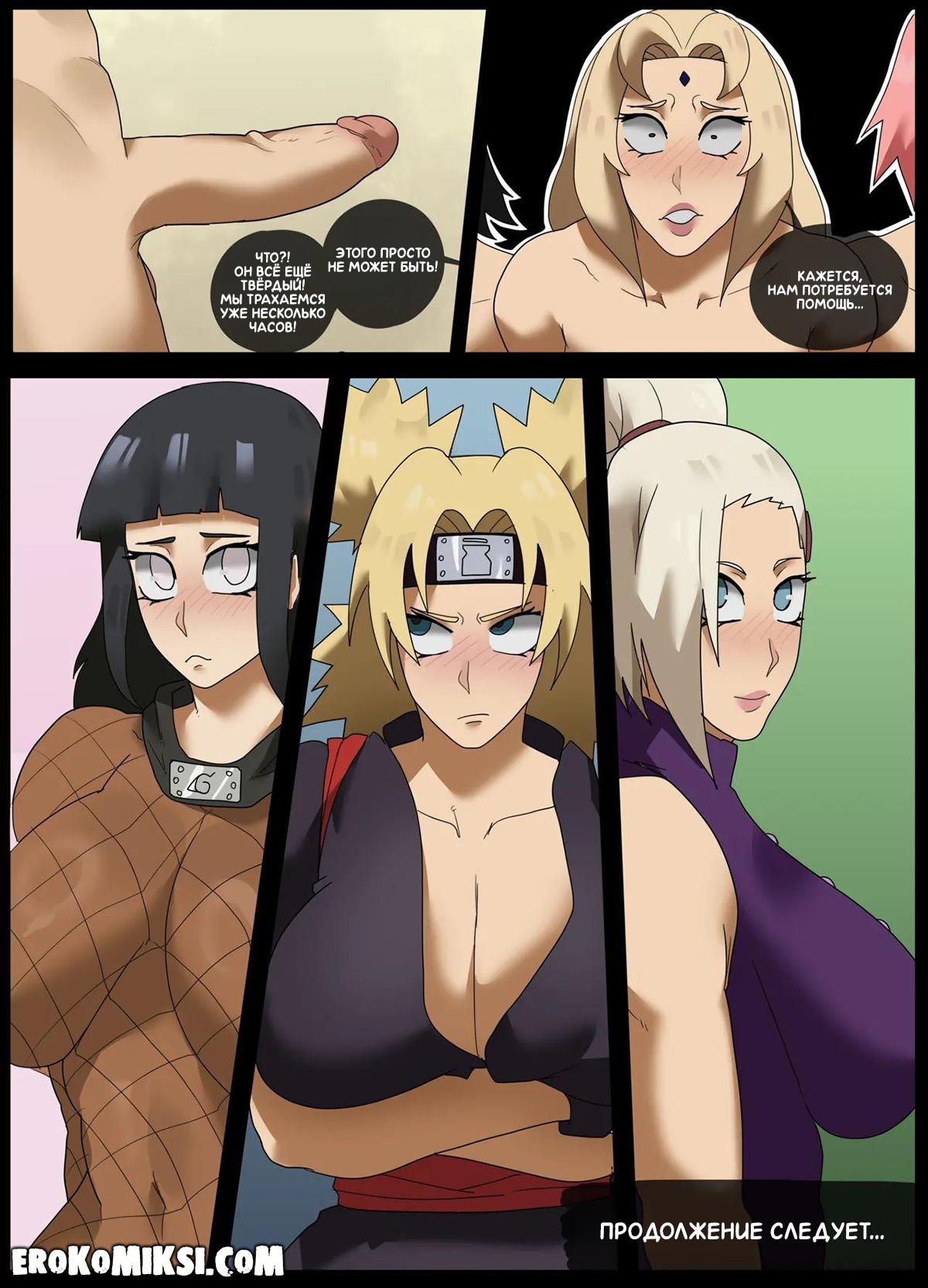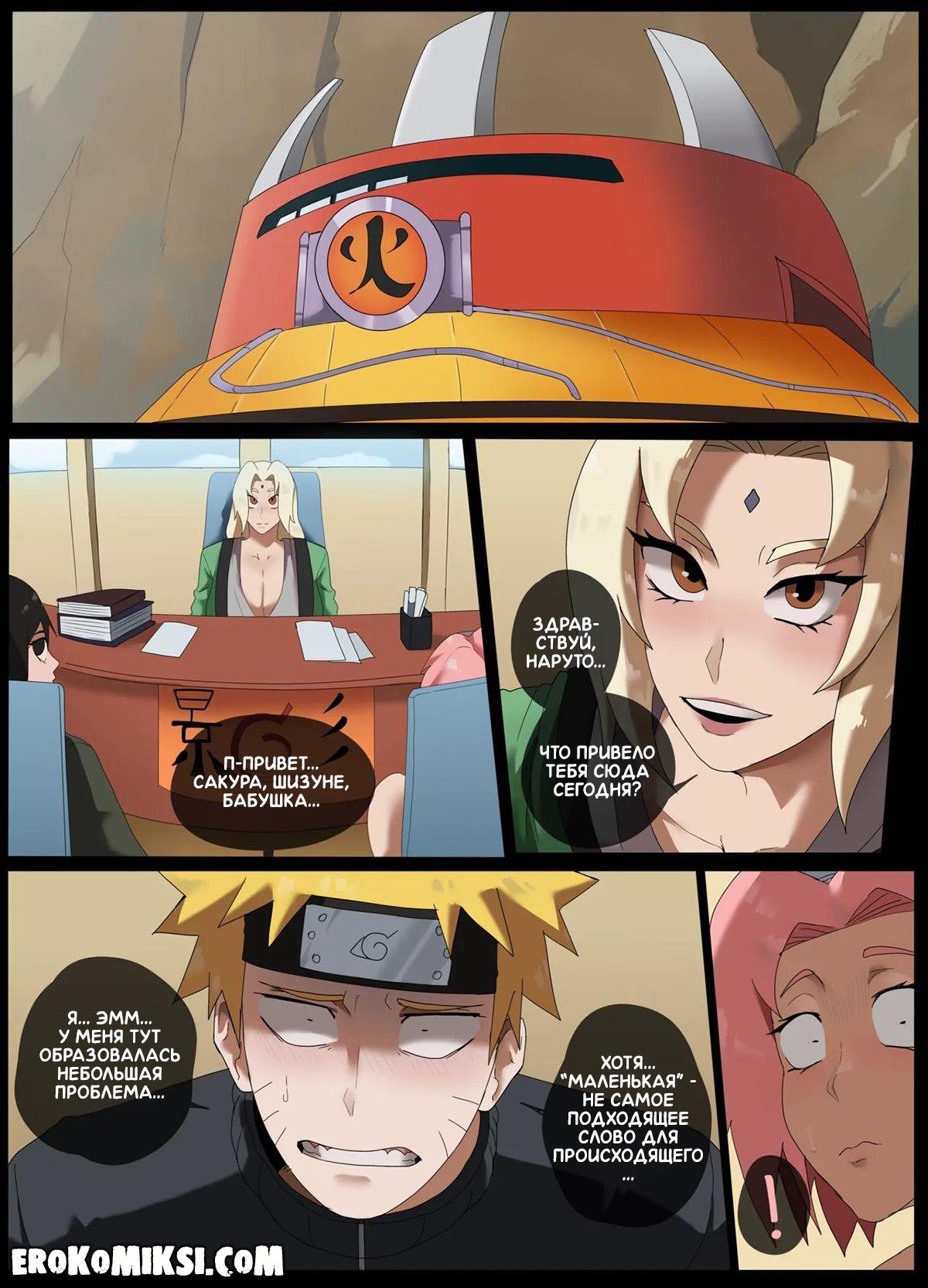 Порно комикс Наруто. Помощь Наруто. Наруто прибегает к Цунаде, которая в этот момент даёт наставления Сакуре и Шизуне, и жалуется на то, что у него не спадает эрекция. Недолго думая, Цунаде принимается помогать парню, отсасывая его член, после чего к ней присоединяются её ученицы…
