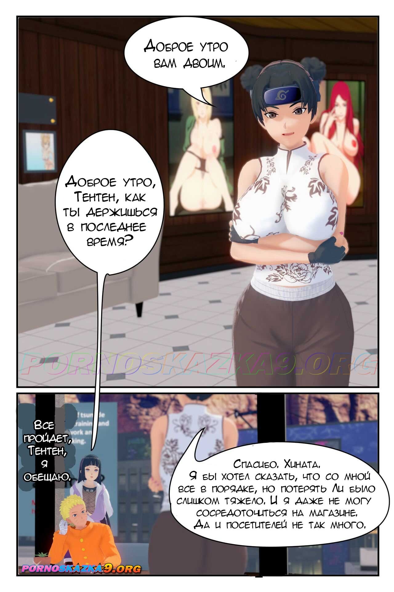 Порно комикс Наруто: Рассказы о ТенТене. После потери Ли, Тентен загрустил. Сосредоточиться на магазине не может, да и посетителей мало, но все так плохо, ведь рядом Хината!
