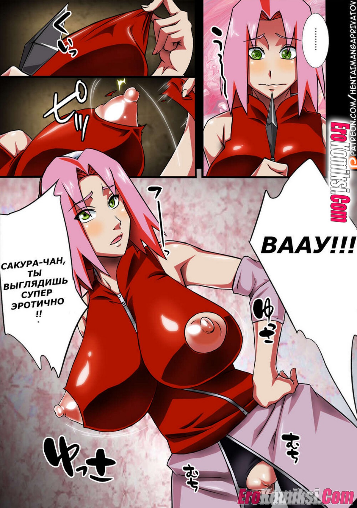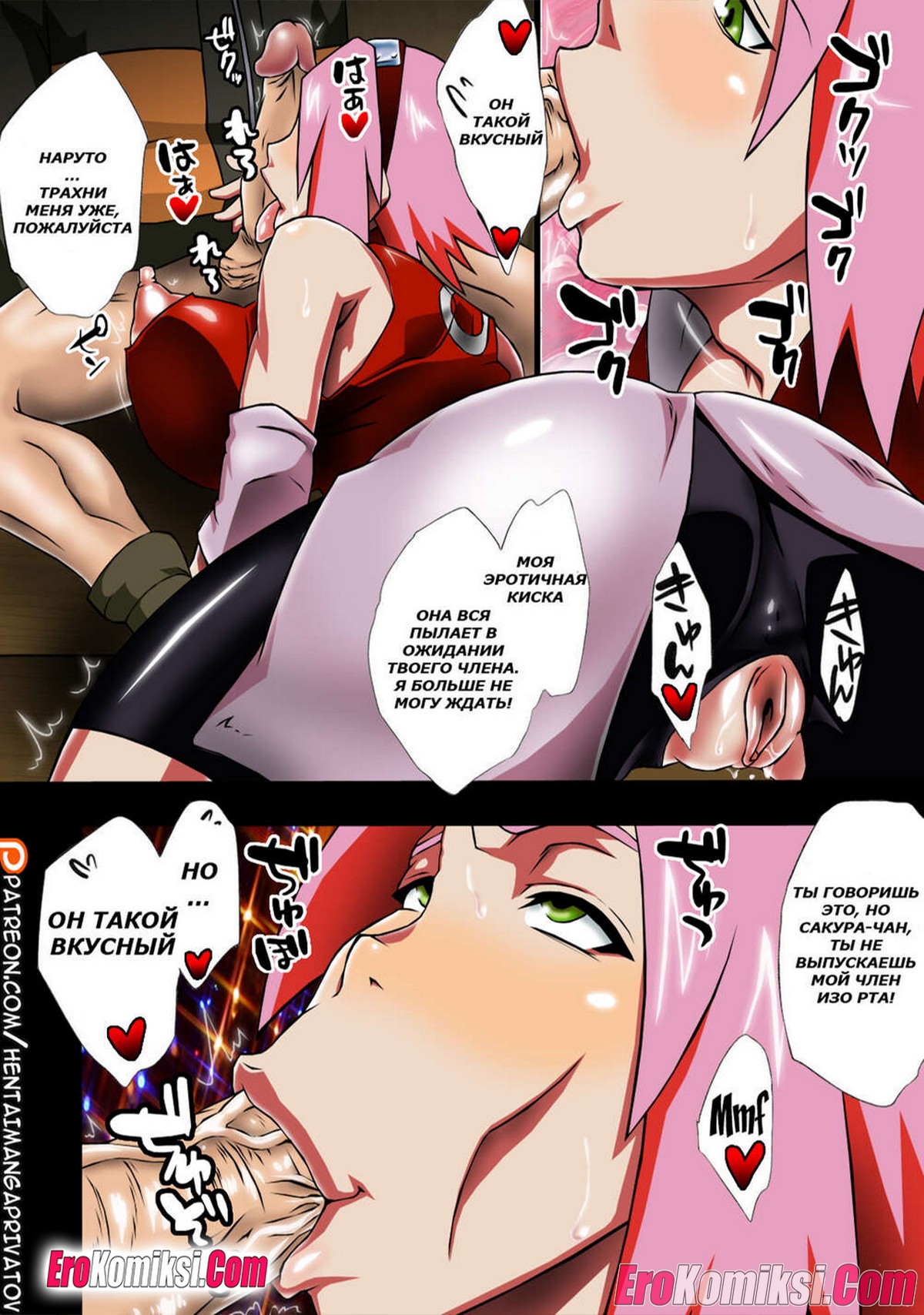 Порно комикс Наруто. Шлюхи Конохи. Konoha saboten Горячая сисястая красотка застал своих подруг за еблей с парнем. Сучка тоже возбудилась и решила повеселиться с парнем. Она стала сосать его большой хуй, а затем дала ему себя выебать.