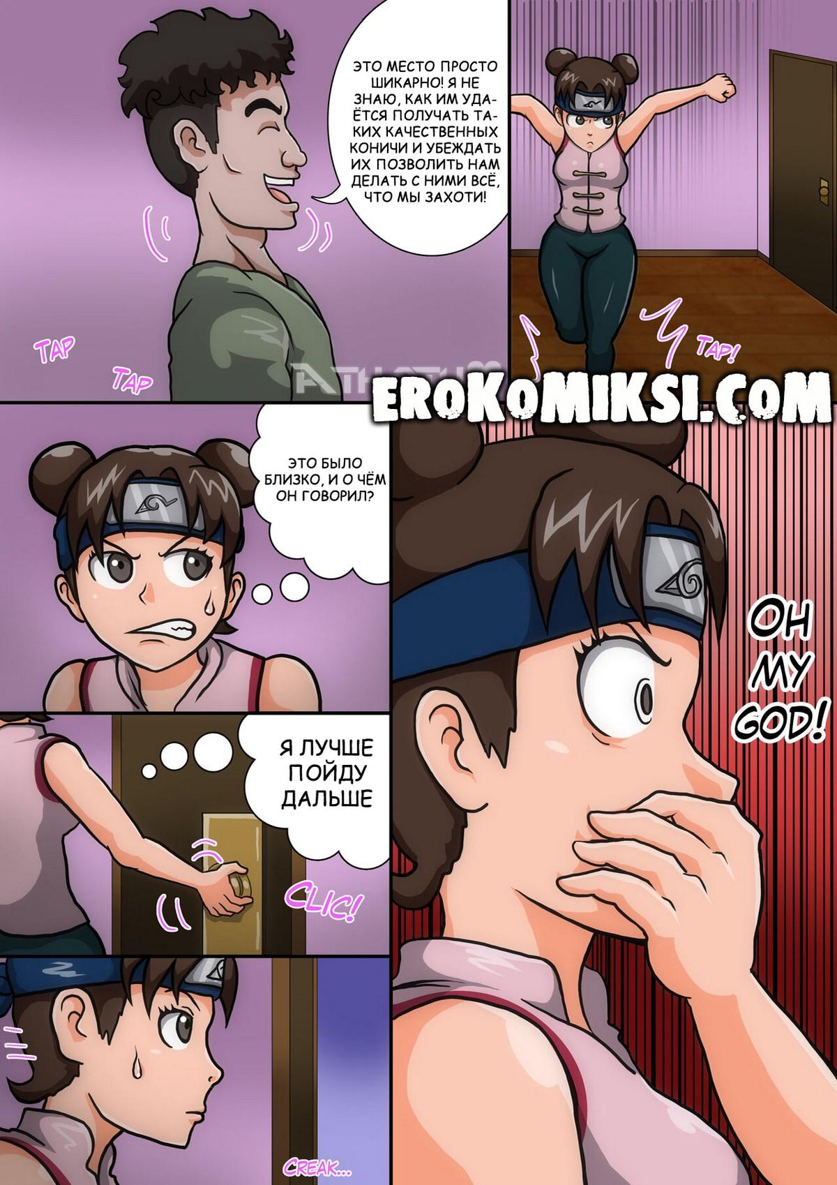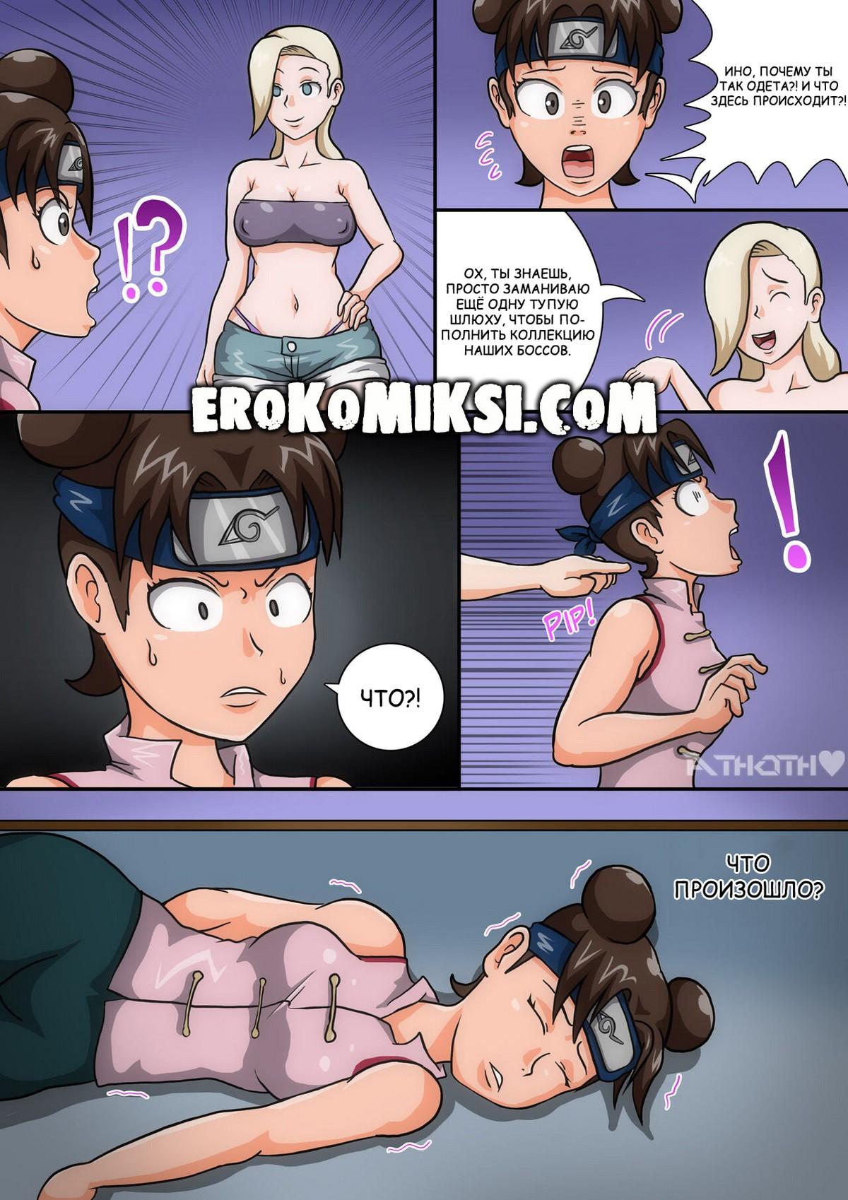 Порно комикс Наруто. В шкуре Куноичи. В 3 части Тентен решила выяснить куда постоянно ходят все девушки-куноичи, поэтому она проследила за Ино и Хинатой. Найдя какое-то странно место для отдыха она была в шоке, найдя Хинату в плену…