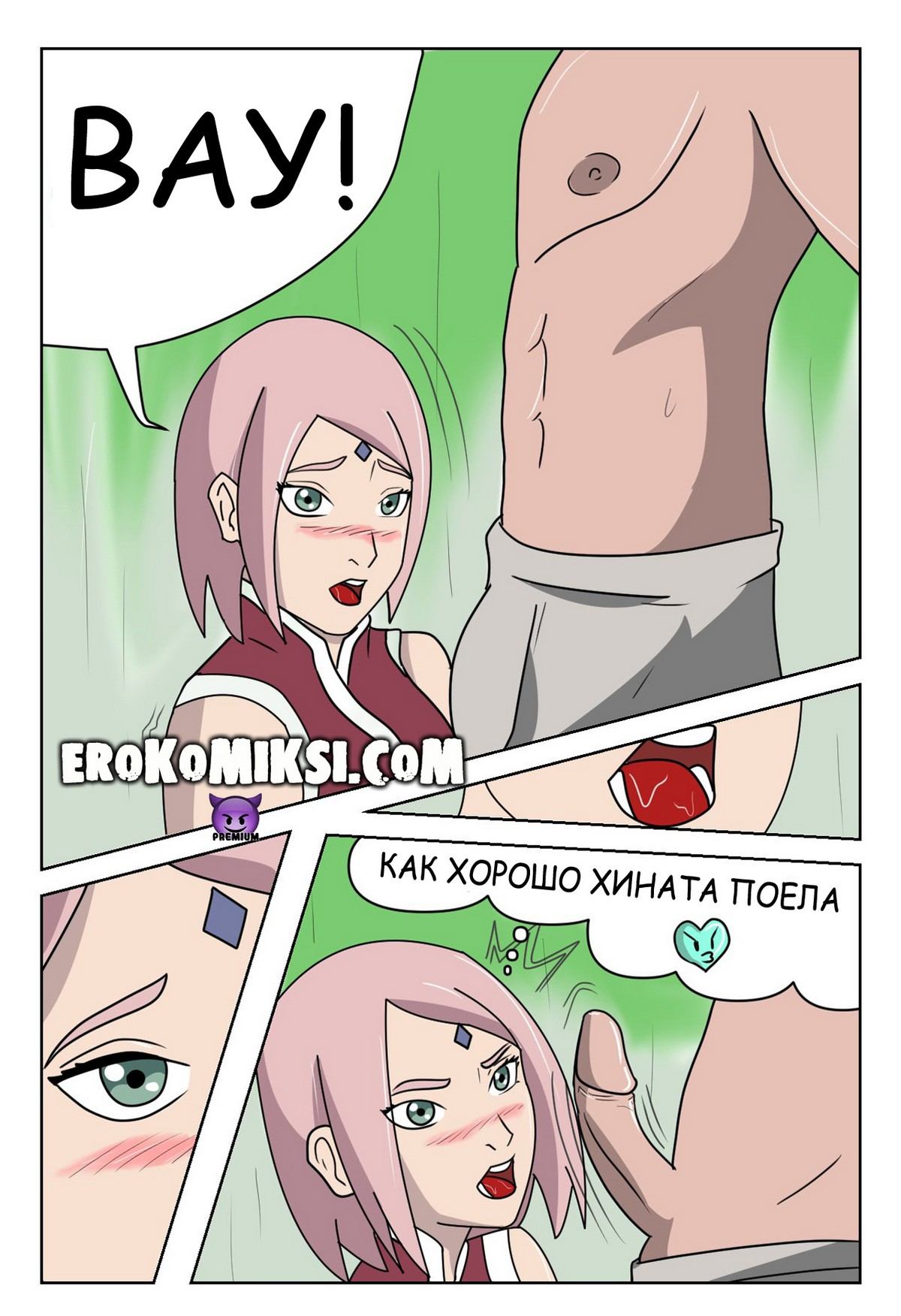Порно комикс Наруто. Вторая битва шиноби. Хината была не единственной, кто хотел отблагодарить Наруто, но и Сакура была не против пососать его член, а после дать свою анальную дырочку…