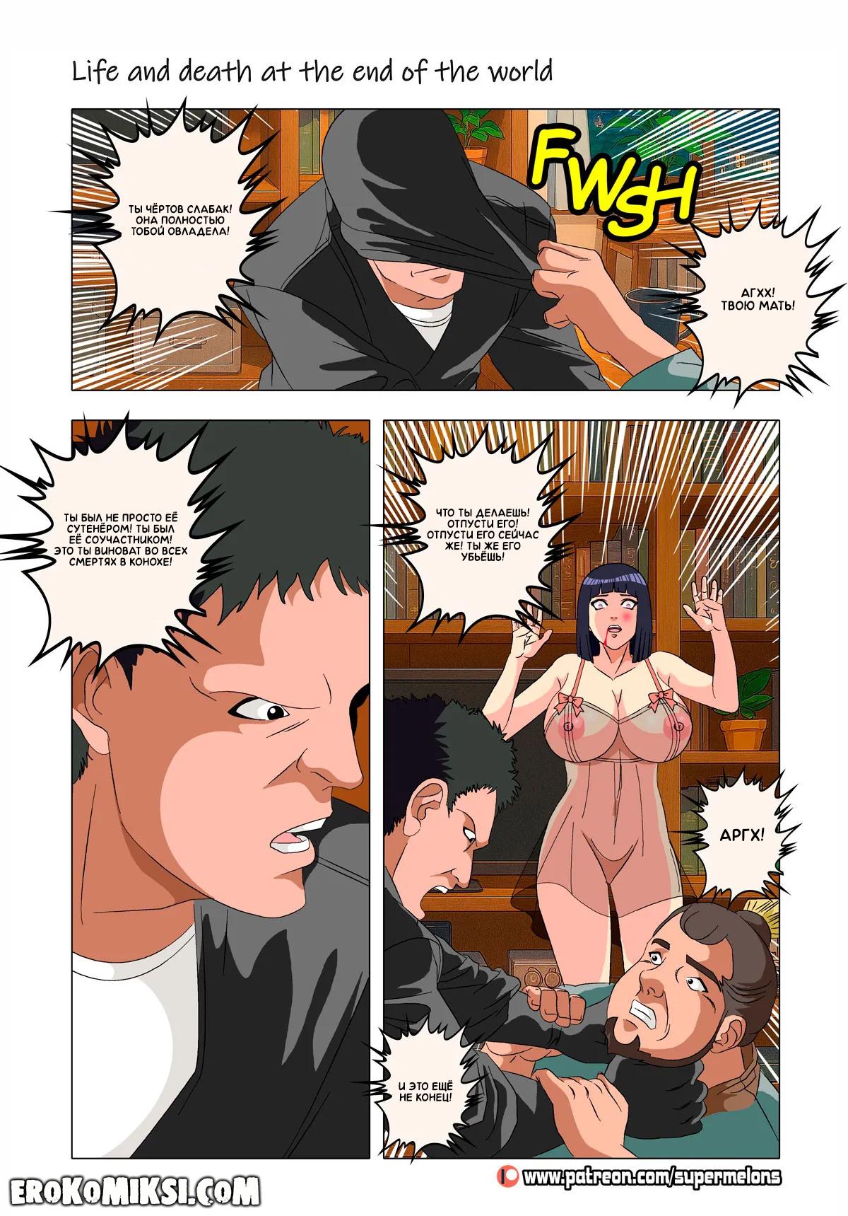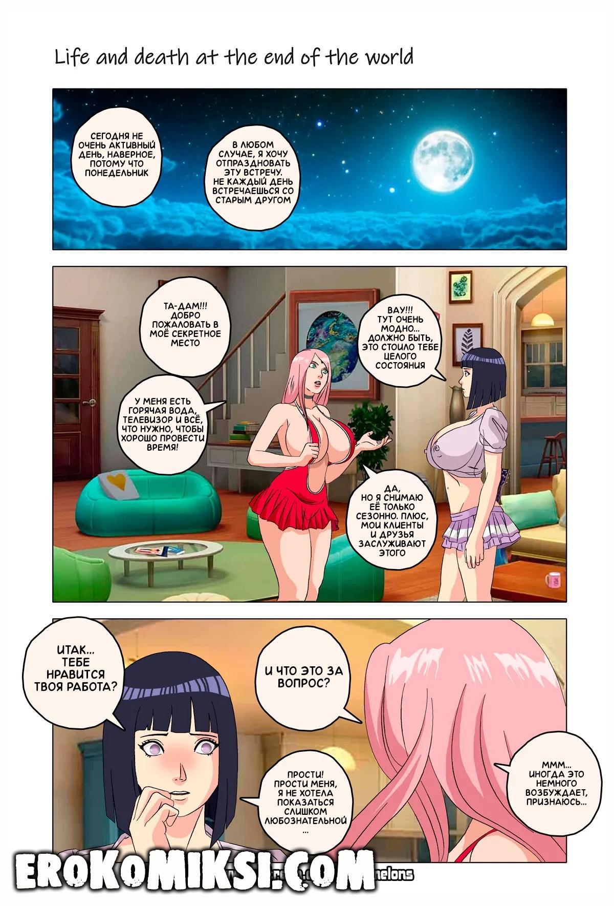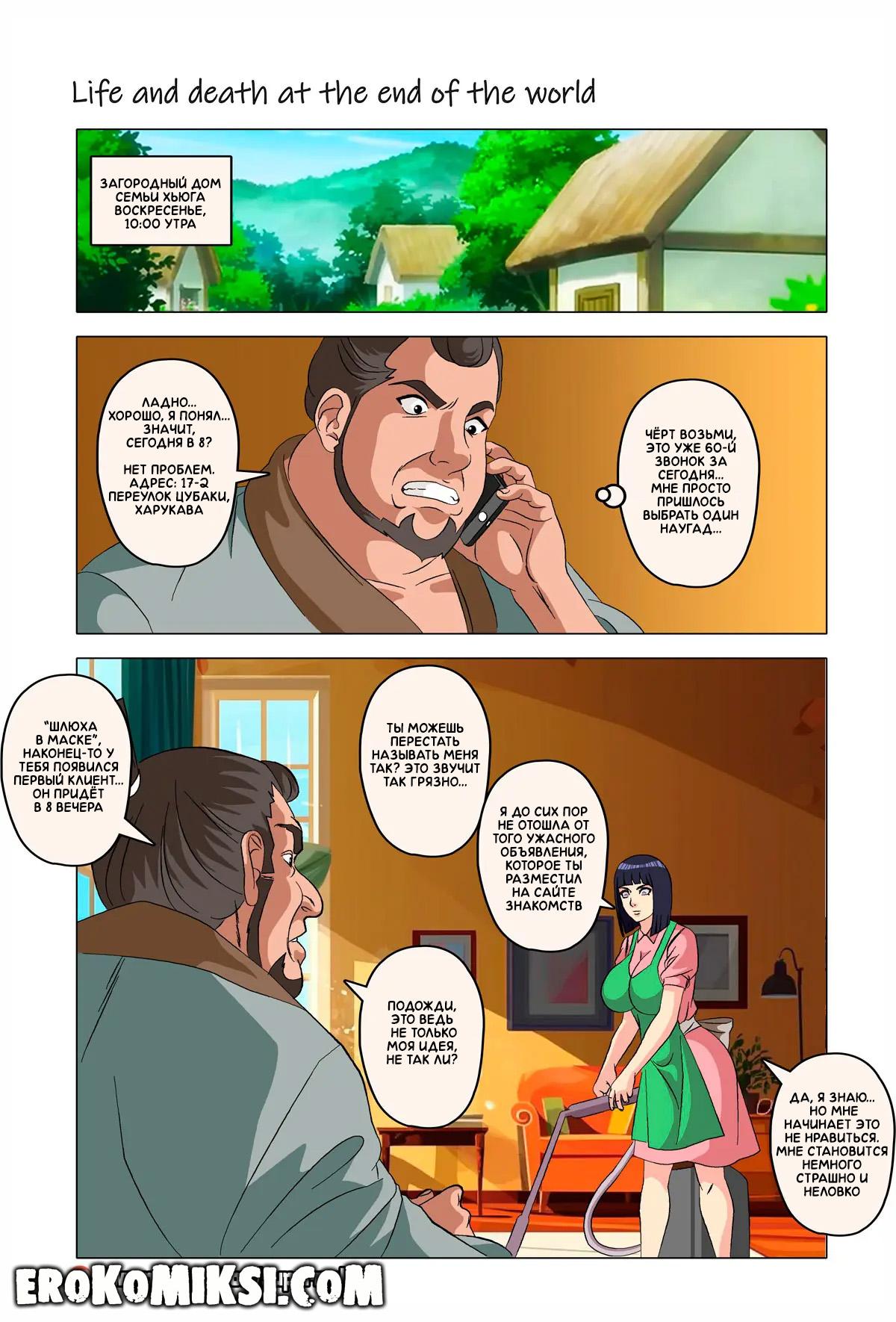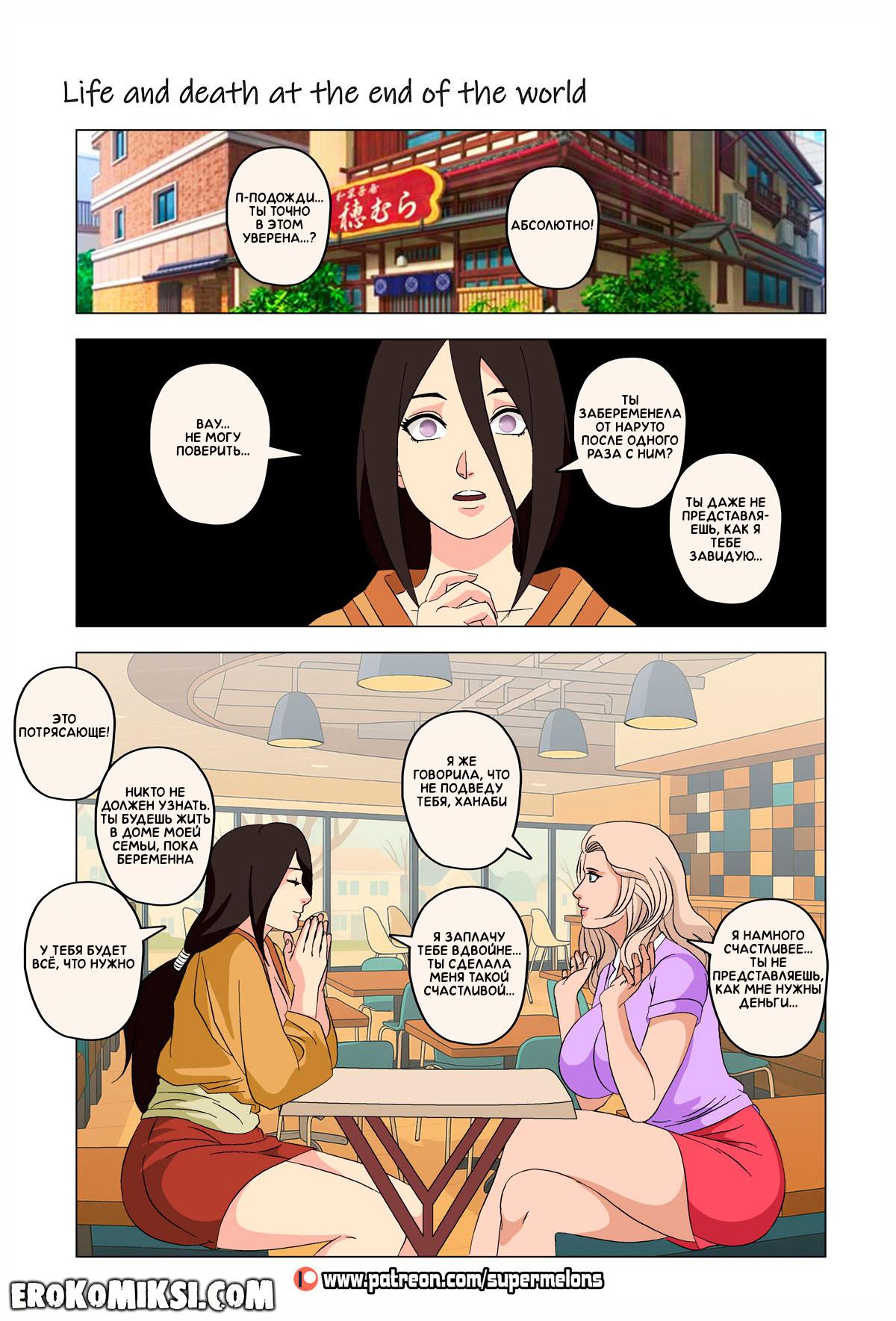 Порно комикс Наруто. Жизнь и смерть на краю света. Став шлюхой, Хината приезжает навестить своих детей и Наруто, однако, ей там совсем не рады и Наруто собирается жениться на Ханаби. Отправившись на поиски очередного мужика, Хината встречает Сакуру, которую жизнь потрепала не меньше и вынудила пойти на панель, чтобы расплатиться с долгами…