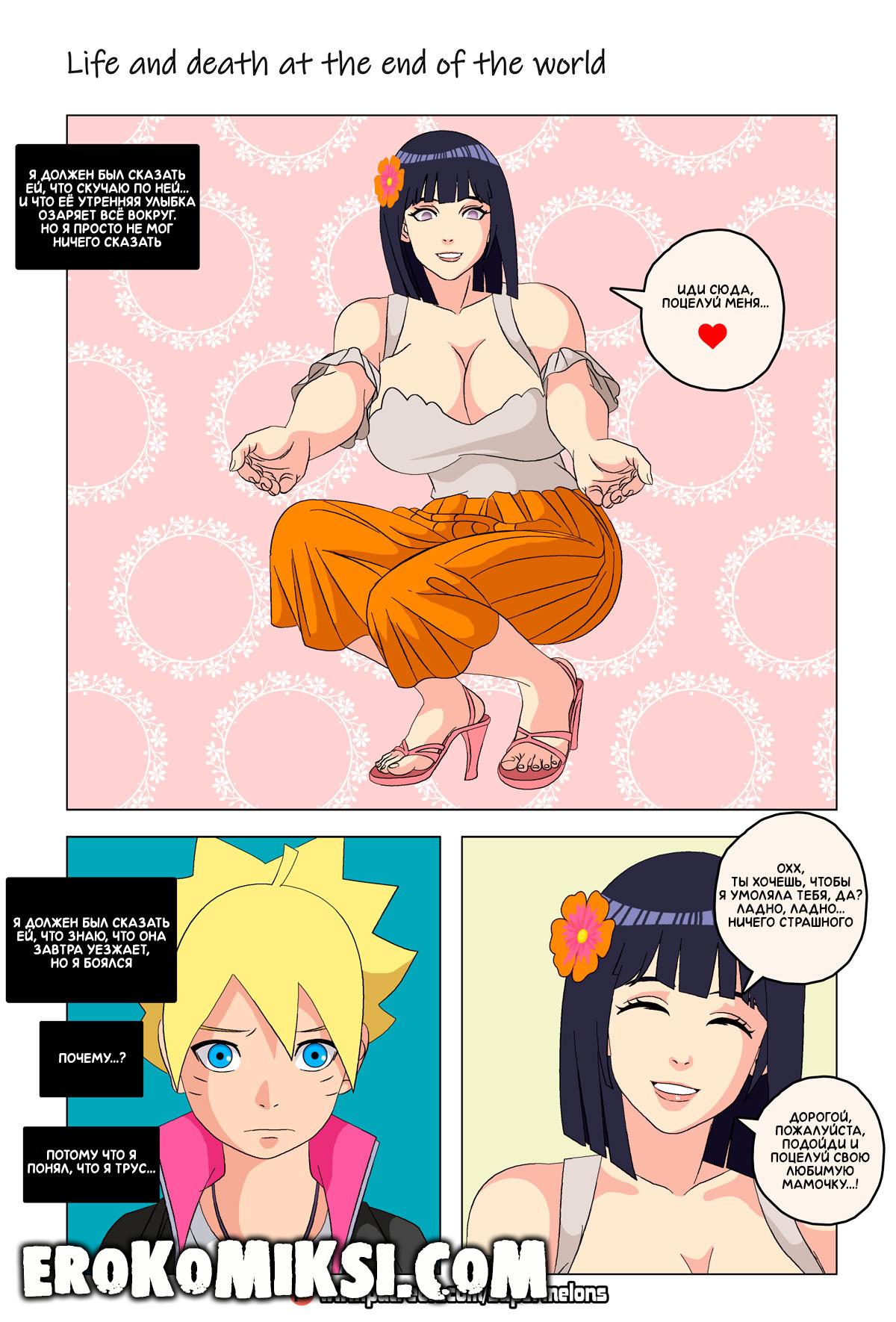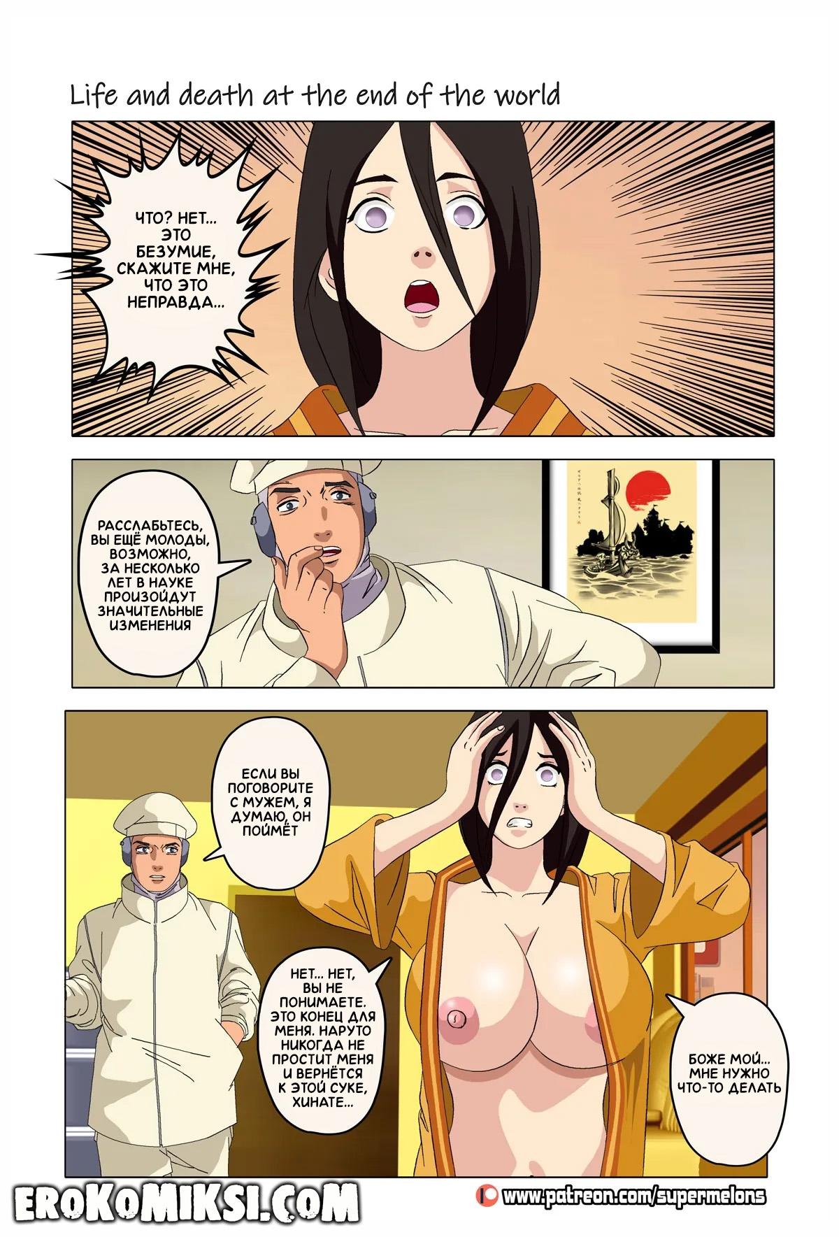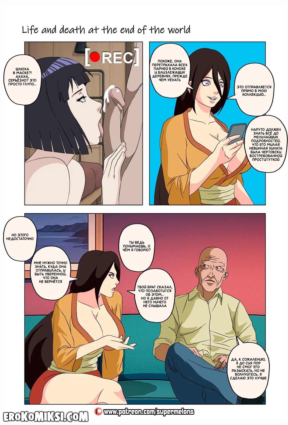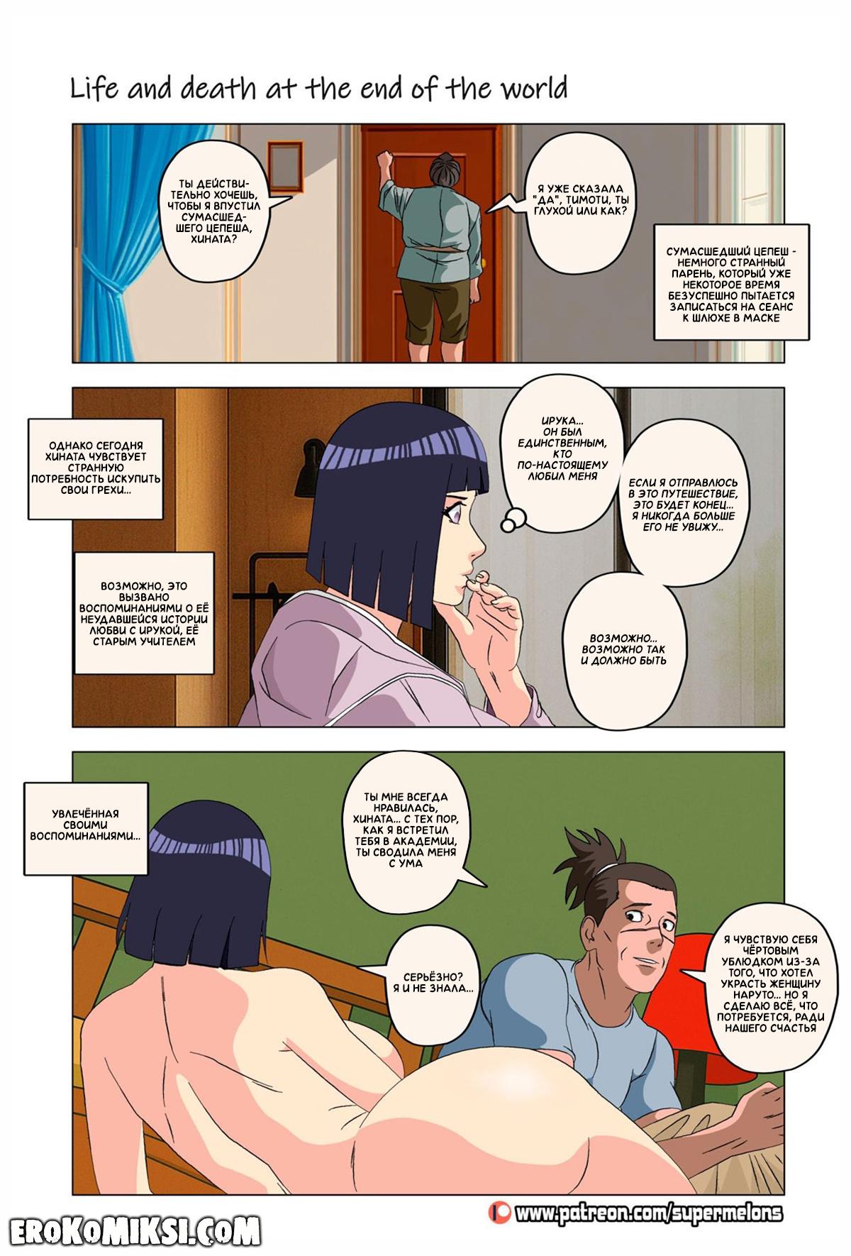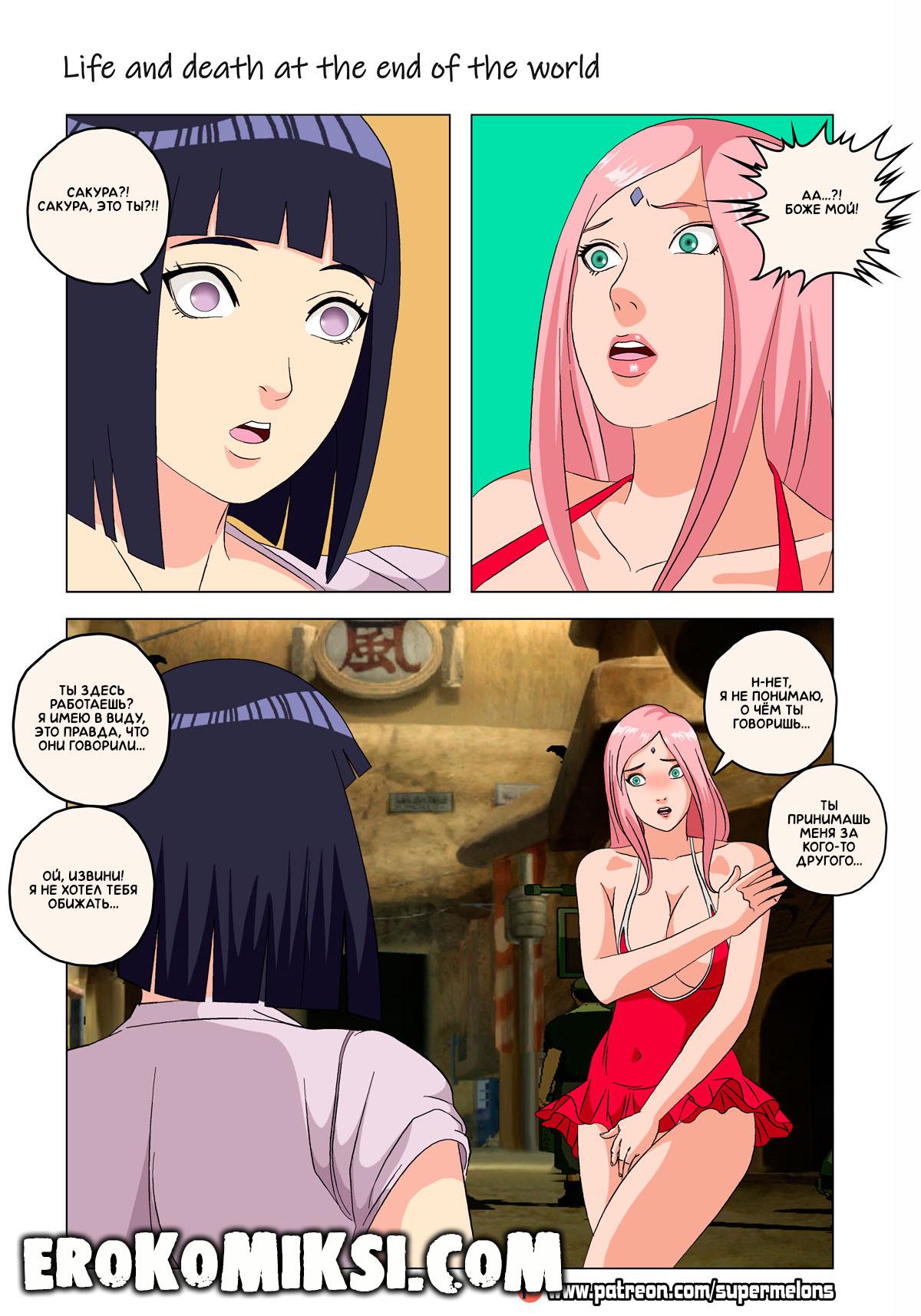Порно комикс Наруто. Жизнь и смерть на краю света. Став шлюхой, Хината приезжает навестить своих детей и Наруто, однако, ей там совсем не рады и Наруто собирается жениться на Ханаби. Отправившись на поиски очередного мужика, Хината встречает Сакуру, которую жизнь потрепала не меньше и вынудила пойти на панель, чтобы расплатиться с долгами…