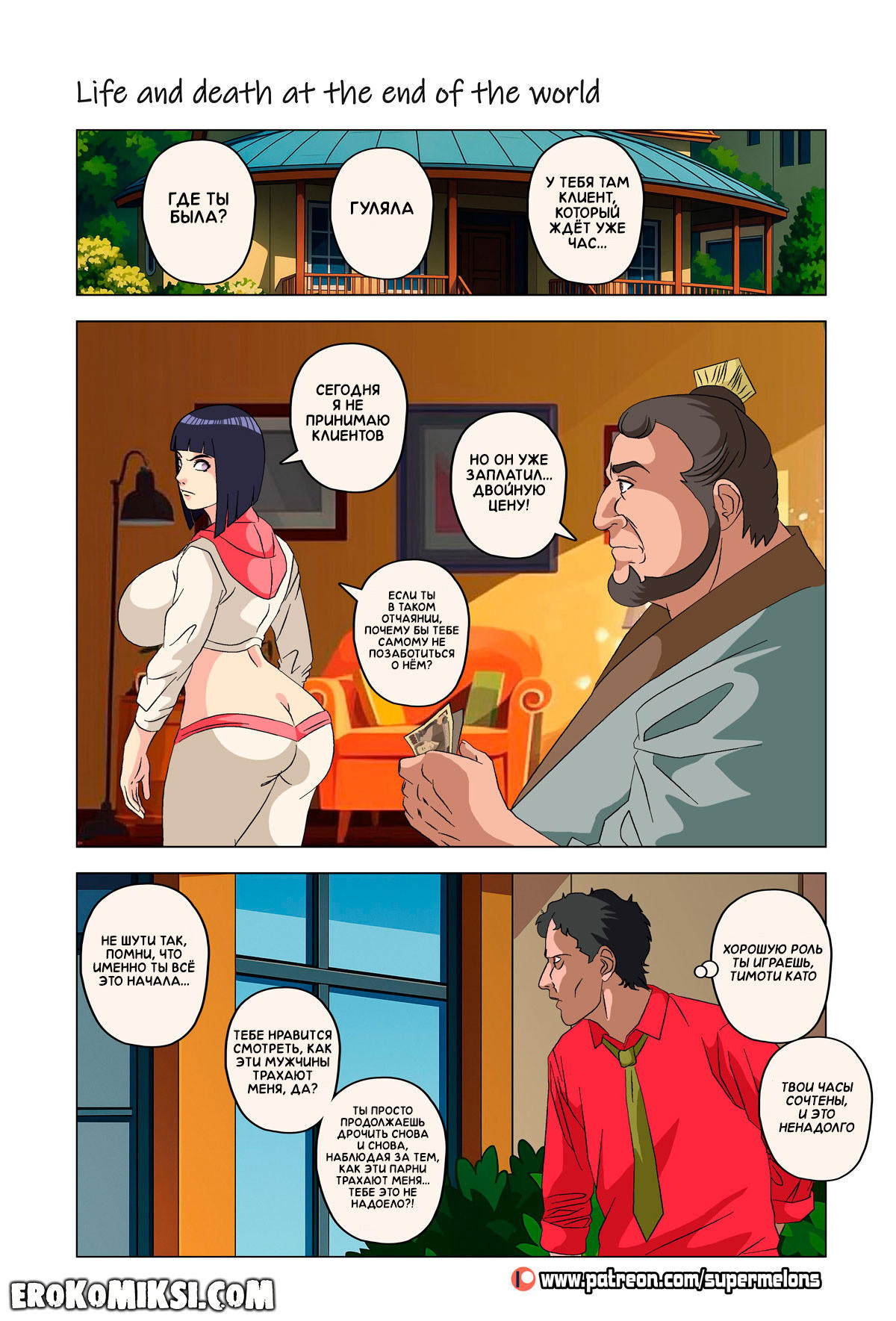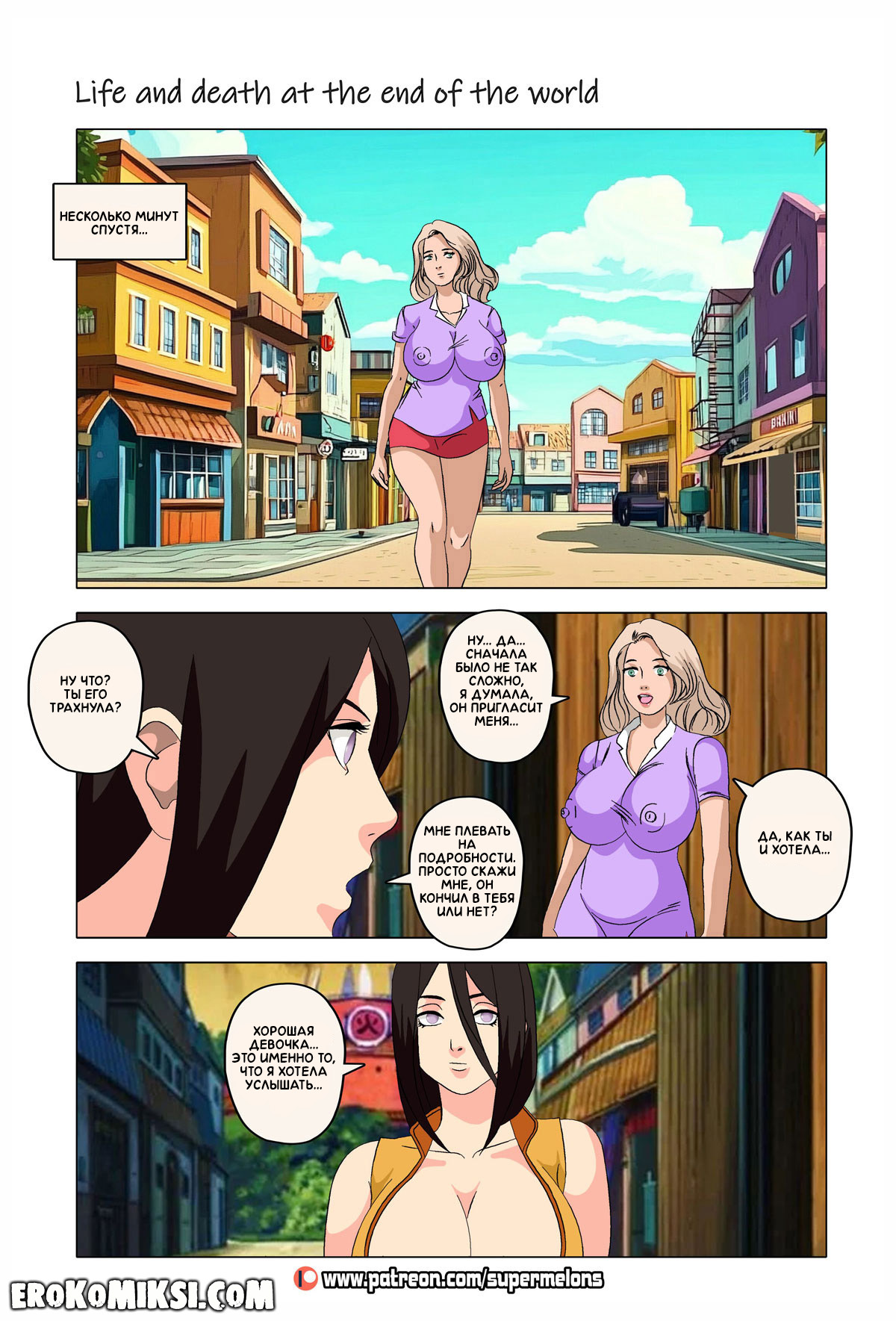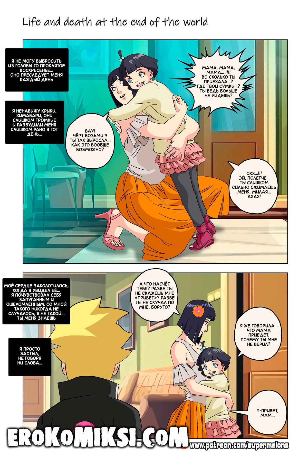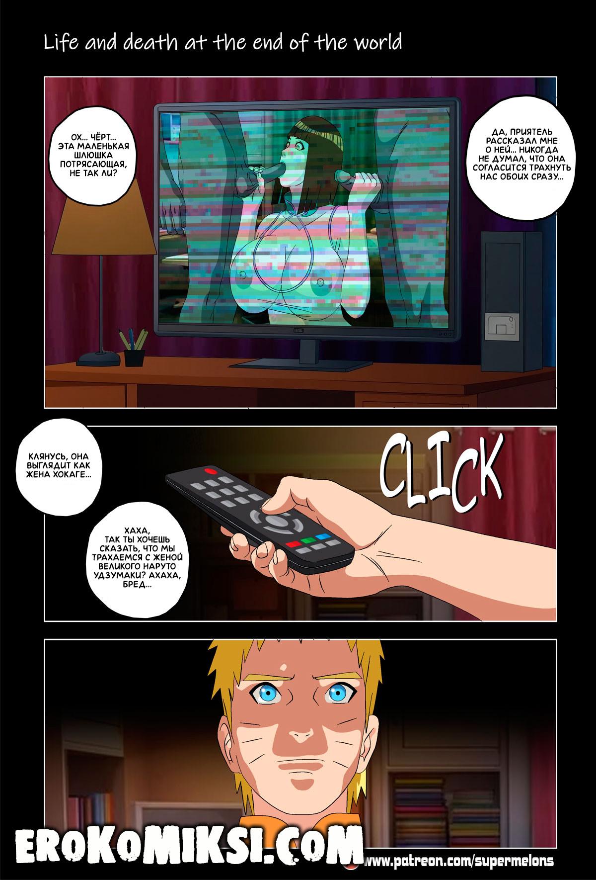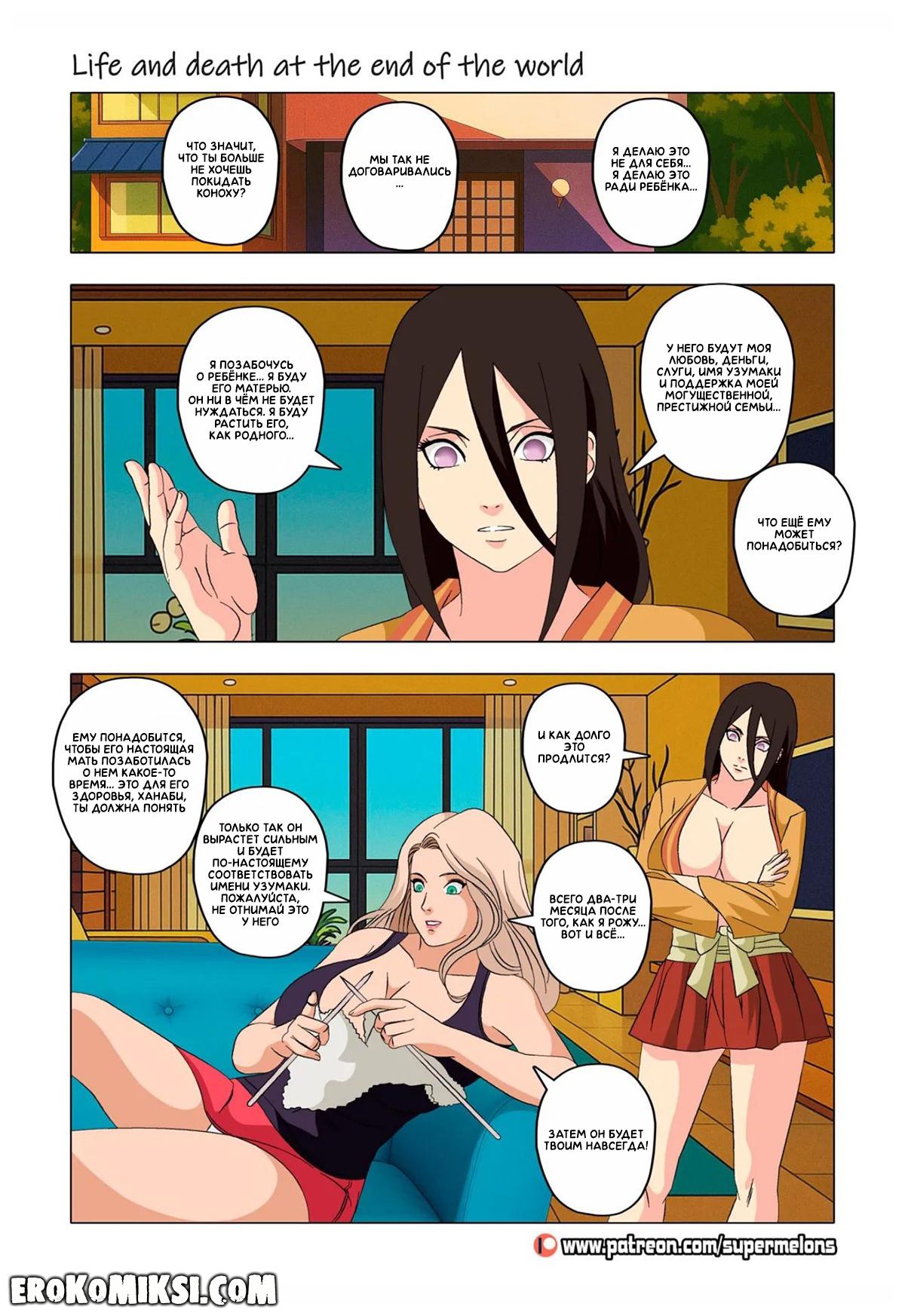 Порно комикс Наруто. Жизнь и смерть на краю света. Став шлюхой, Хината приезжает навестить своих детей и Наруто, однако, ей там совсем не рады и Наруто собирается жениться на Ханаби. Отправившись на поиски очередного мужика, Хината встречает Сакуру, которую жизнь потрепала не меньше и вынудила пойти на панель, чтобы расплатиться с долгами…