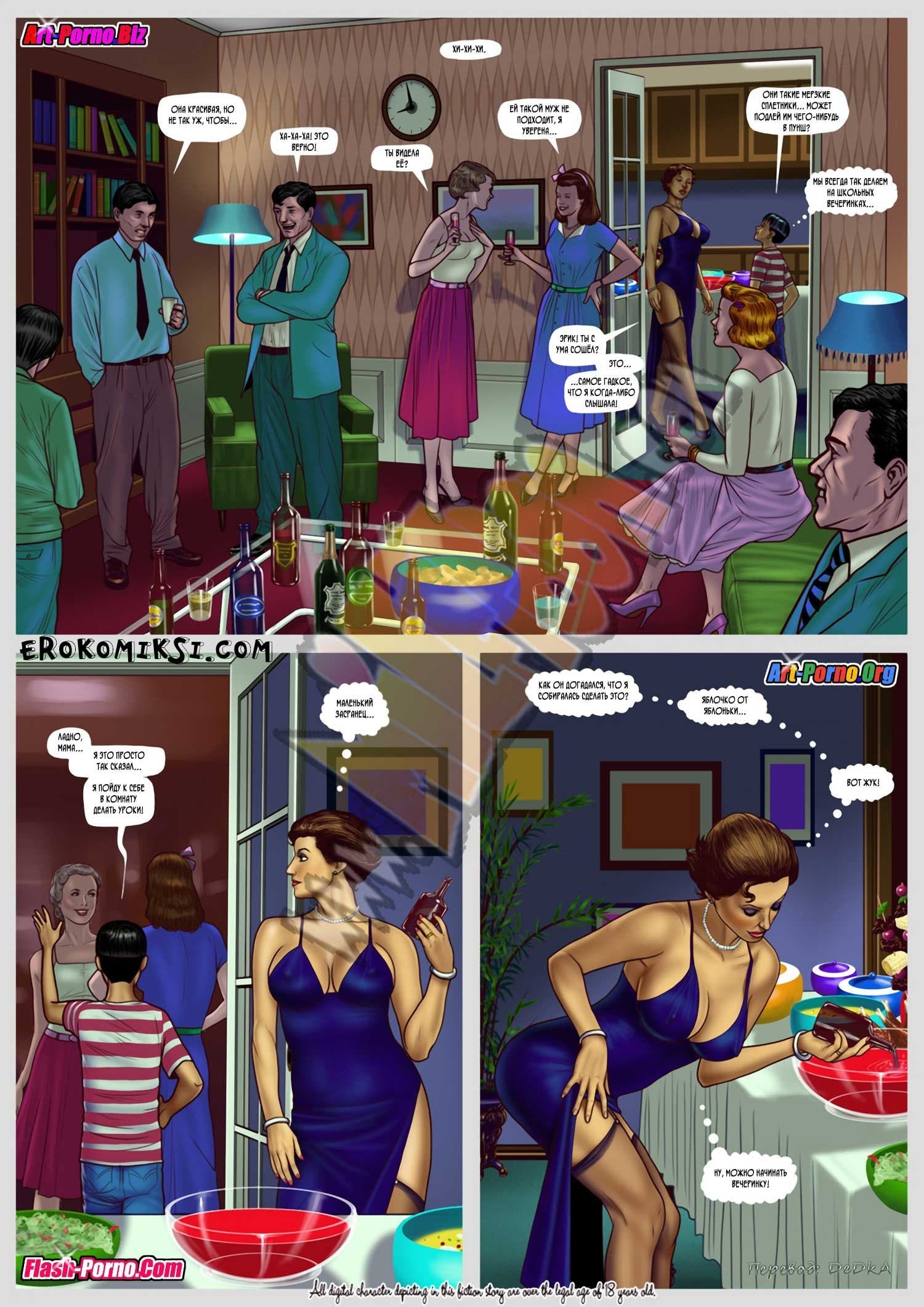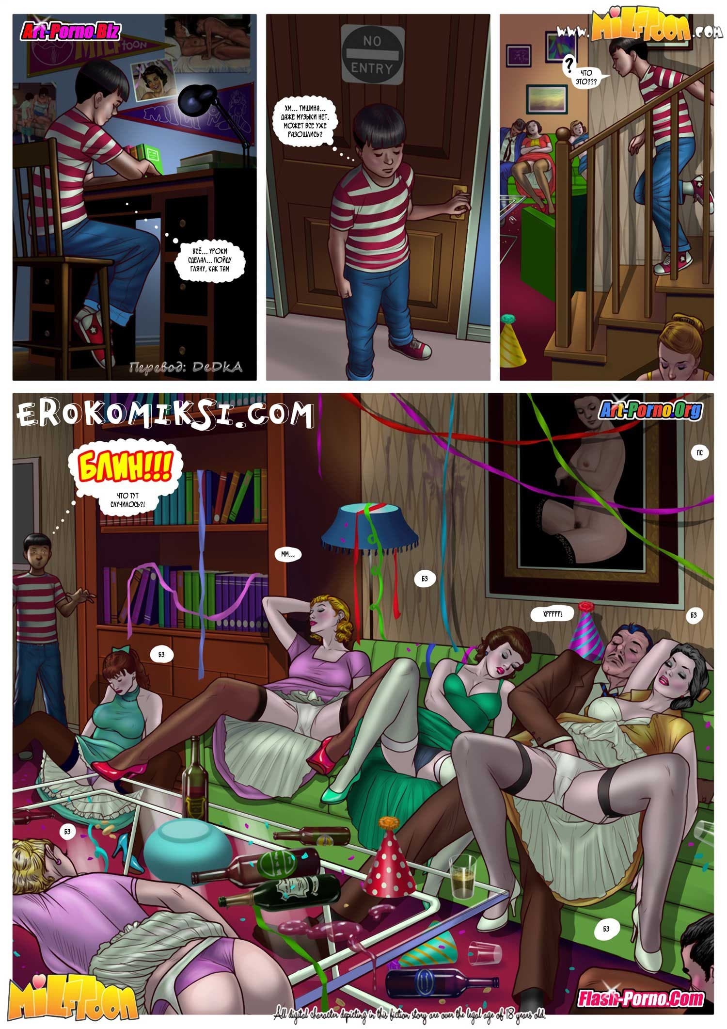 Порно комикс Наслаждайся вечеринкой расскажет о том, как один набожный католик, возможно, бывший алкоголик, переехал вместе со своей женушкой в свой родной городок. На день рождения своей зрелой супруги он пригласил друзей вместе с их женами. Вскоре на вечеринке вся компания через полчаса так ужралась, что сын хозяина дома, спустившись в гостиную, увидел там множество пьяных в хлам милф, мирно спящих, причем с голыми письками. Парень понял, что теперь самое время присоединиться к сексуальной вечеринке!!!