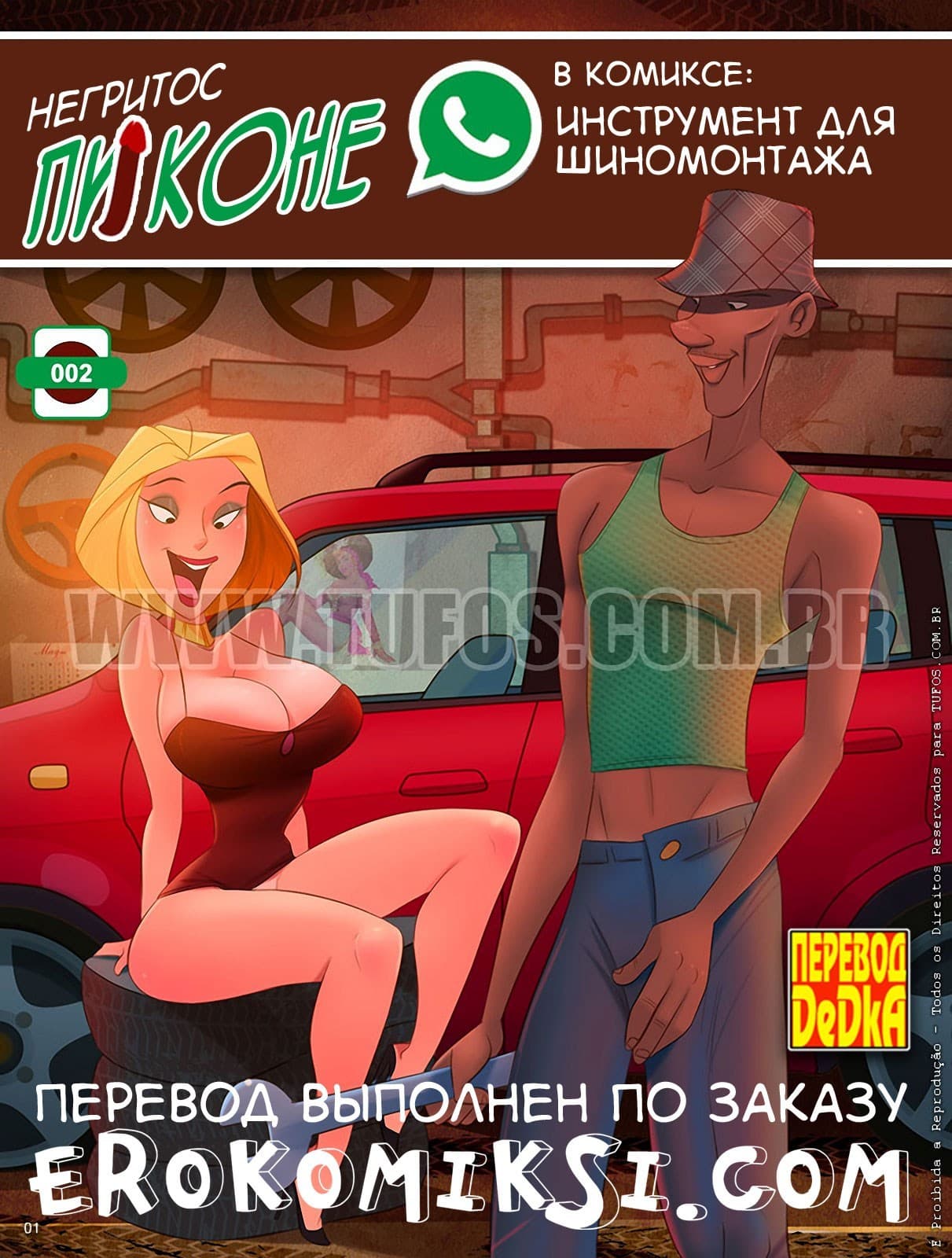Секс комикс Негритос пиконе во 2 части расскажет о том, как Блондинка проторчала в магазине полдня и скупила полмагазина. А когда подошла с покупками к машине, увидела, что колесо спустило. На её счастье, рядом был шиномонтаж, где обслуживал и машины и их хозяек негритос Пиконе. Когда блондинка подъехала к станции шиномонтажа, она даже и представить себе не могла, как ей повезло…