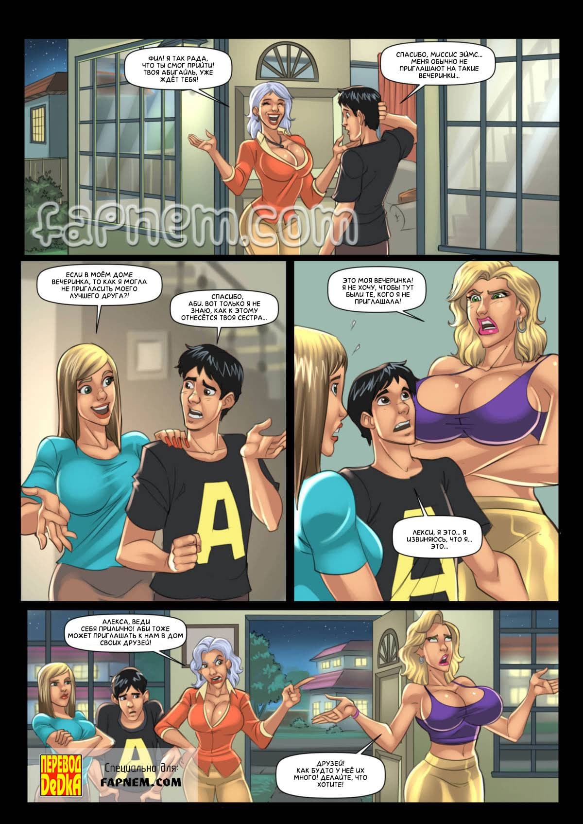 Порно комикс Необычная вечеринка поведает о том, как девушка Лекси и её сестра захотели устроить вечеринку. Для этого они пригласили в свой дом друзей, среди которых не все были счастливы видеть друг друга. Но, вдруг в помещение проник какой-то газ, вдохнув который женщины стали чувствовать, что их и без того аппетитные тела стали сильно увеличиваться в размерах. Теперь необычная вечеринка приняла совсем невообразимый сексуальный оборот.