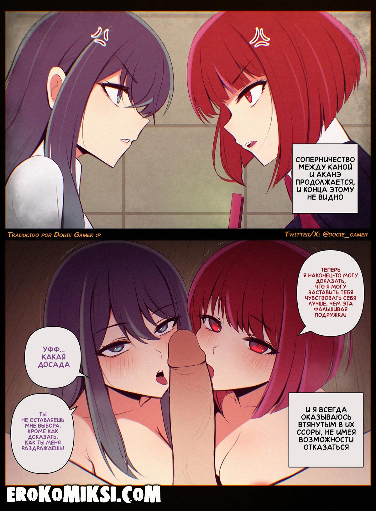 Порно комикс Непримиримые соперницы. Кана и Аканэ постоянно враждуют между собой за внимание Аквы. Они решают прийти к нему и показать, кто из них больше его любит и кто может доставить ему удовольствие. Сначала, они отсасывают ему член, а затем, подставляют свои горячие киски, чтобы парень оттрахал их и выбрал, кто из них лучше…