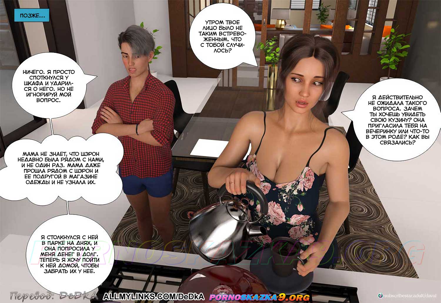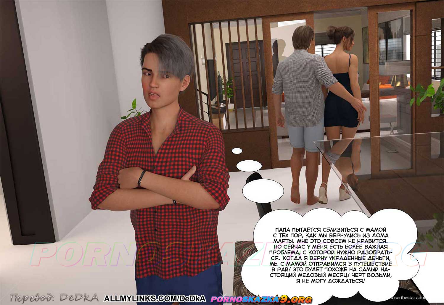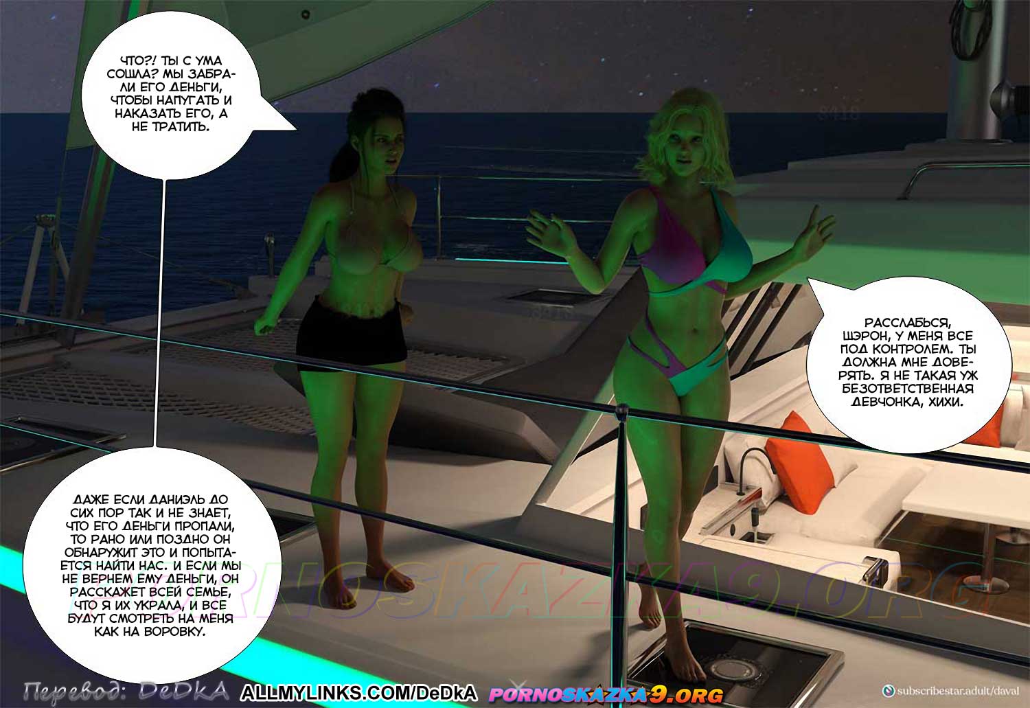Порно комикс Непристойные желания мамаш. Часть 12. Семейка вернулась домой после выходных проведенных в гостях. Даниэль и Алекс вернулись не с пустыми руками. Алекс привез с собой таблетку, которая должна помочь ему быть на высоте в постели с Ланой, а Даниэль привез с собой таблетку снотворного, которую он решил бросить в кофе Алекса, чтобы он уснул. Чья таблетка окажется круче?