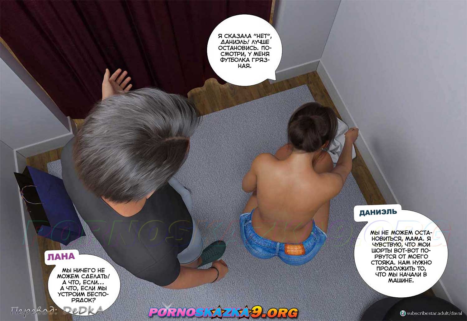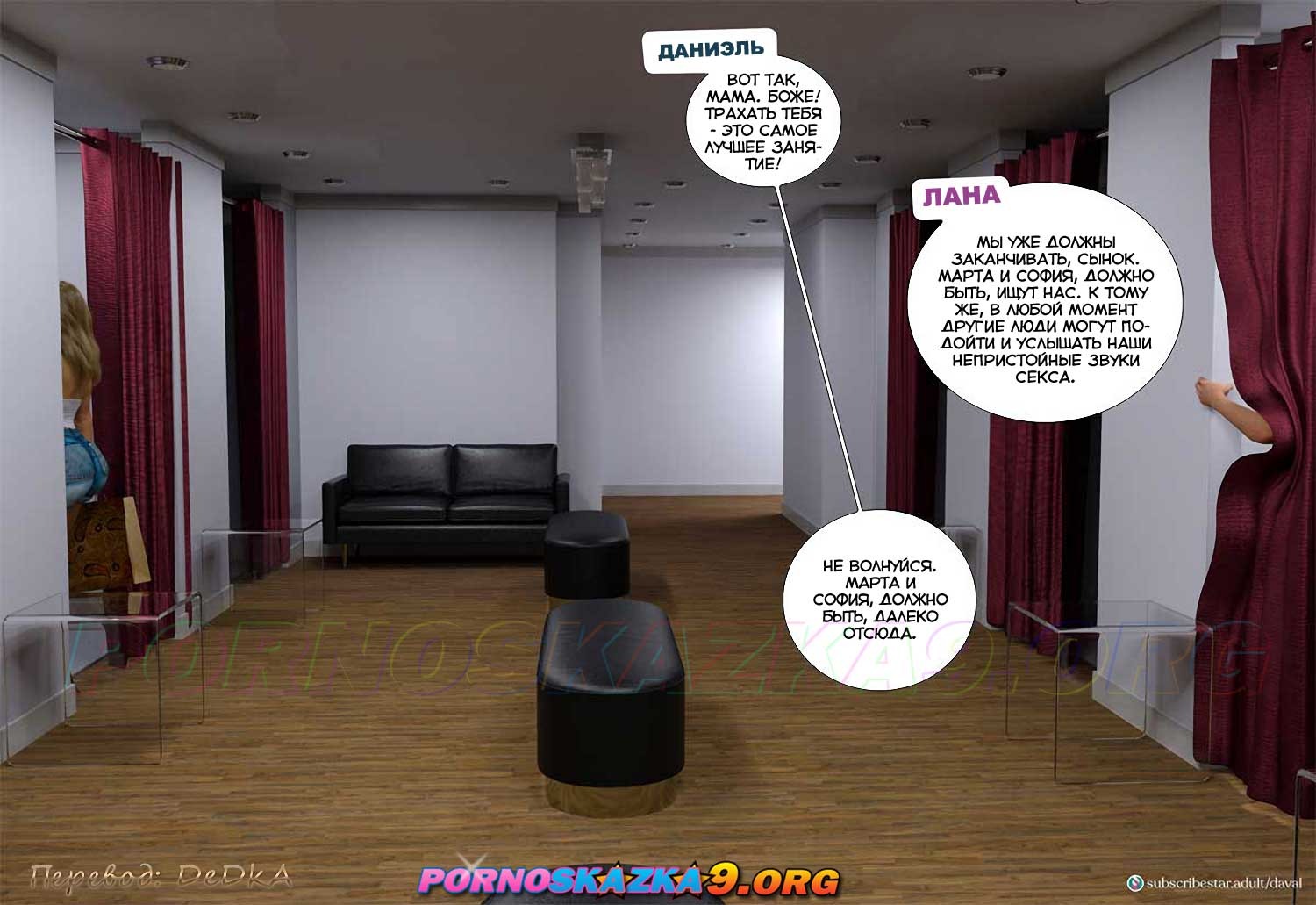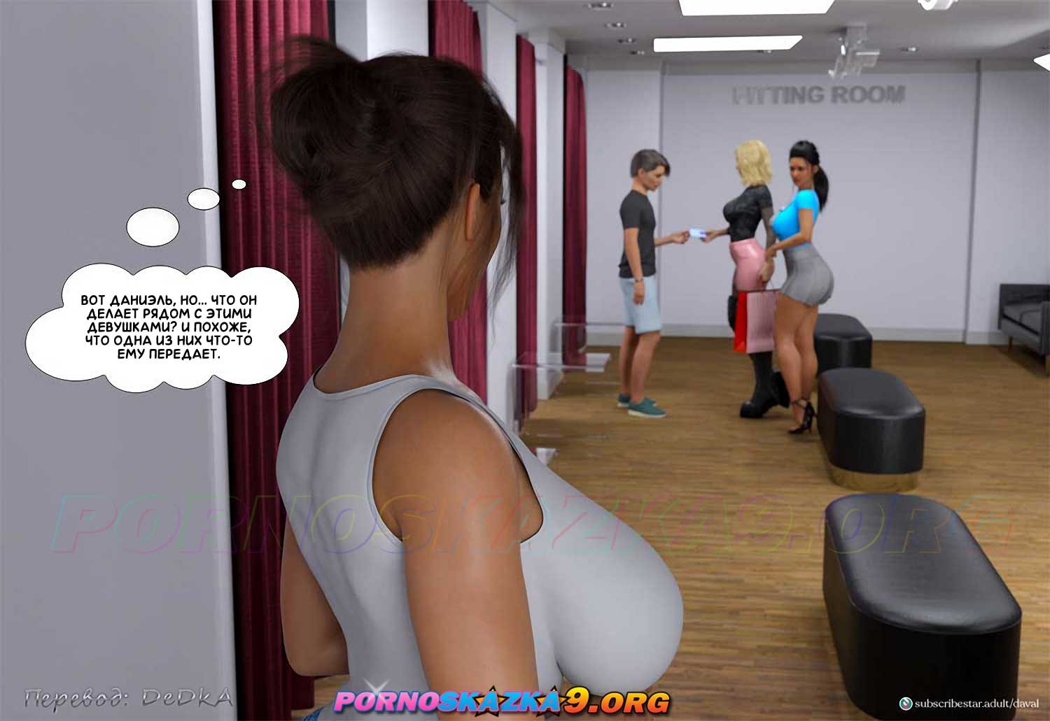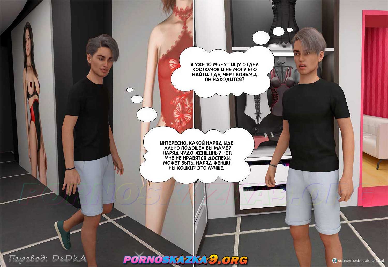 Порно комикс Непристойные желания мамаш. Часть 9. София продолжает попытки заманить Даниэля куда-нибудь, где они останутся наедине, и соблазнить его, пока что ей не очень везет в этом. Между тем Даниэль случайно встречается в супермаркете со своей сексуальной кузиной Шэрон и ее не менее сексуальной подругой блондинкой Сарой…