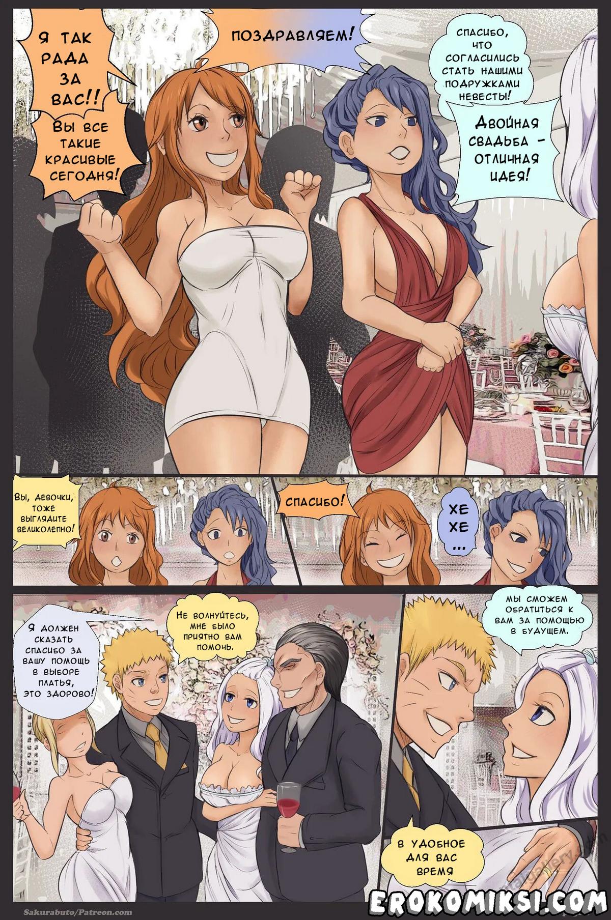 Порно комикс Неверная свадьба. Во время свадебной церемонии две подруги невесты сумели возбудить жениха подруги. Сучки начали с глубокого минета, а потом насладились членом парня по полной.