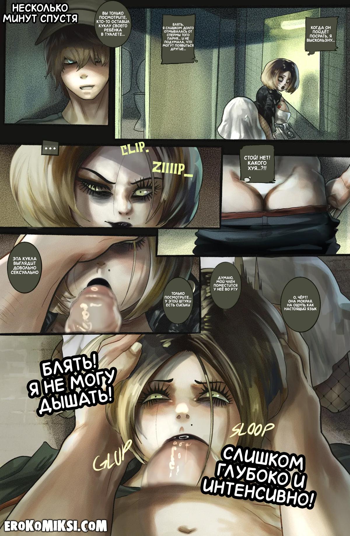 Порно комикс Невеста Чаки. Тиффани и дальнобойщик. Кто-то оставил куклу Тиффани в туалете придорожного кафе и её нашёл дальнобойщик, который устал после долгой дороги и решил немного расслабиться. Он как следует оттрахал куклу и в киску, и в задницу, и наполнил её до краёв своей горячей спермой…