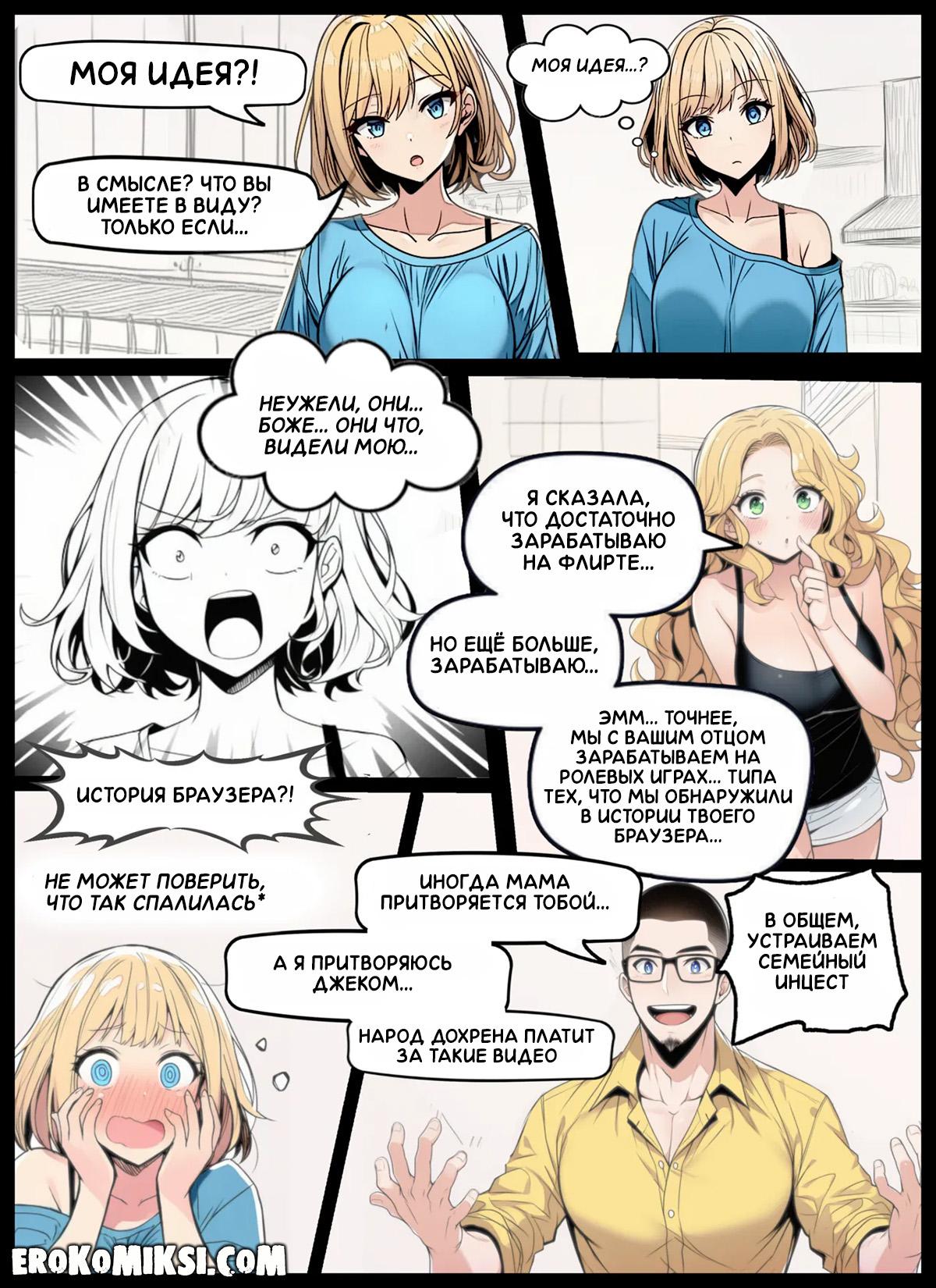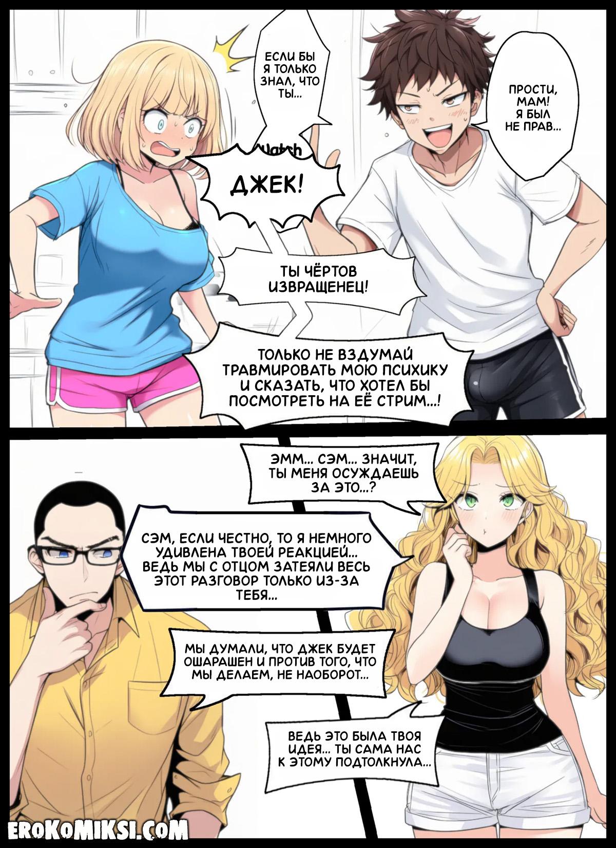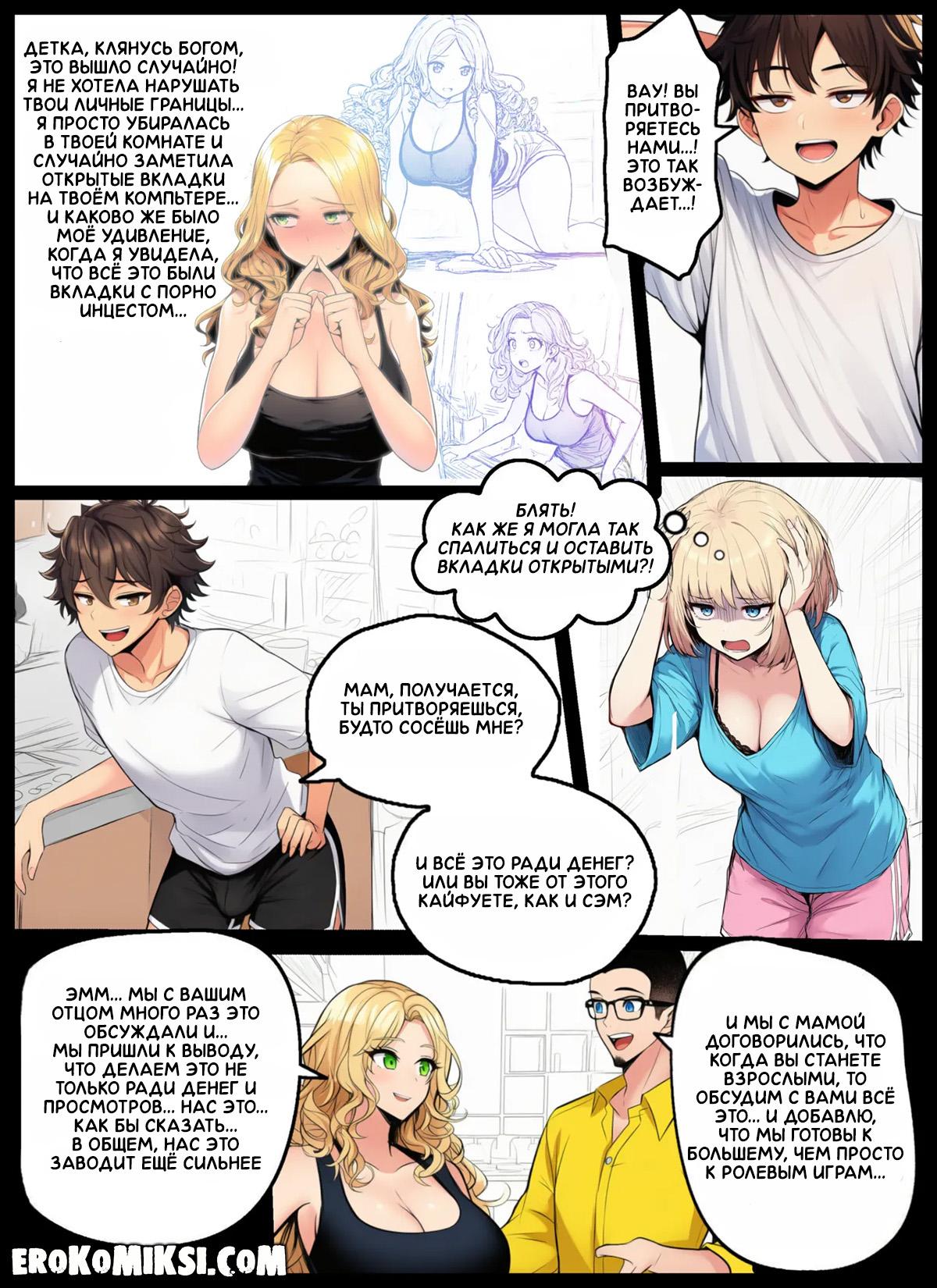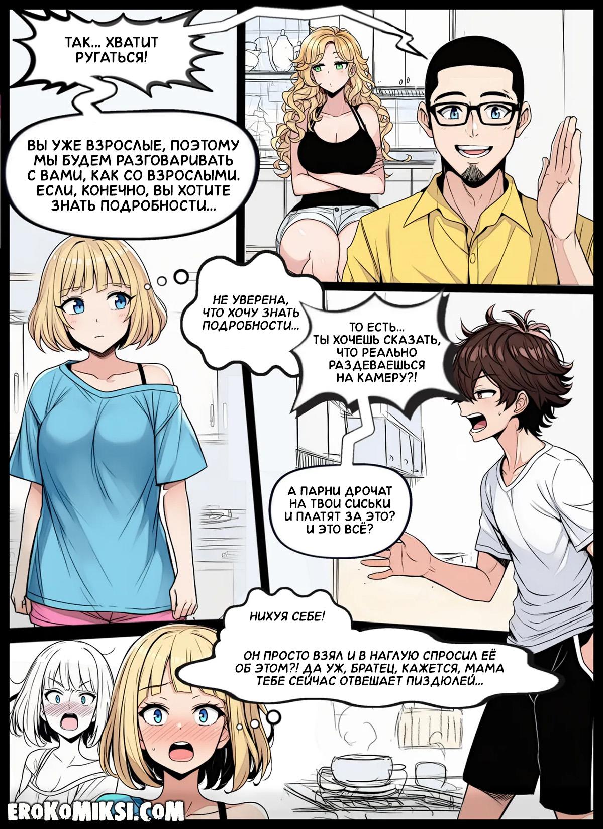 Порно комикс Никаких больше секретов. Родители рассказывают Сэм и её брату Джеку, что мать работает веб-кам моделью, и что они с отцом неплохо на этом зарабатывают. Но у них есть желание привлечь и своих детишек к этому делу, чтобы зарабатывать ещё больше…