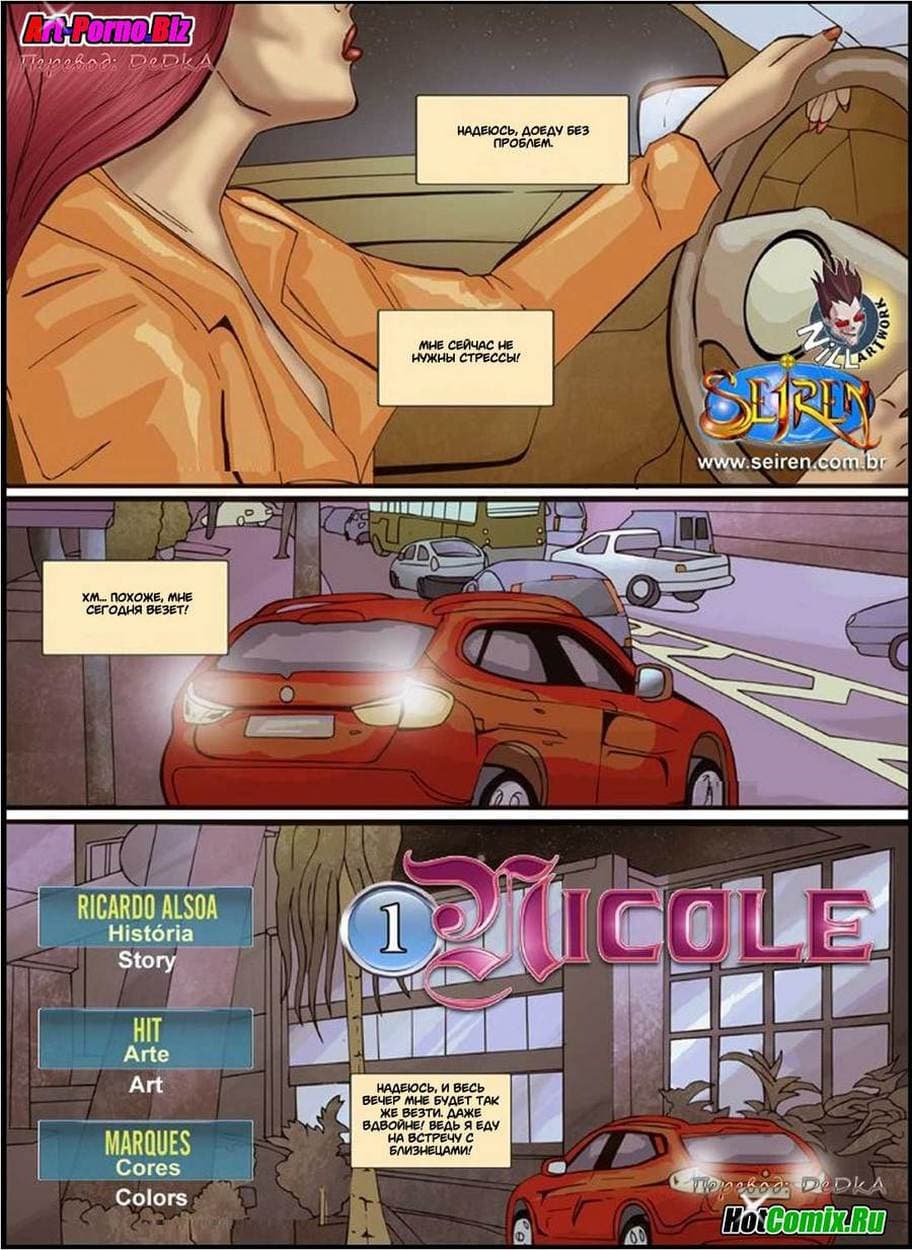 Тем, кто любит откровенные эротические комиксы про проституток, предлагаем ознакомиться с историей мисс Николь. Эта девушка является представительницей самой древней профессии, и сейчас ехала в отель обслужить двух близнецов. Она была вся в предвкушении новых ощущений, тем более она занималась сексом не за деньги, а ради удовольствия. И вот парни пришли в номер, но они хотят не только трахнуть проститутку, но и снять порно фильм с ее участием.