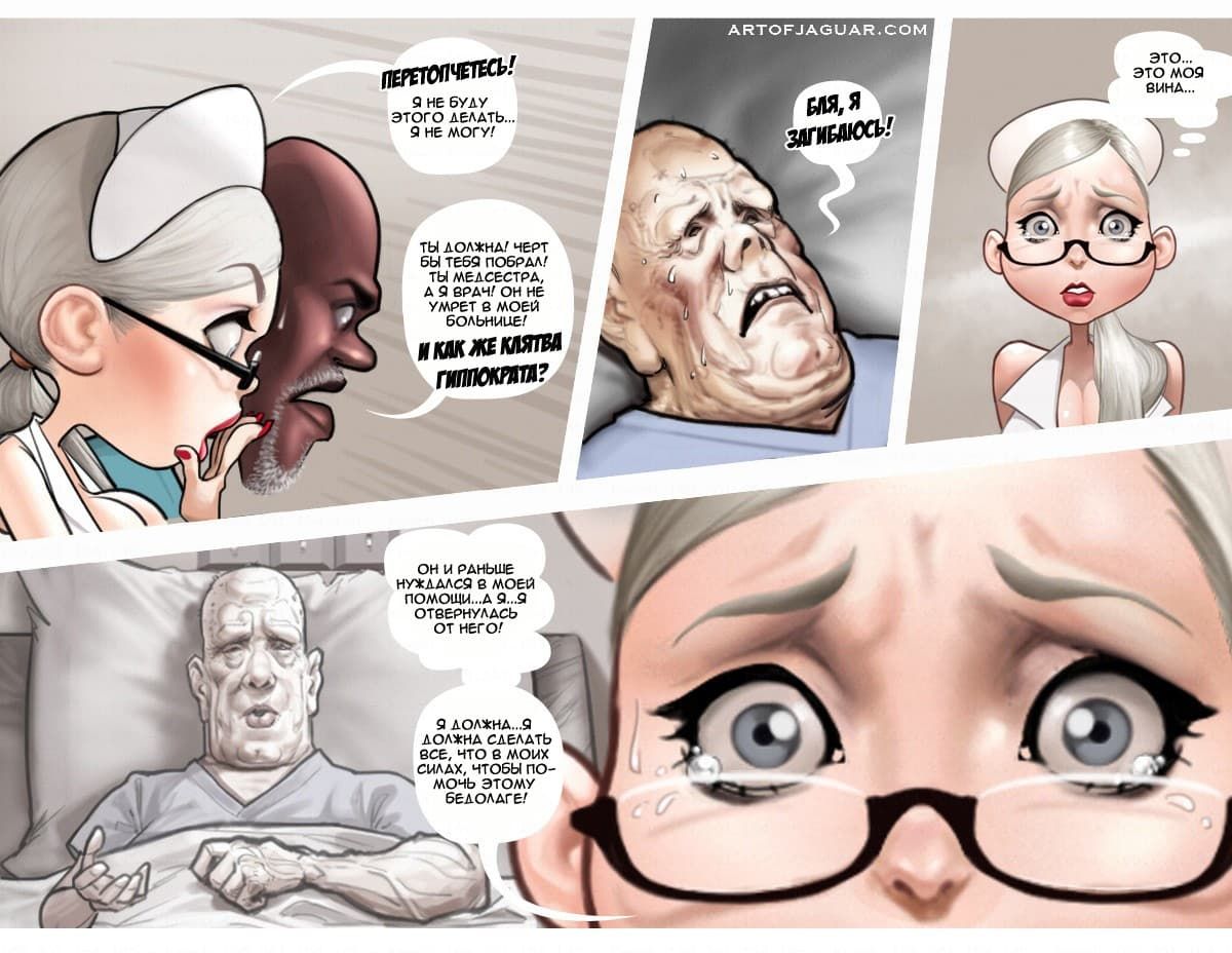 Красочные порно картинки развратного комикса о сексуальной медсестре, которая с помощью рта и анального отверстия спасала подопечных людей от смерти. Любому больному такая терапия пришлась бы по душе…