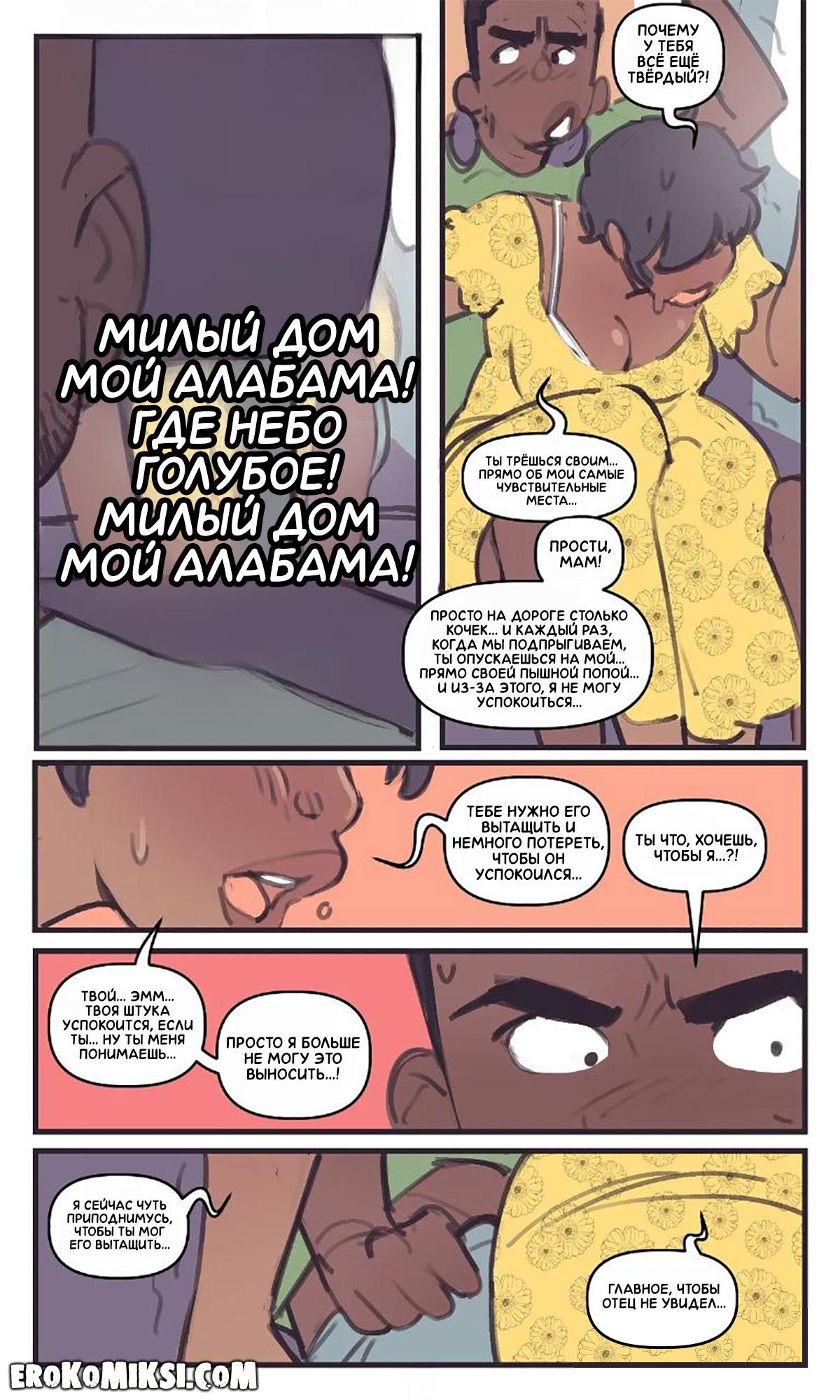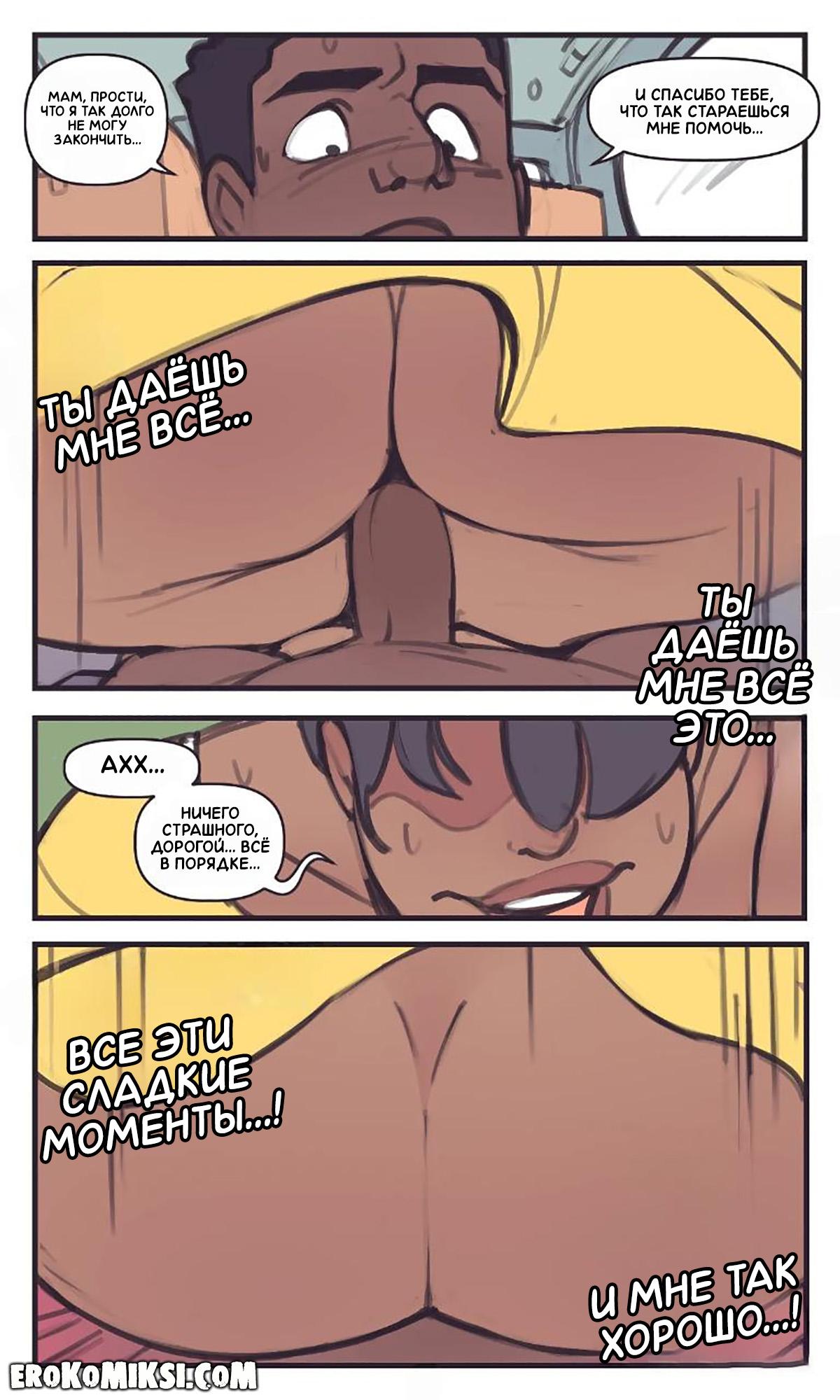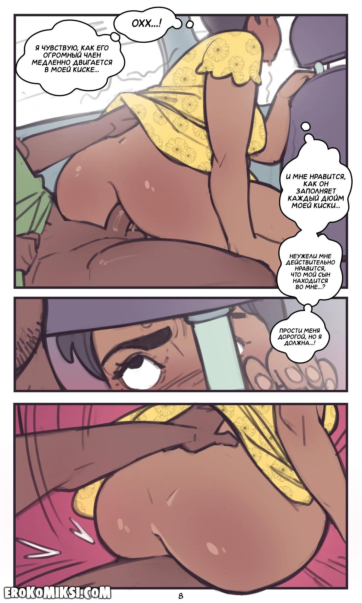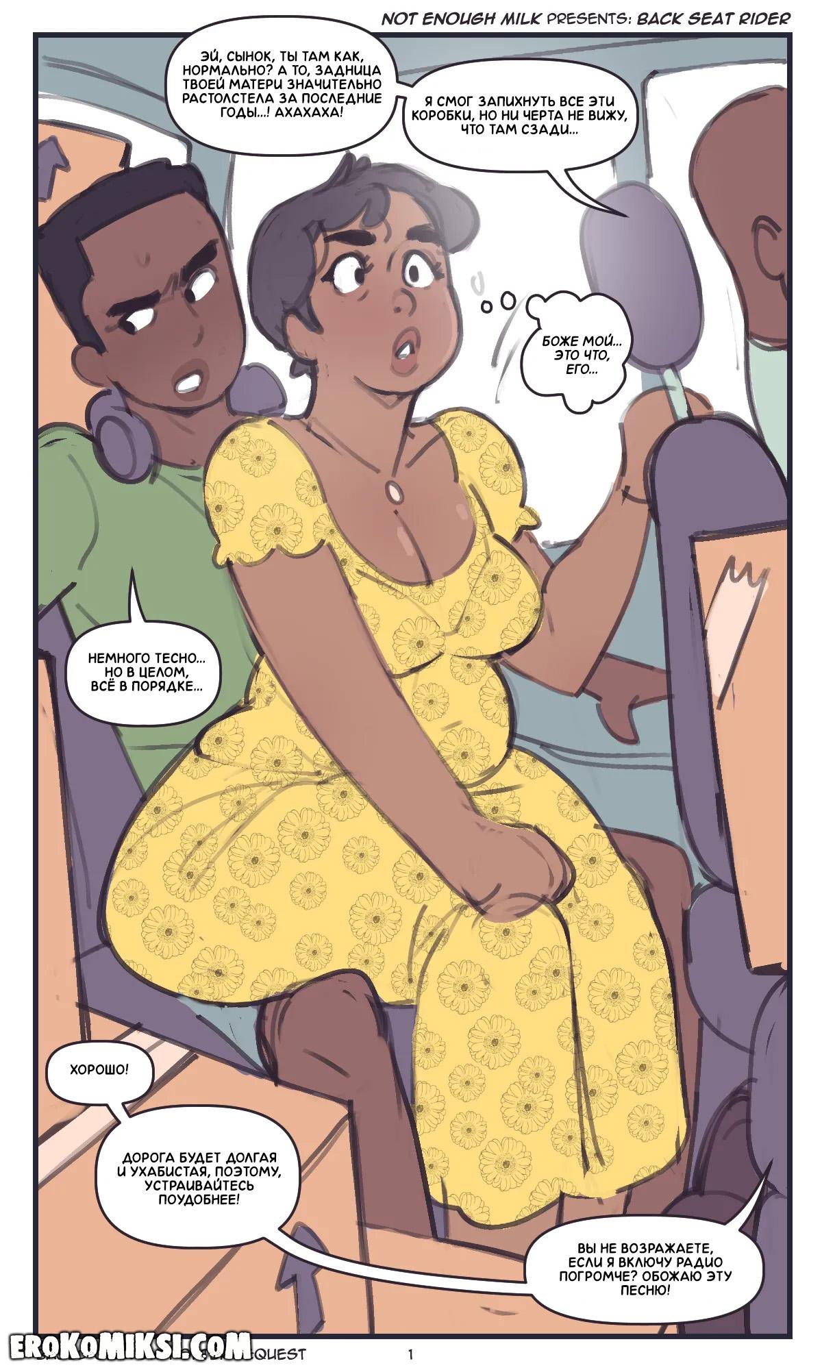 Порно комикс Not Enough Milk. На заднем сиденье. Во время поездки на авто, мамашка сидела на коленях у сына, так как машина была под завязку забита, и она почувствовала, как у сыночка встал член, и чтобы им обоим было удобнее, она сняла трусики и оседлала огромный член сынули…