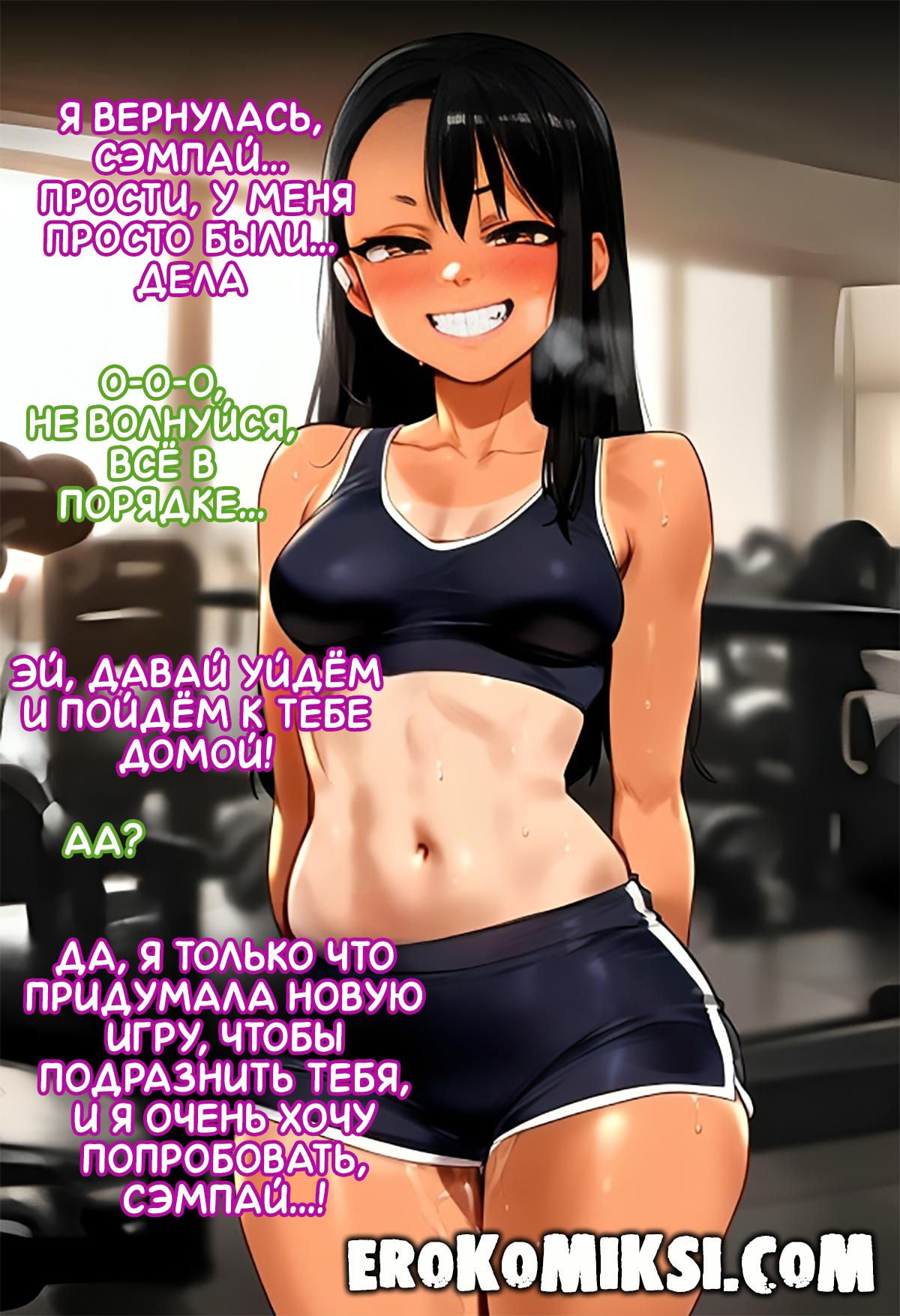 Порно комикс Новая тренировка Нагаторо. После тренировки и секса в парке, озабоченная Нагаторо отправилась в душевую, туда же отправился и сэмпай. В раздевалке Нагаторо встретила знакомого, который предложил ей новый способ тренировки, тем временем, сэмпай спрятался за шкафчиками, чтобы подглядеть за ними. В итоге, тренировка заключалась в том, чтобы как следует потрахаться и закончить всё кремпаем в киску и данный вид тренировки пришёлся по душе Нагаторо…