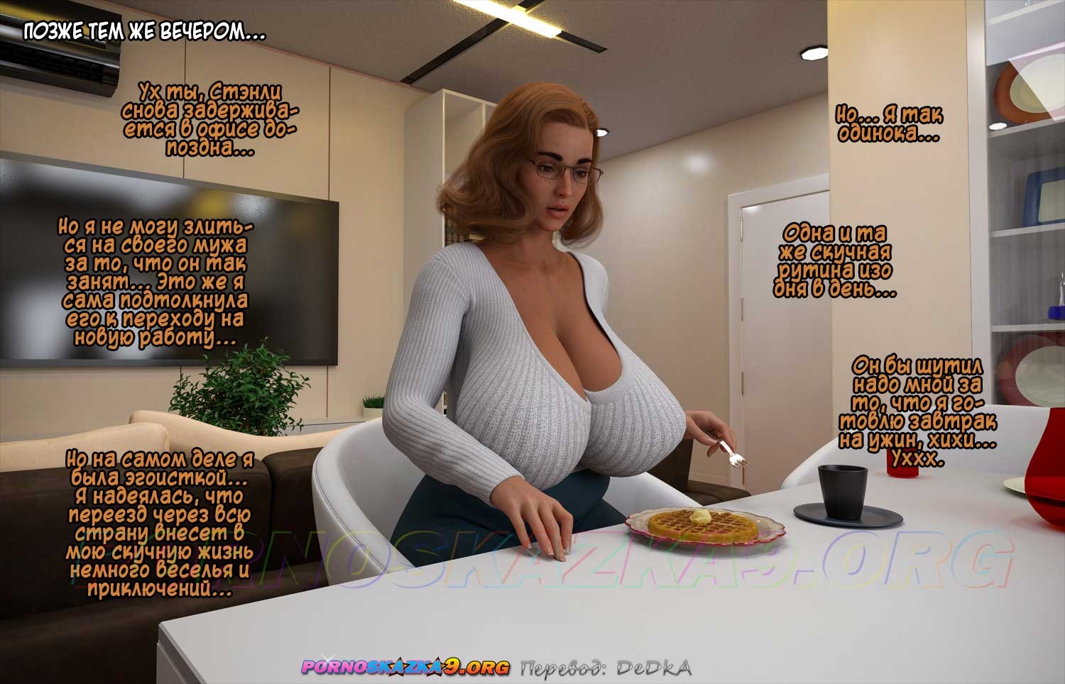 Порно комикс Новое начало. Часть 1. Джина Грин уговорила мужа сменить работу, поэтому им пришлось переехать в другой город. Взрослым людям в новом городе сложно быстро завести друзей, поэтому Джине первое время на новом месте было немного скучно, но в один прекрасный день она познакомилась с Заком. После этого знакомства ее жизнь засияла новыми красками…