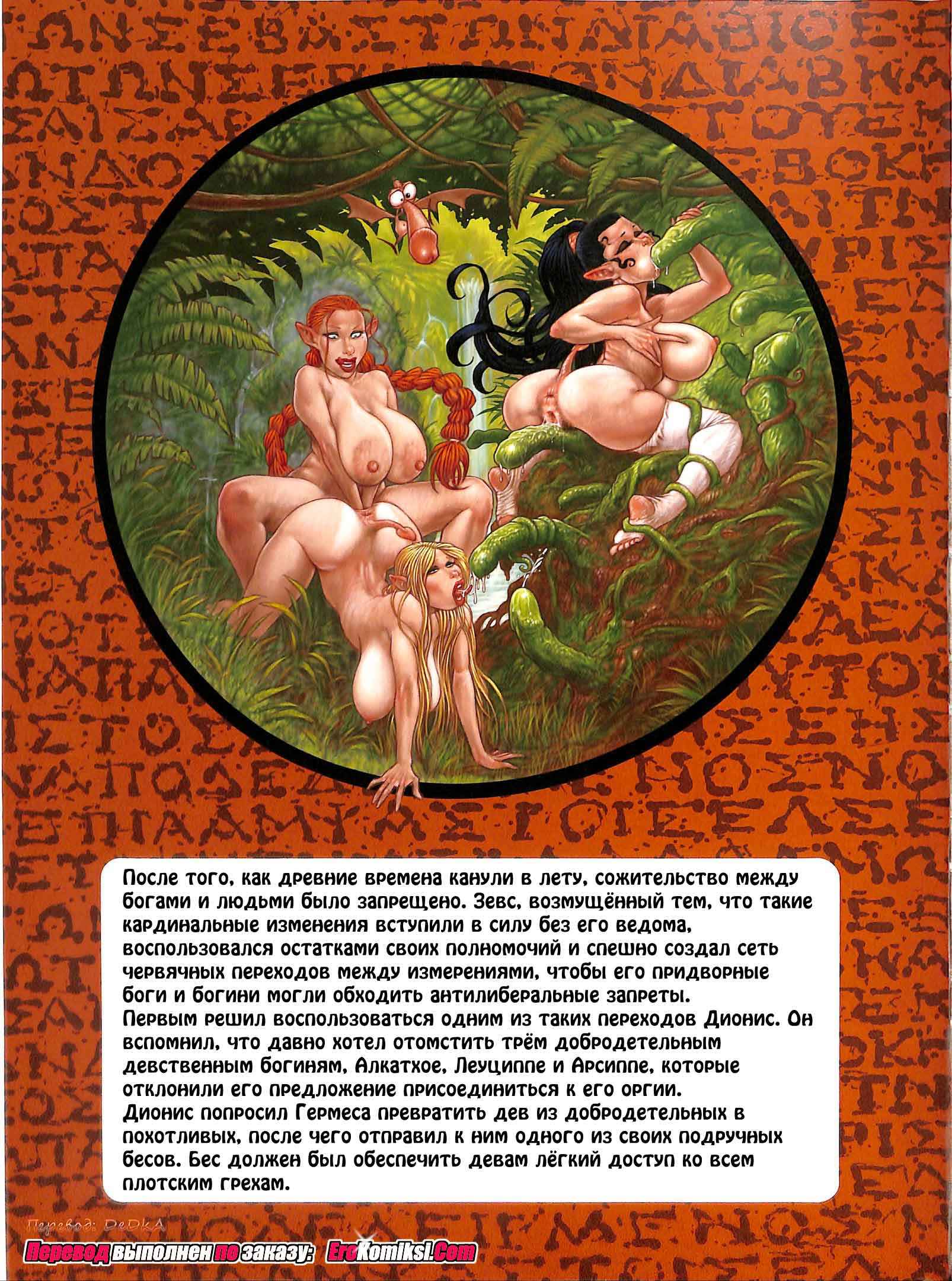 Порно комикс Очередь к дьяволу расскажет вам о том, как три целомудренные богини, обитающие в анналах древнегреческой мифологии с гневом отвергли непристойные предложения своего коллеги, божка-развратника Диониса, и были за это жестоко наказаны. В них были вселены духи похоти и разврата, которые повели их навстречу таким, сексуальным приключениям, что даже у чертей наблюдавших за их похождениями, глаза вываливались от удивления…