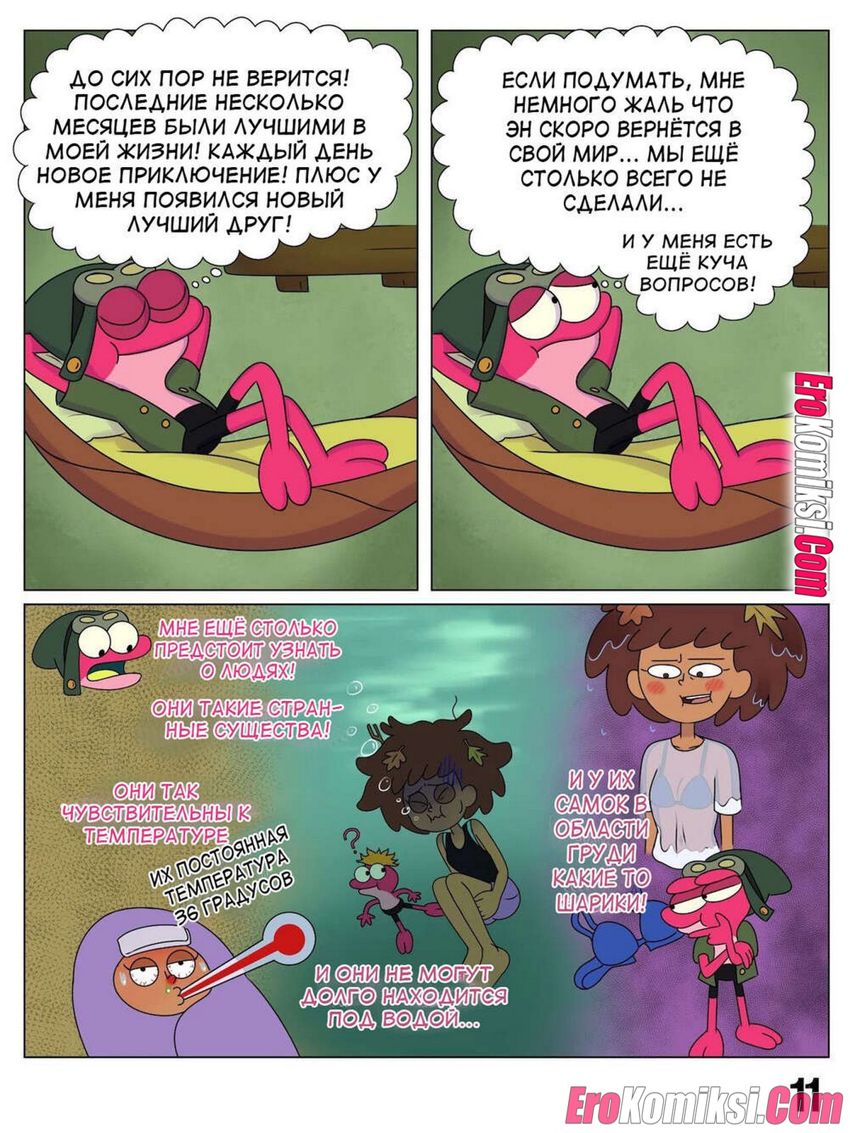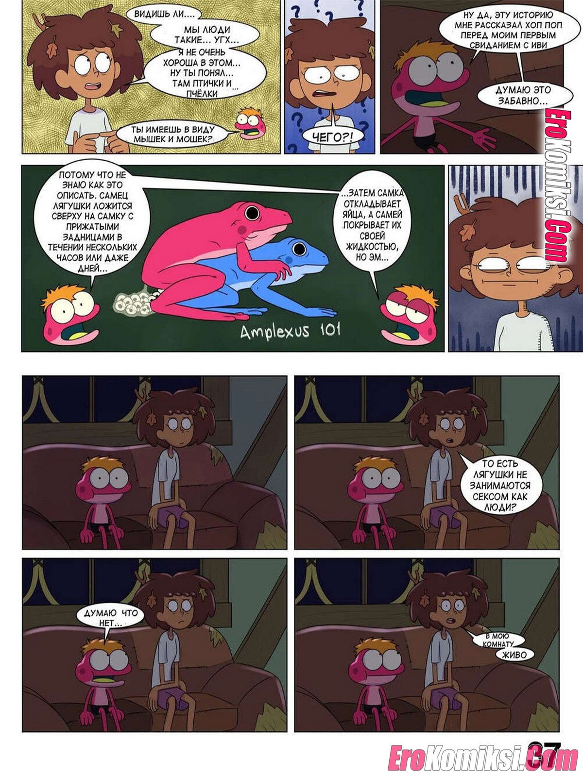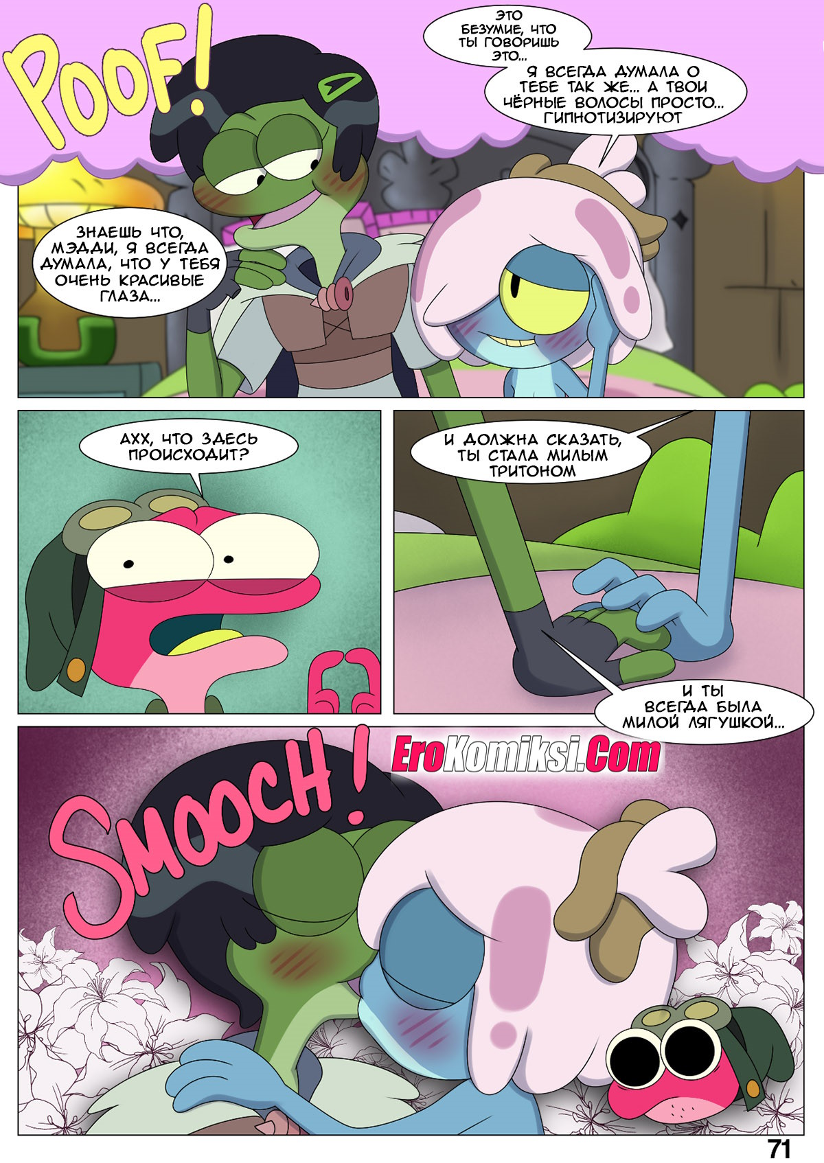 Порно комикс Ох мой лягушонок. Oh My Frog. Nocunoct. Иногда парень превращается в лягушку, но раньше это не доставляло хлопот. Пока он не начал ухаживать за девочкой, однажды он превратился прямо вовремя их свидания. Как отреагировала на это девушка смотрите в комиксе.