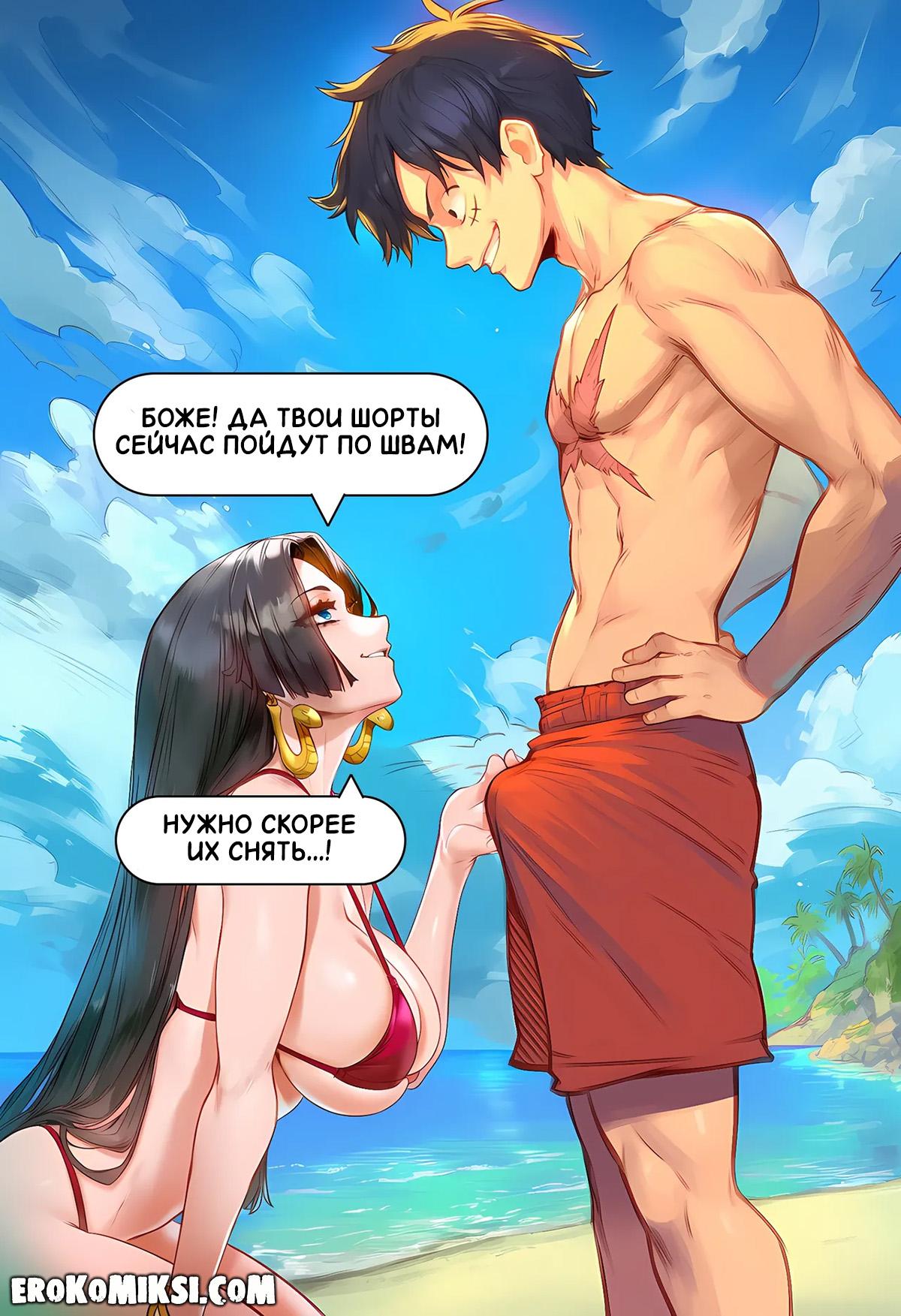 Порно комикс One Piece. Луффи и его девушки. Часть 2. Прогуливаясь по пляжу, Луффи встречает Боа, которая сильно соскучилась по огромному члену парня и без лишних слов сорвала с него шорты, и принялась отсасывать его член…