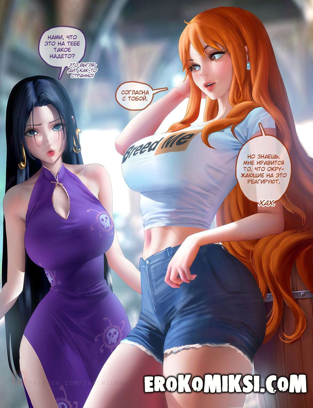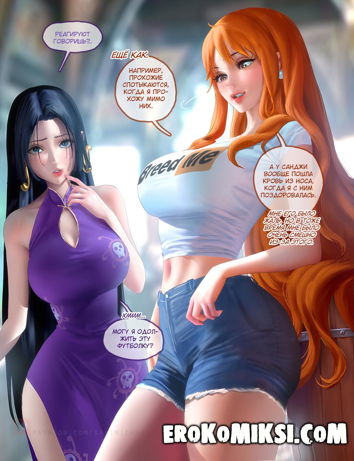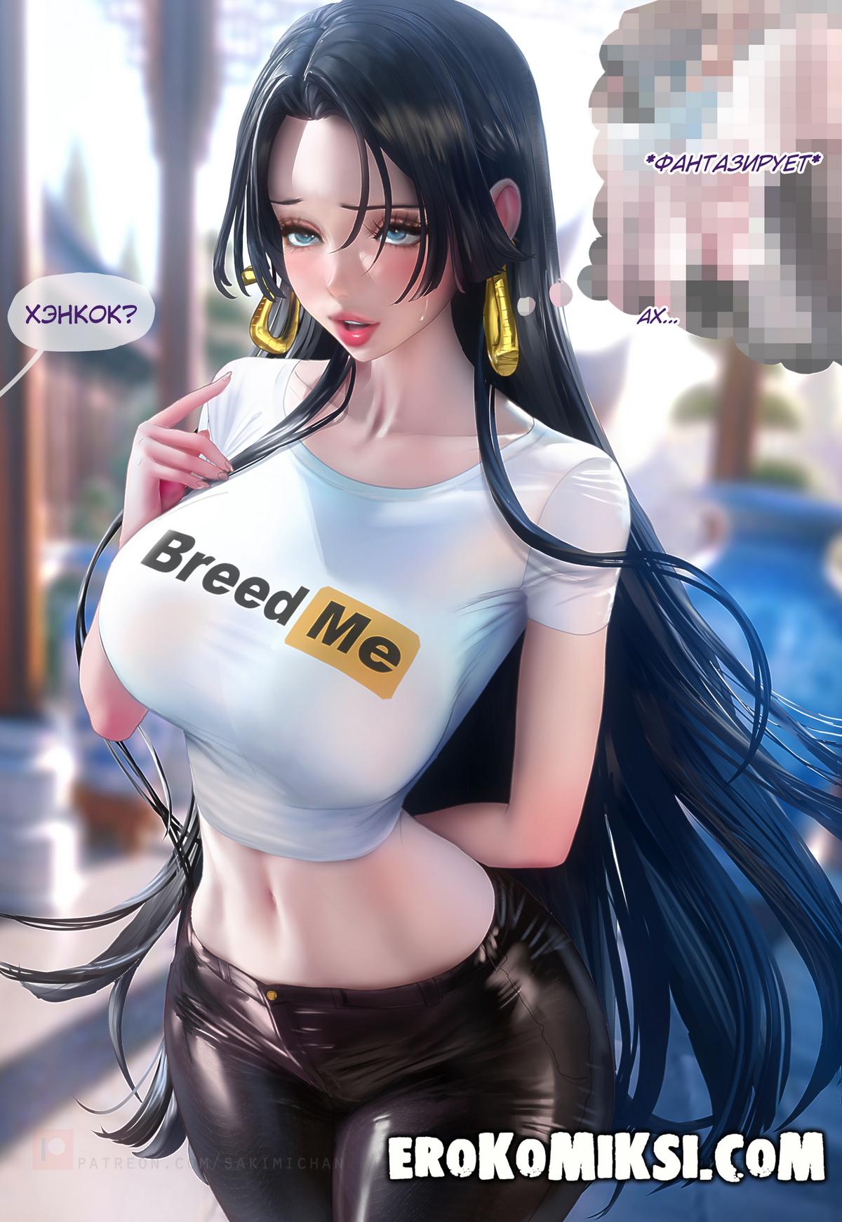 Порно комикс One Piece. Любовный квест Боа Хэнкок. Боа Хэнкок в который раз думает как сказать Луффи о своих чувствах. Она случайно встречается с Нами и последняя подсказывает ей способ как это можно сделать. Женщина решает им воспользоваться…