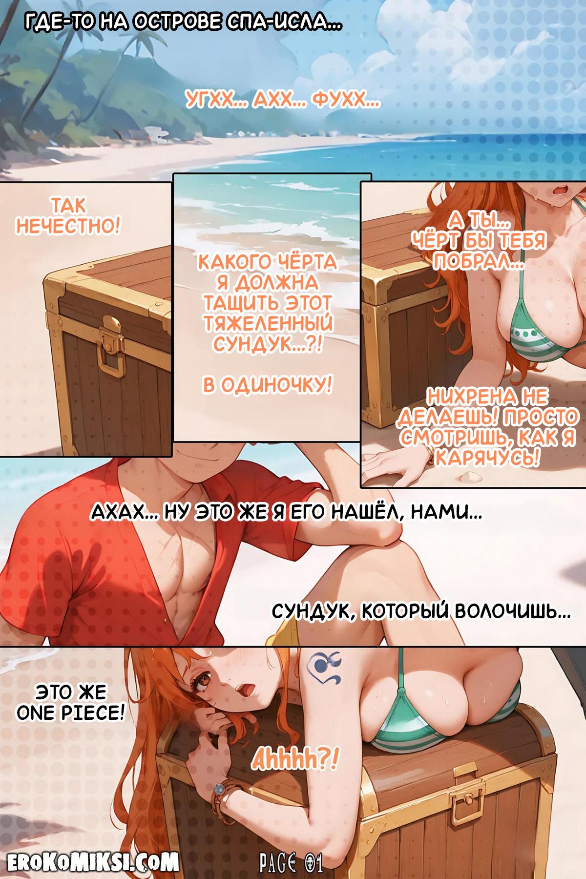 Порно комикс One Piece. Сокровища One Piece. Луффи находит сундук с сокровищами и Нами хочет, чтобы он с ней поделился. Когда они открывают сундук, то обнаруживают в нём кучу презервативов, и теперь, алчная Нами вынуждена исполнять все прихоти Луффи…