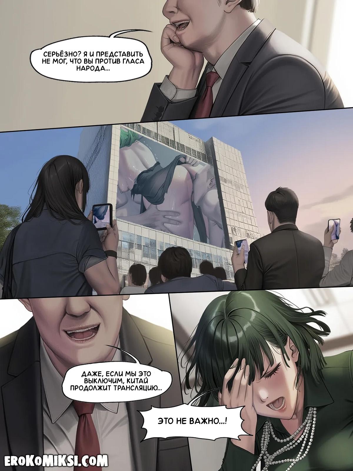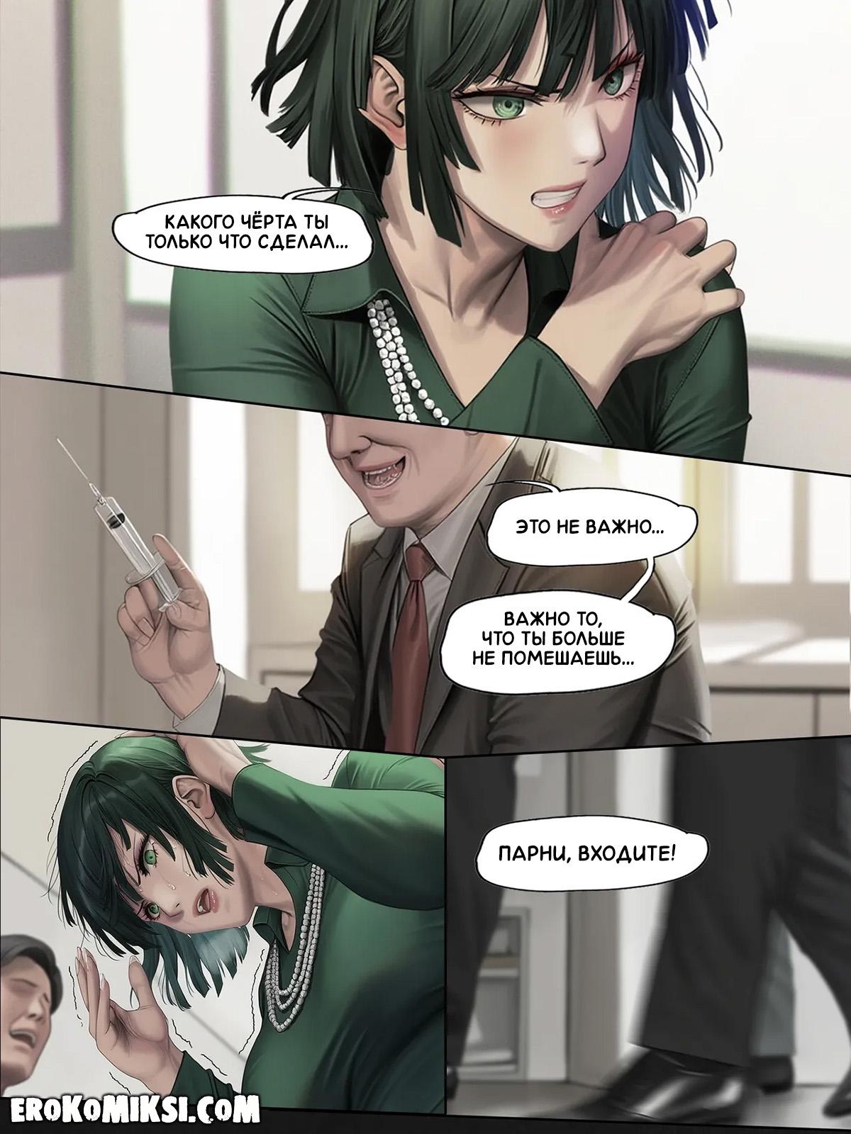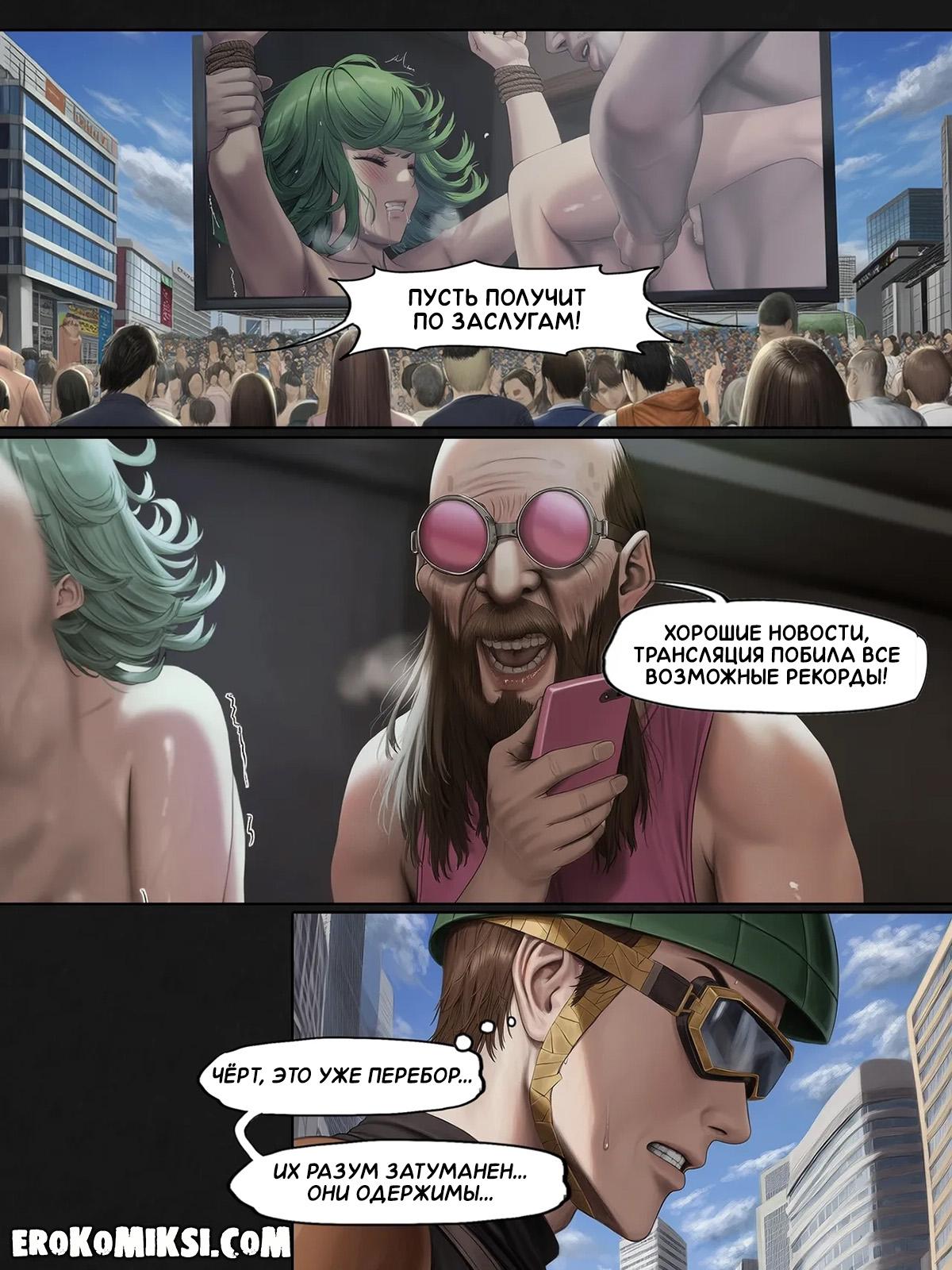 Порно комикс One Punch Man. Последняя трансляция человечества. Часть 2. В надежде спасти сестру, Фубуки отправляется в головной офис и требует прекратить издевательства на Тацумаки, однако, вместо этого, ей вводят препарат и теперь Фубуки покорно раздвигает ноги, чтобы её оттрахала озабоченная толпа…