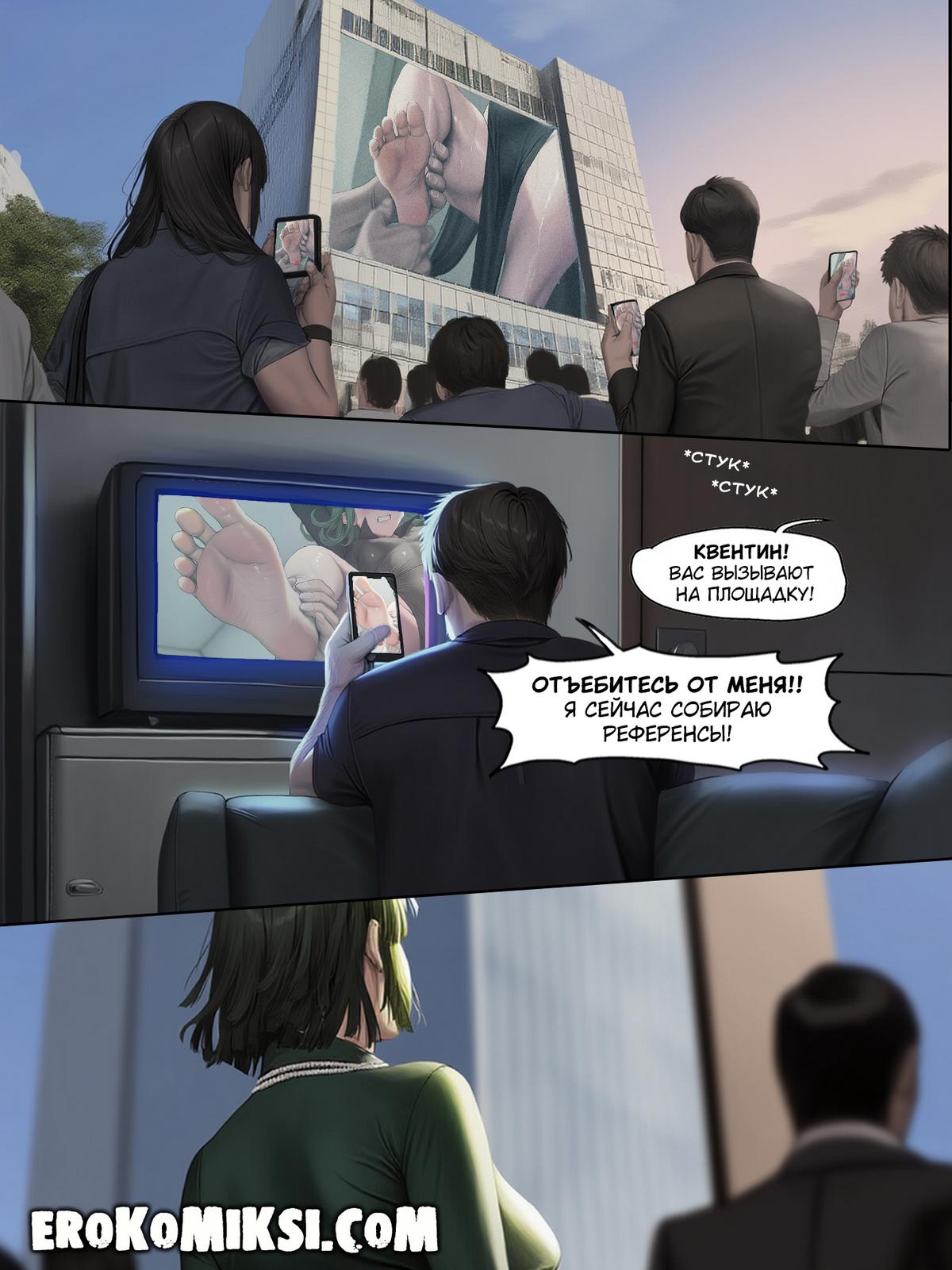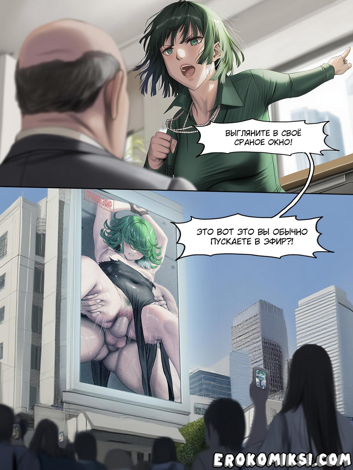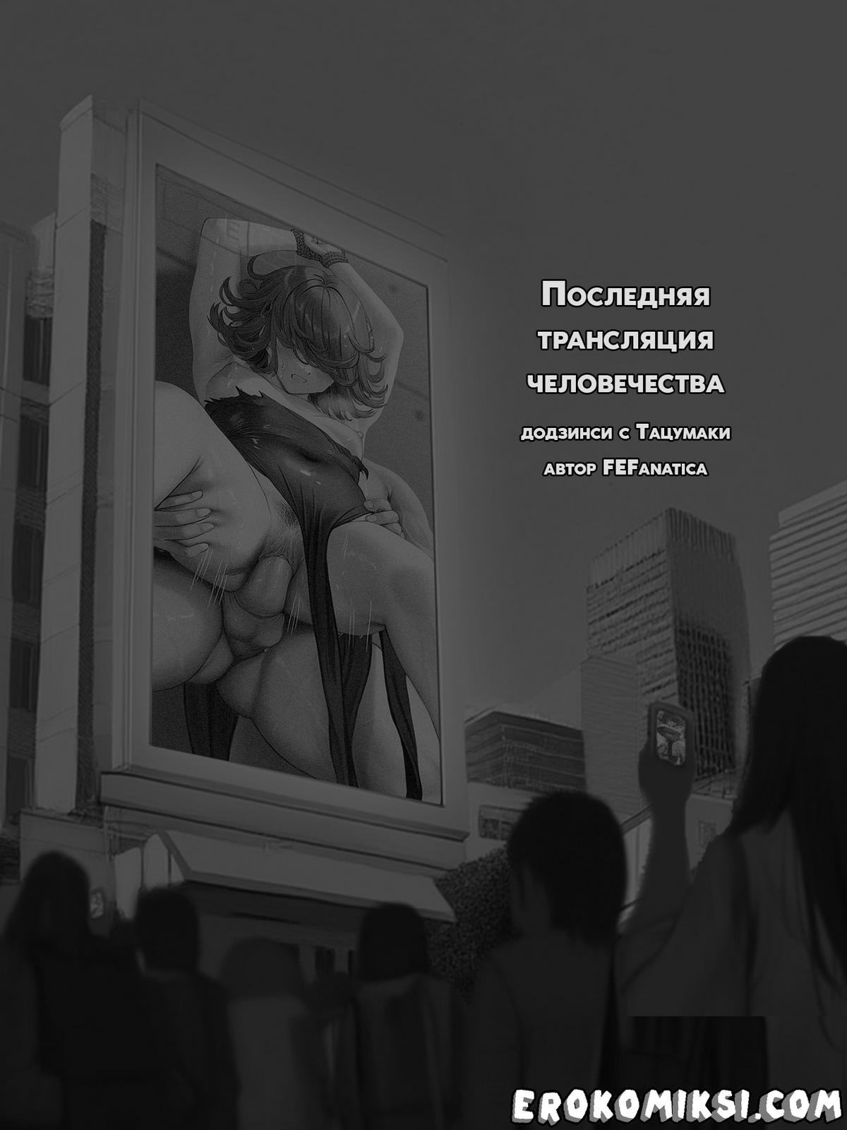 Порно комикс One Punch Man. Последняя трансляция человечества. Humanitys Last Broadcast. FEFanatica. Телестудия стала показывать лишь единственную программу во всем городе. На огромном экране в самом центре города все зрители видят закованную в цепи обворожительную Тацумаки, которую тискают сразу несколько парней, а затем жестко и бесцеремонно трахают ее…