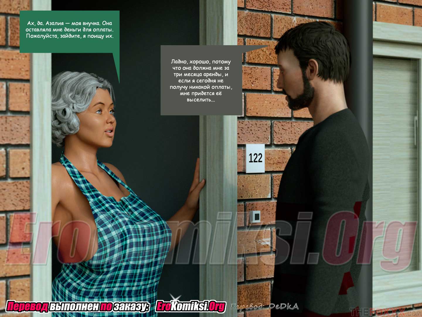 Если вы уже прочли комикс «Расплатись с Билли», в котором говорится о том, что бабушка Азалии, Нонна, выглядела так молодо и была так похотлива, что даже пользовалась услугами мужчин по вызову, вследствие чего и угодила в больницу от переизбытка секса, то вам небезынтересно будет узнать, как именно Нонна оказалась в доме внучки, и с чего началась там её жизнь. Об этом вы прочтёте в данном комиксе. А о подробностях развлечений Нонны с мужчинами по вызову, вы сможете прочесть в комиксе «Заработок», который скоро будет опубликован. Не пропустите!